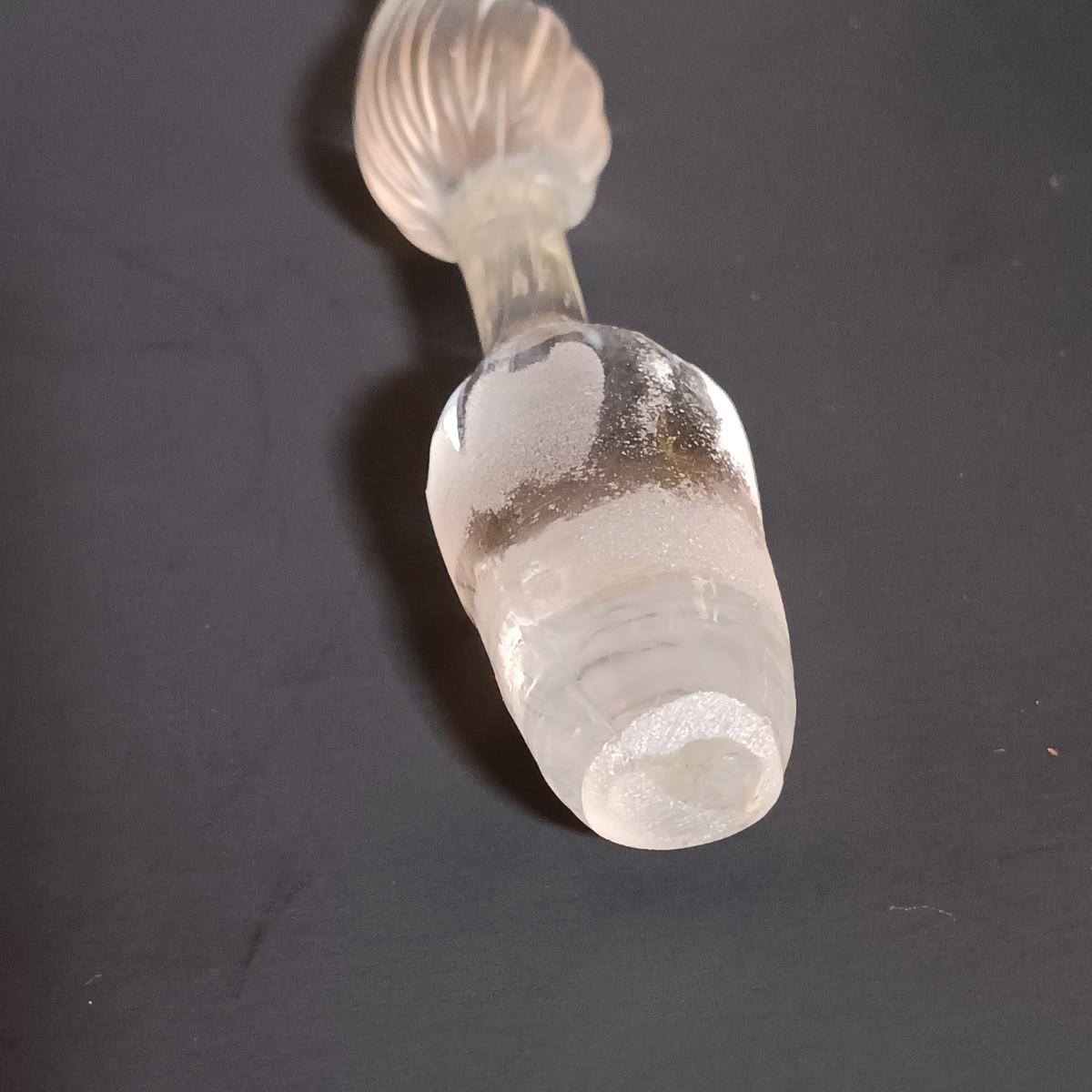 The glass stopper has a defect at the end that may be a chip or irregularity from its creation.