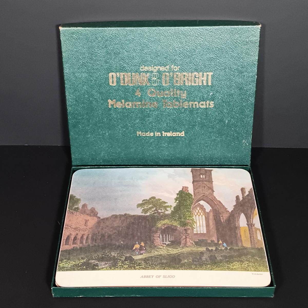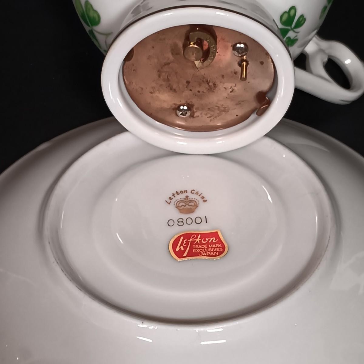 LOT 19: Lefton Shamrock Music Box Teapot and Teacup with O'Dunk 'n' O'Bright Placemats and Mugs & More