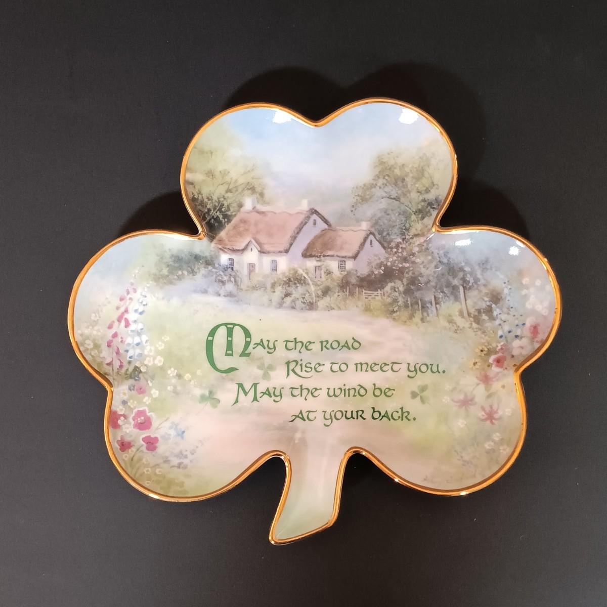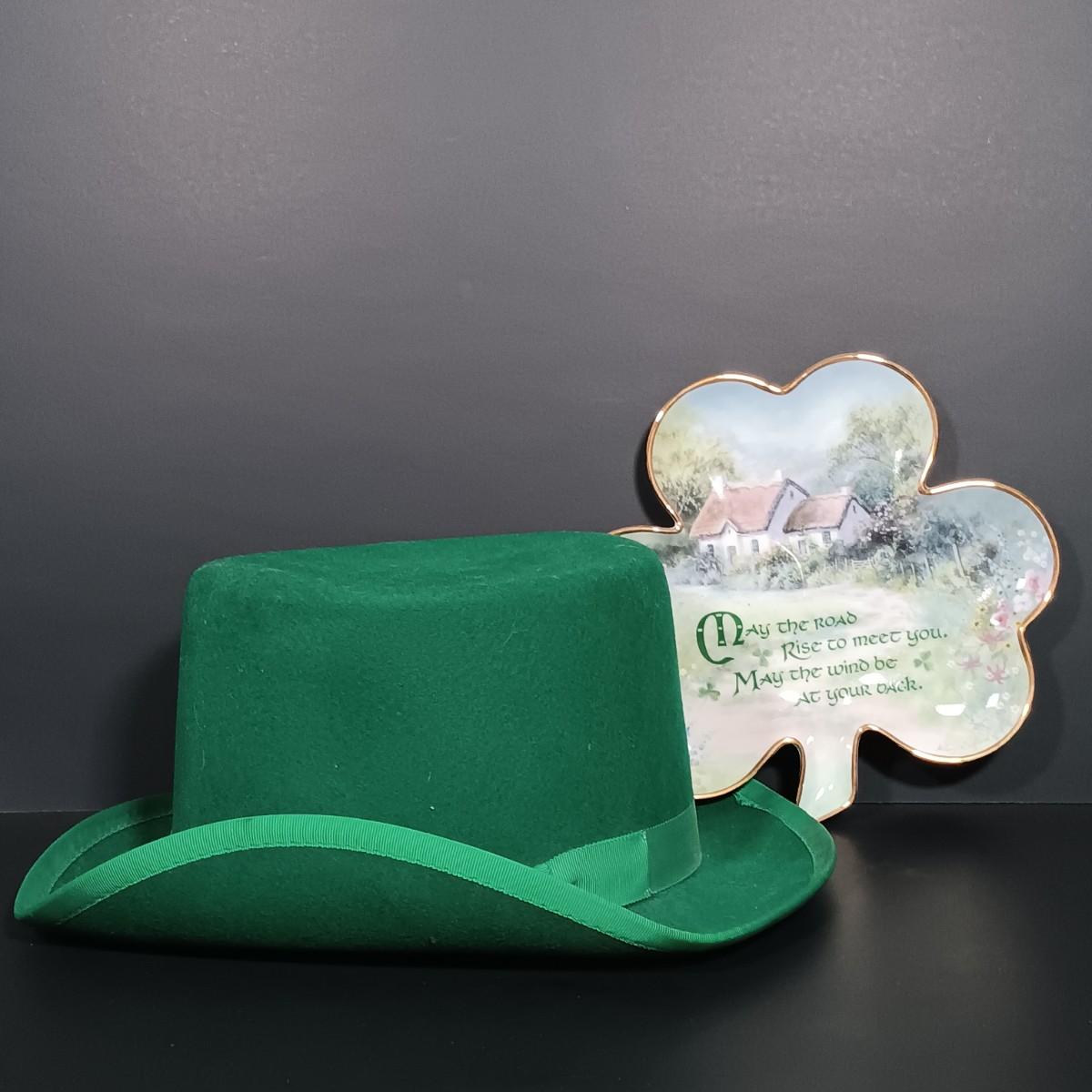 LOT 20: Vintage Green 100% Wool St. Patrick's Day Top Hat w/ Franklin Mint 'An Irish Blessing' Plate
