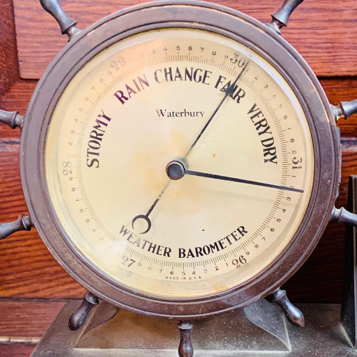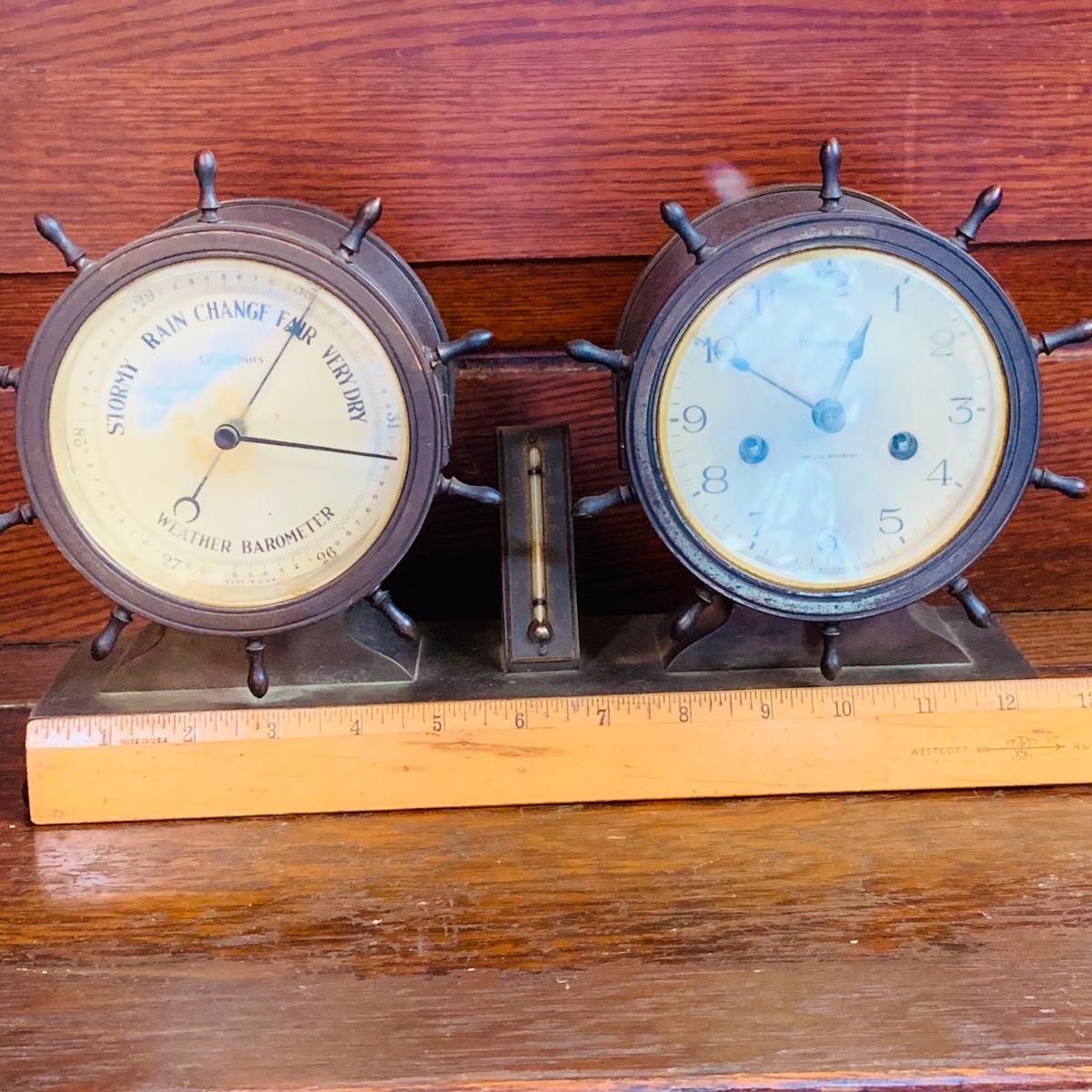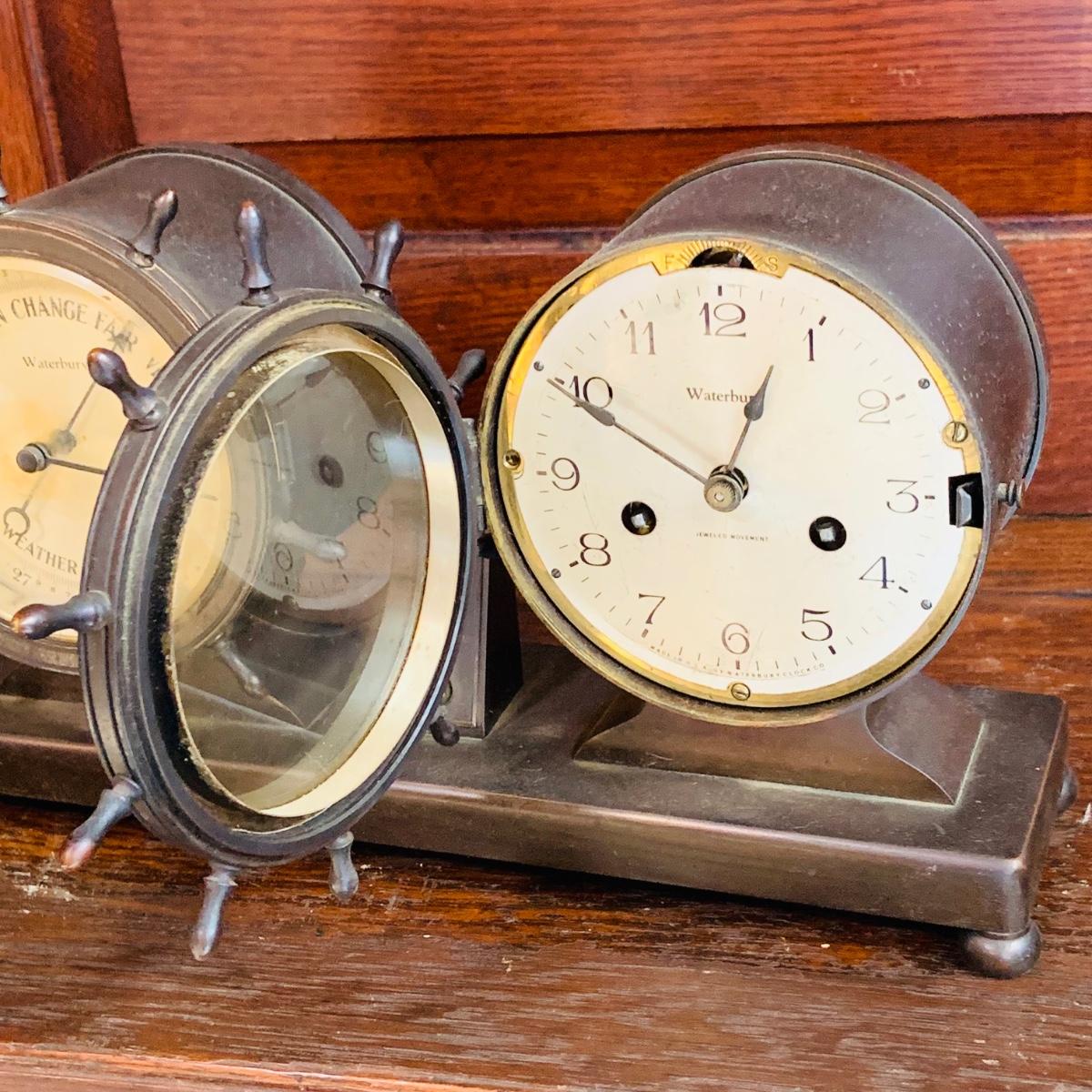 LOT 40: Vintage/Antique Waterbury Bronze Ship Bell Barometer, Clock and Therometer