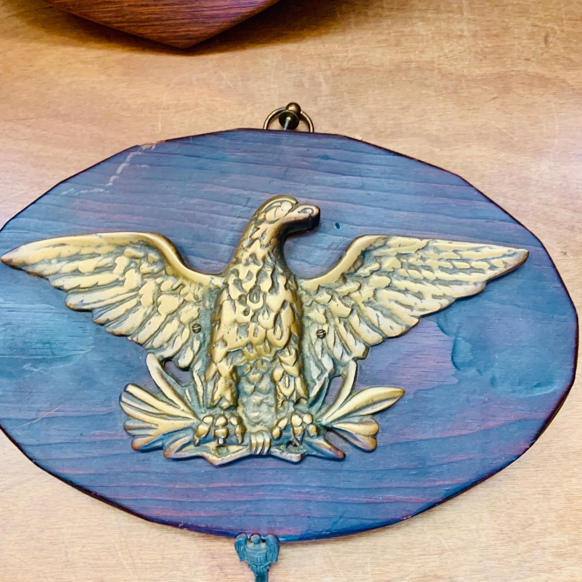 LOT 43: Wood Mounted Brass/Metal Eagles and a Brass Eagle Figure