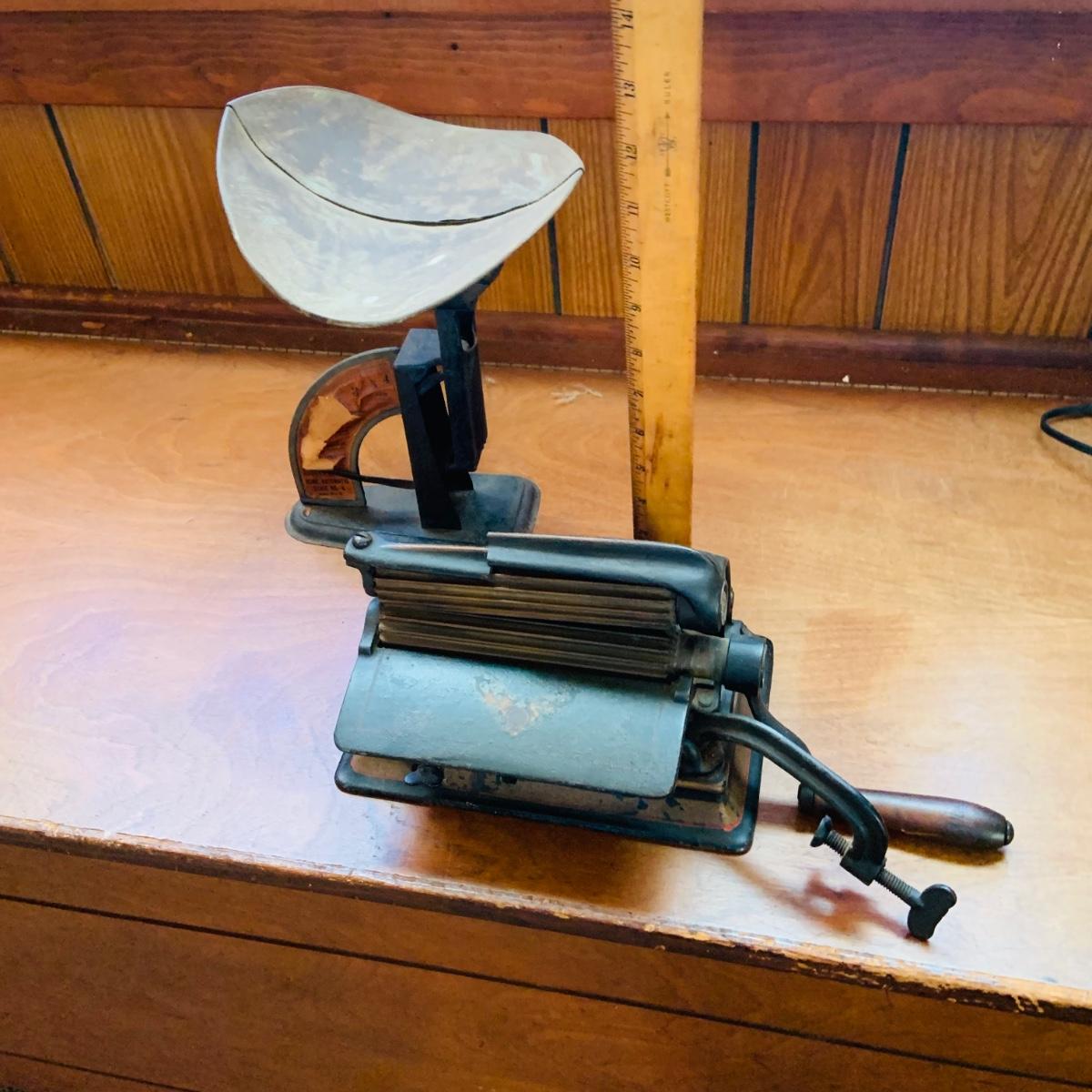 LOT 45: Antique Cast Iron Collar Crimper and Scale