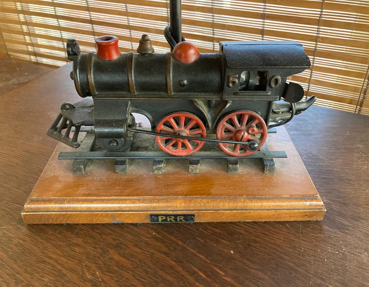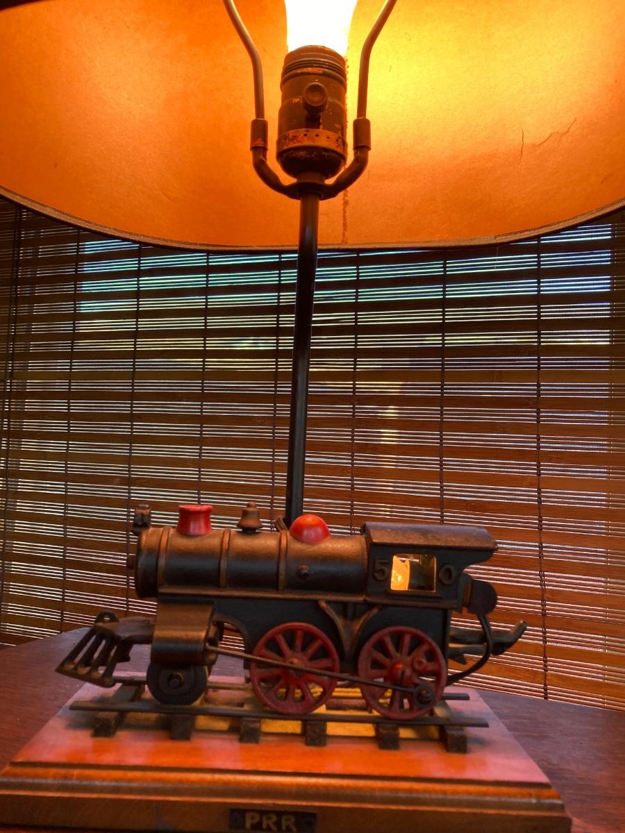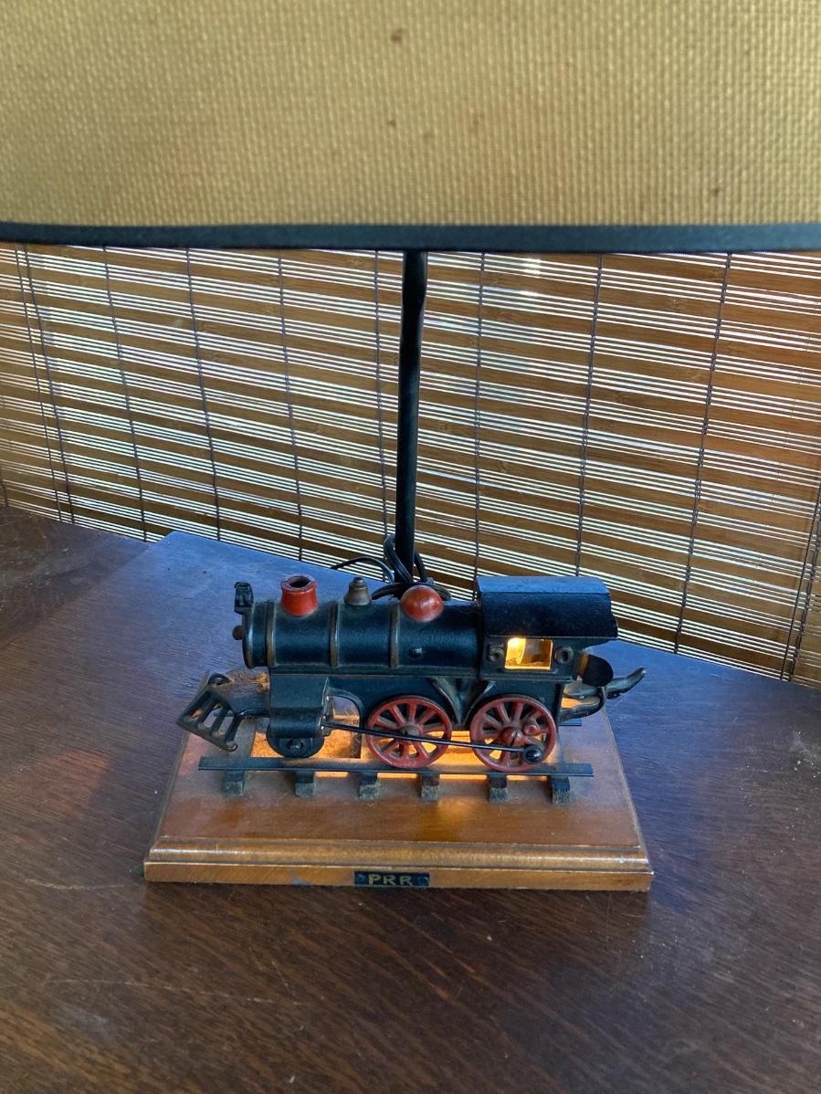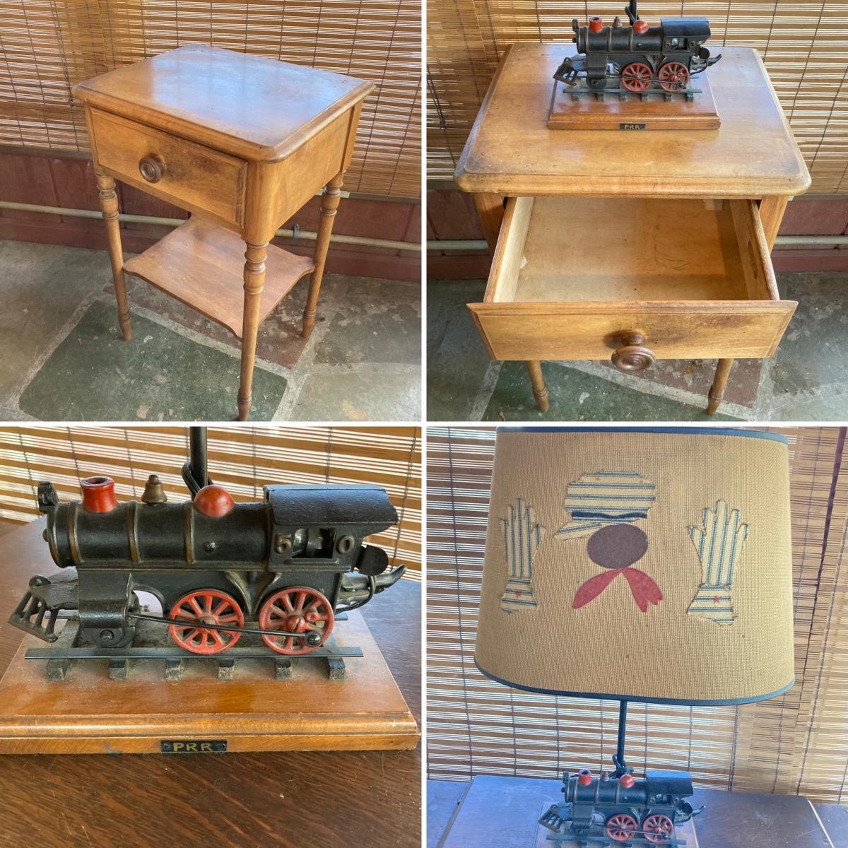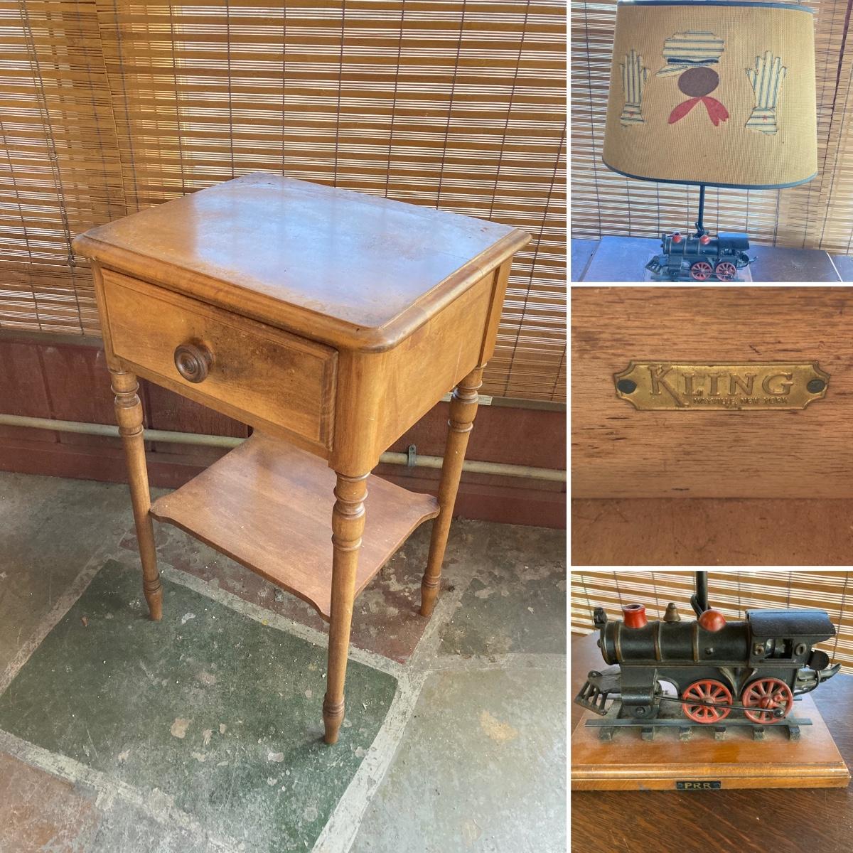 LOT 57: Vintage Kling Wooden Side Table with PRR Locomotive Lamp