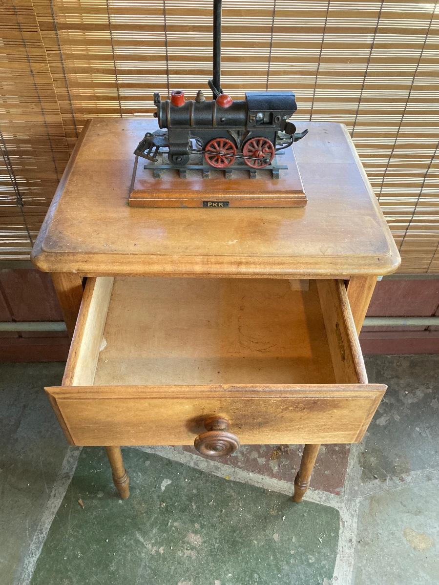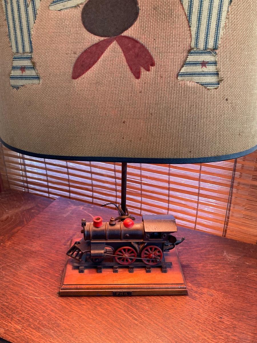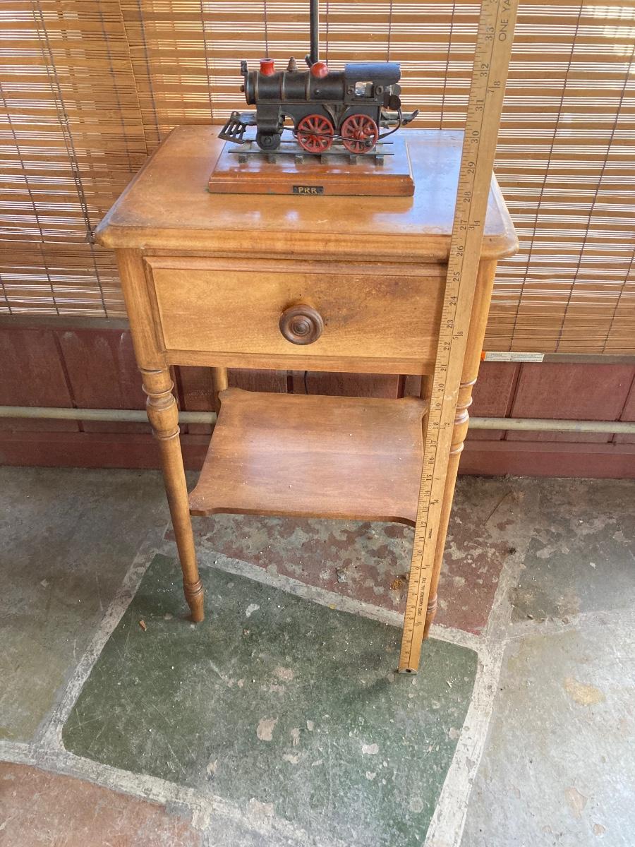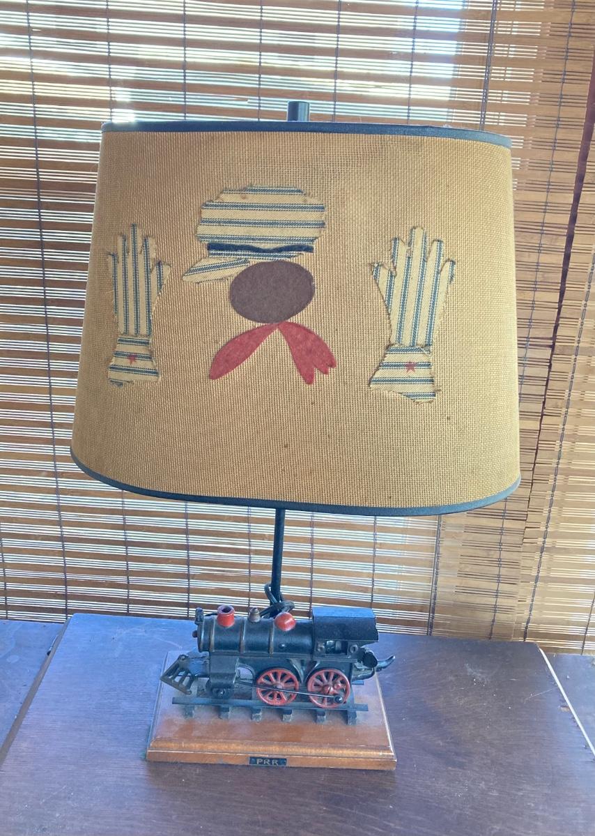 LOT 57: Vintage Kling Wooden Side Table with PRR Locomotive Lamp