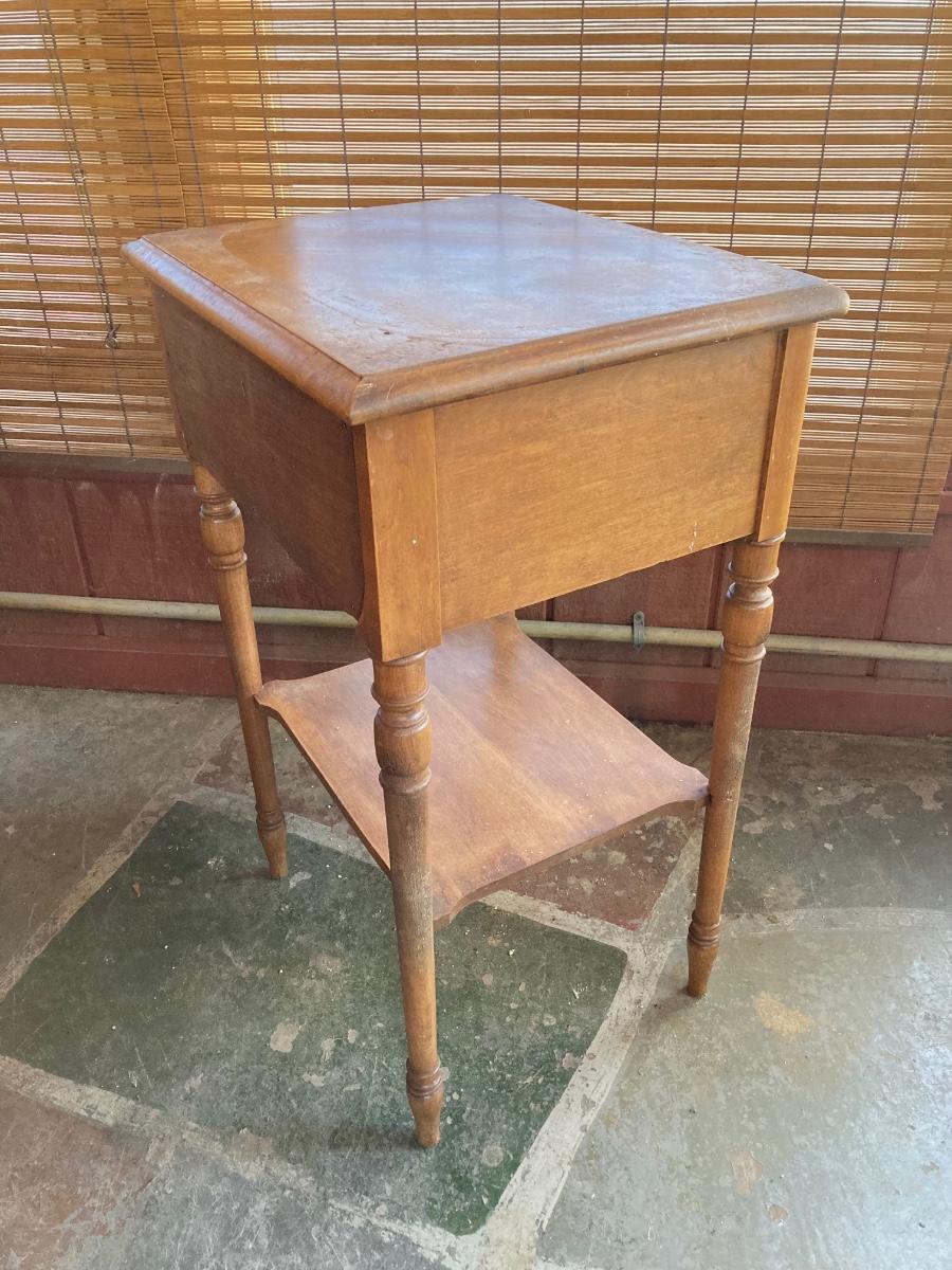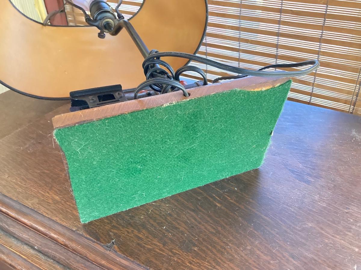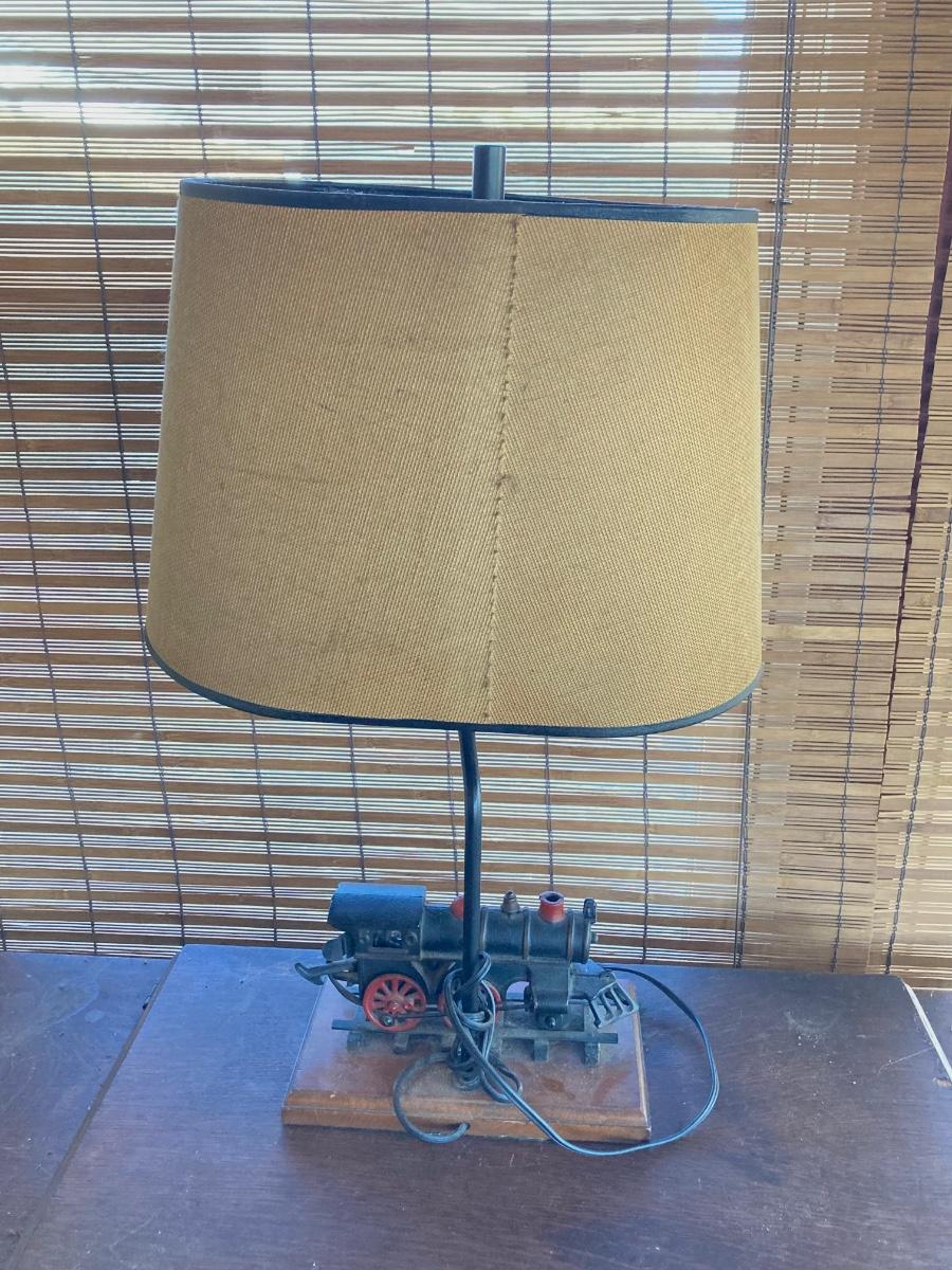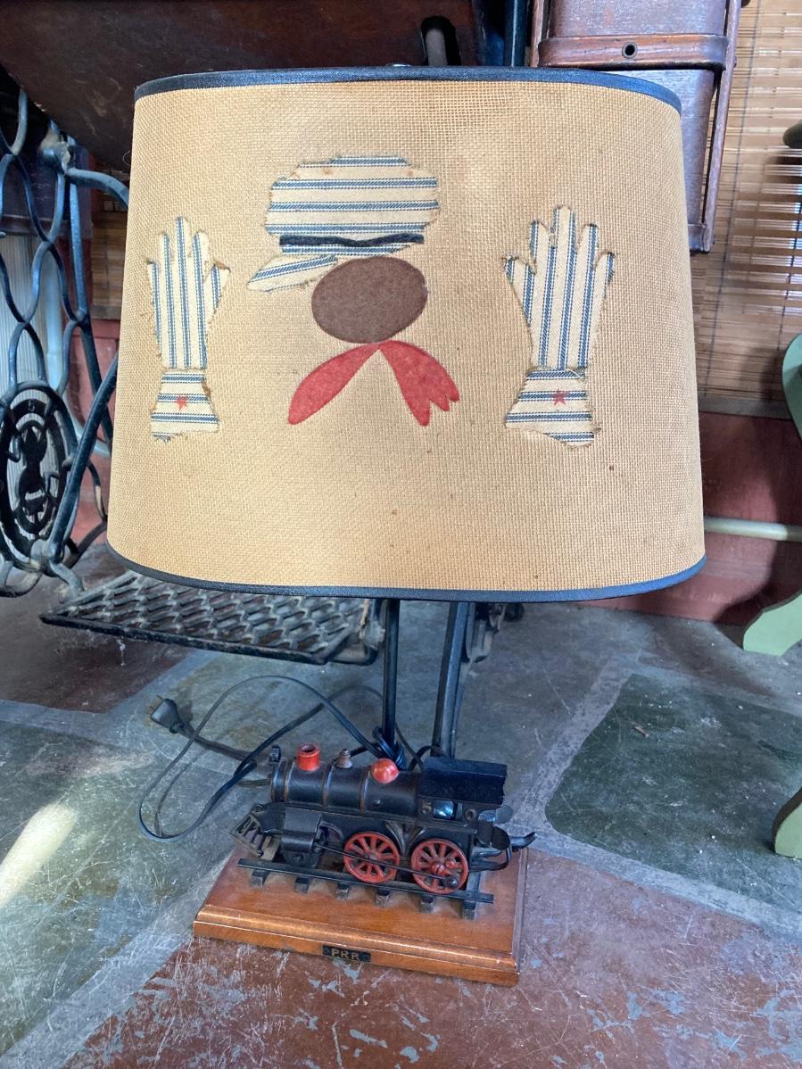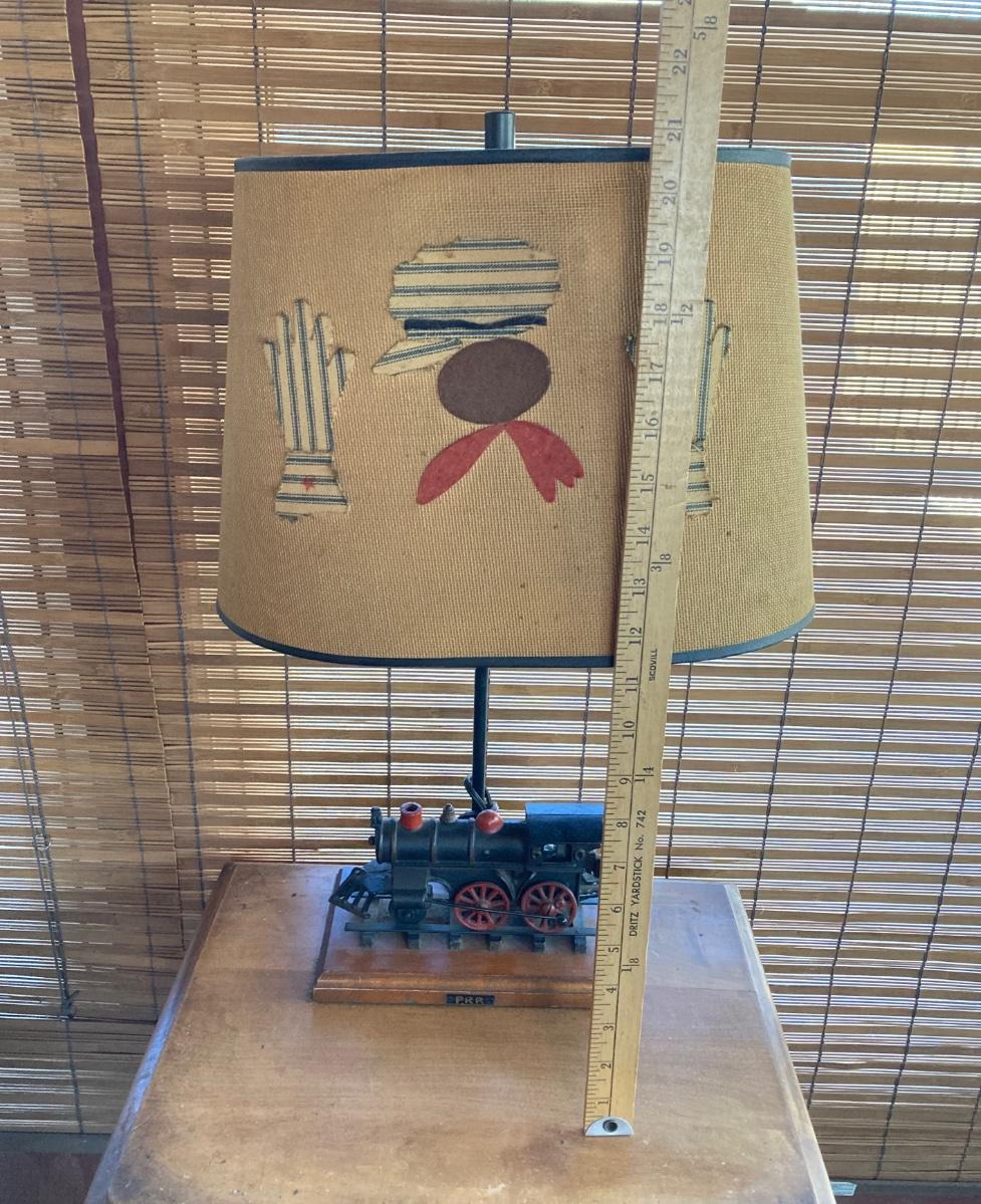 LOT 57: Vintage Kling Wooden Side Table with PRR Locomotive Lamp