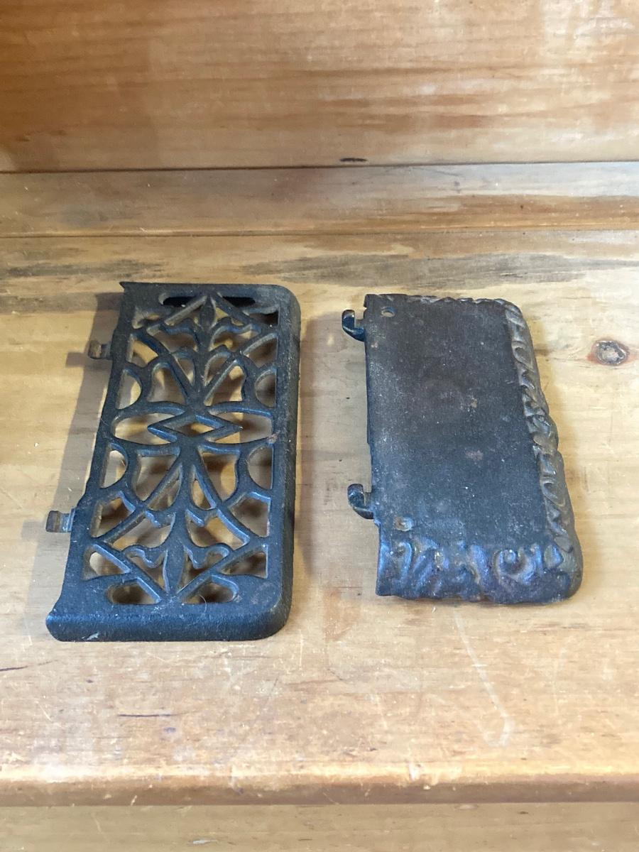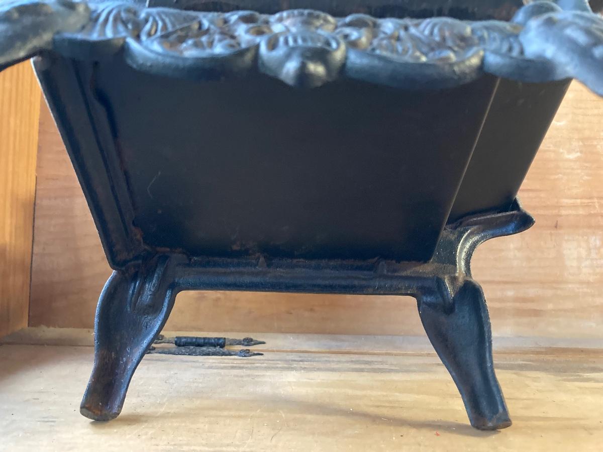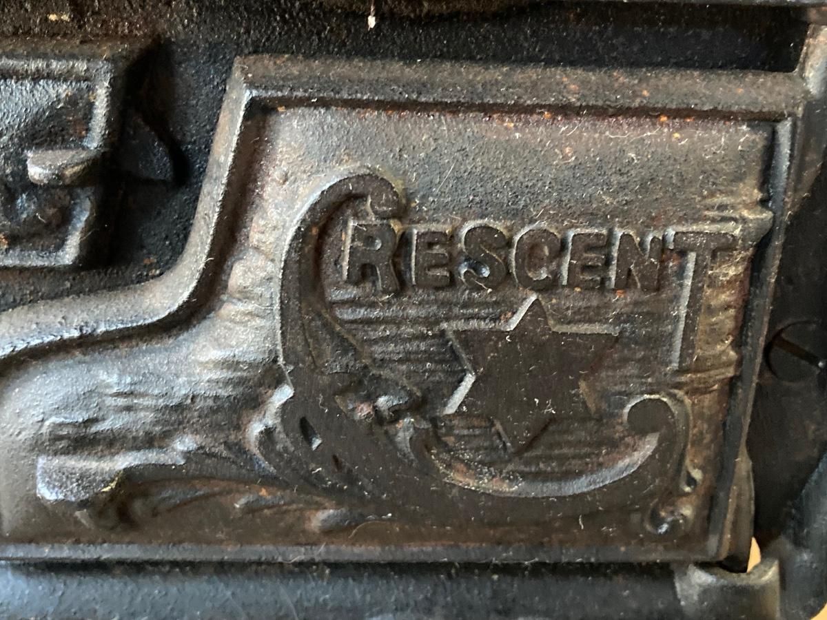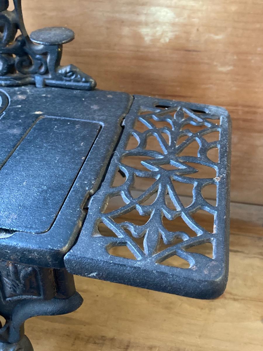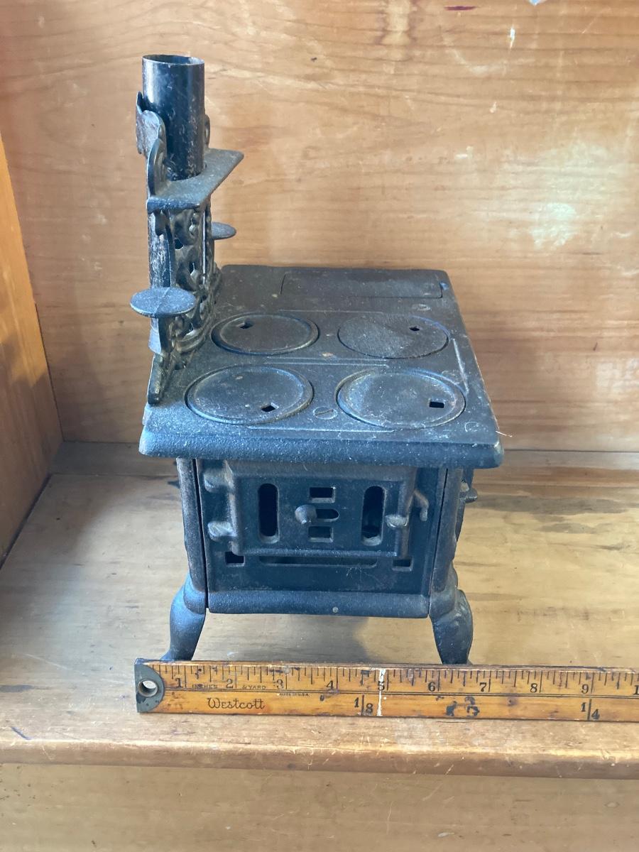 LOT 66: Vintage Miniature Crescent Cast Iron Stove with Cookware
