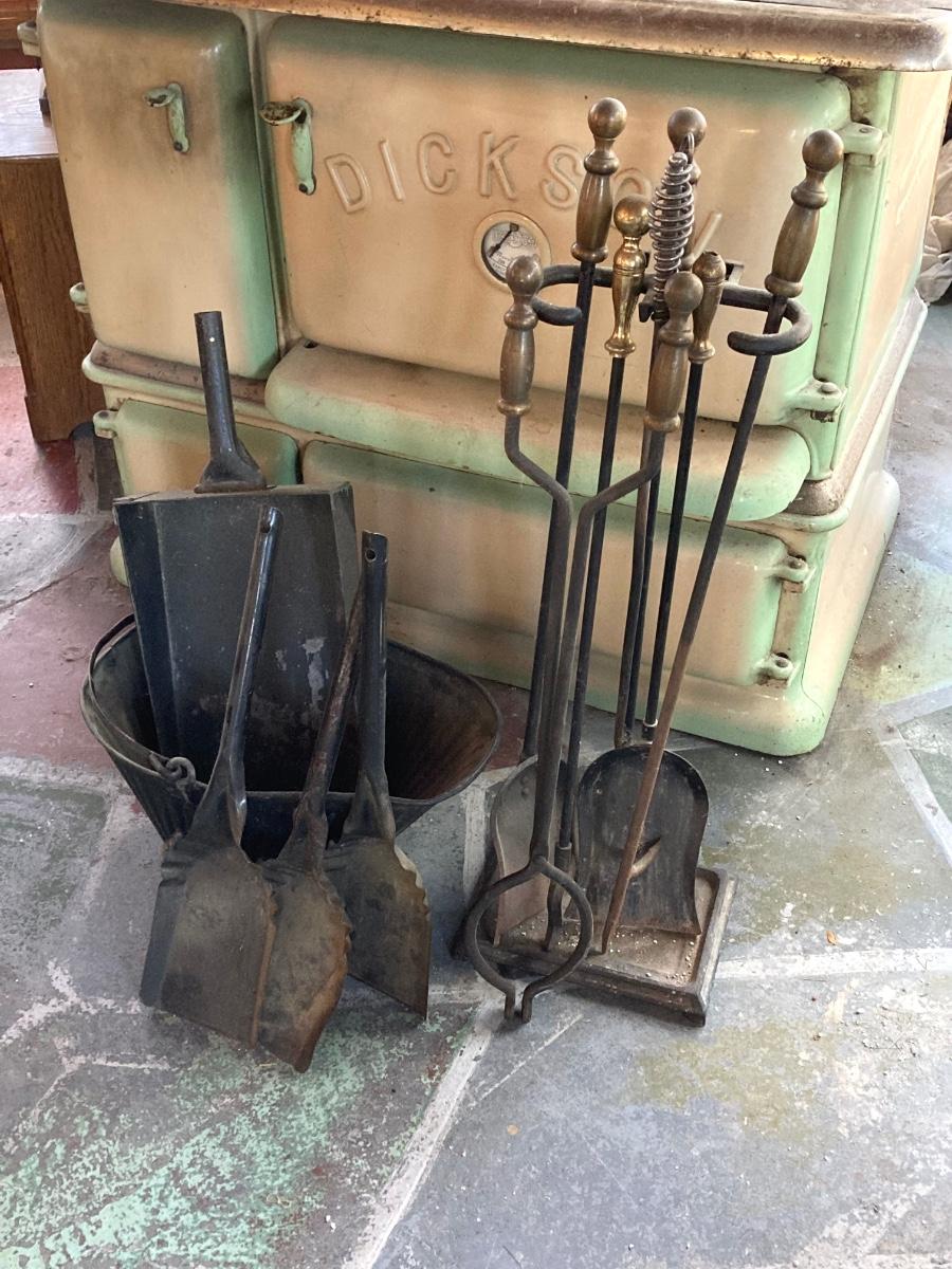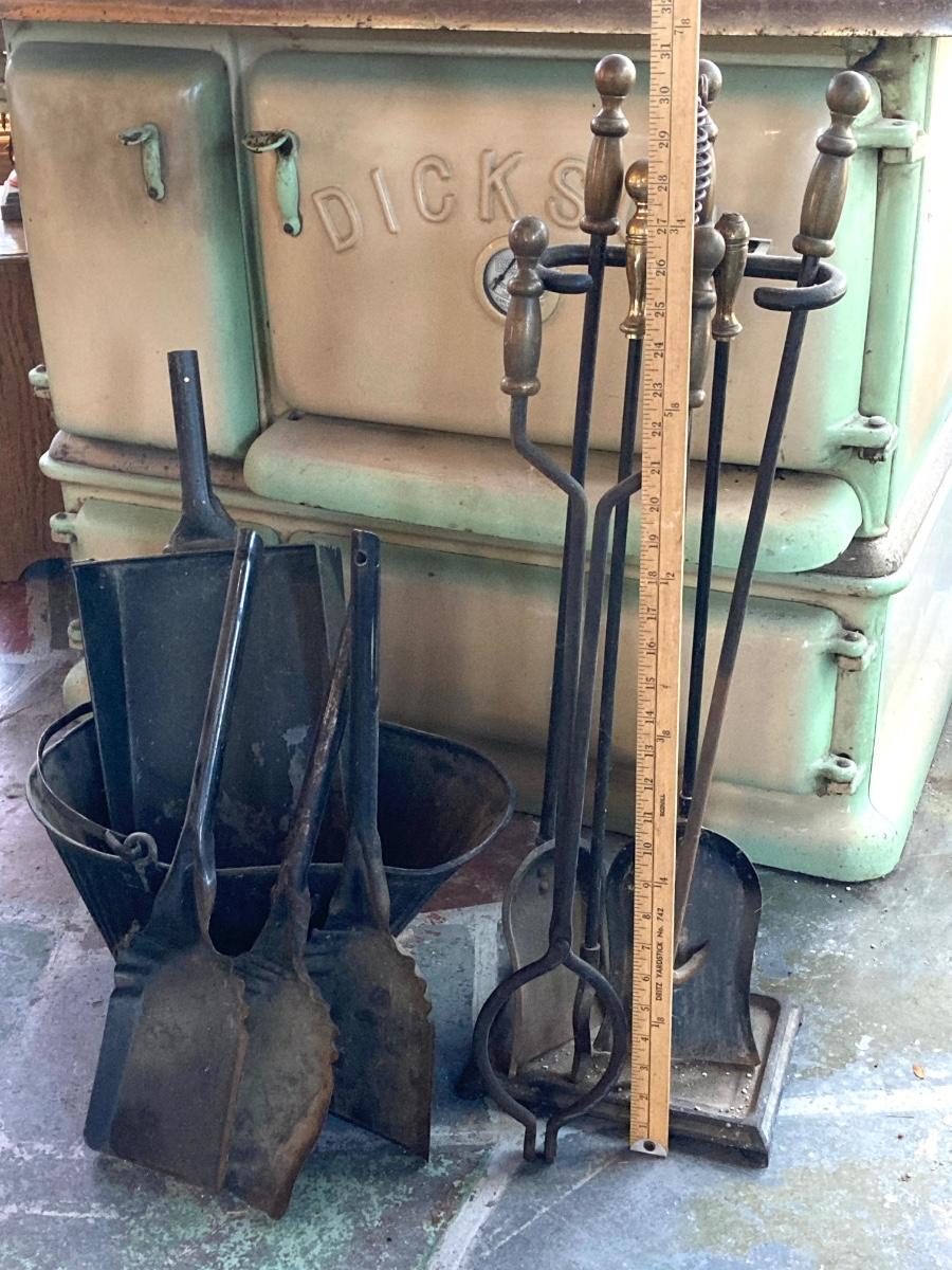 LOT 67: Vintage Fireplace Tools - Bucket, Shovels, Pokers and More