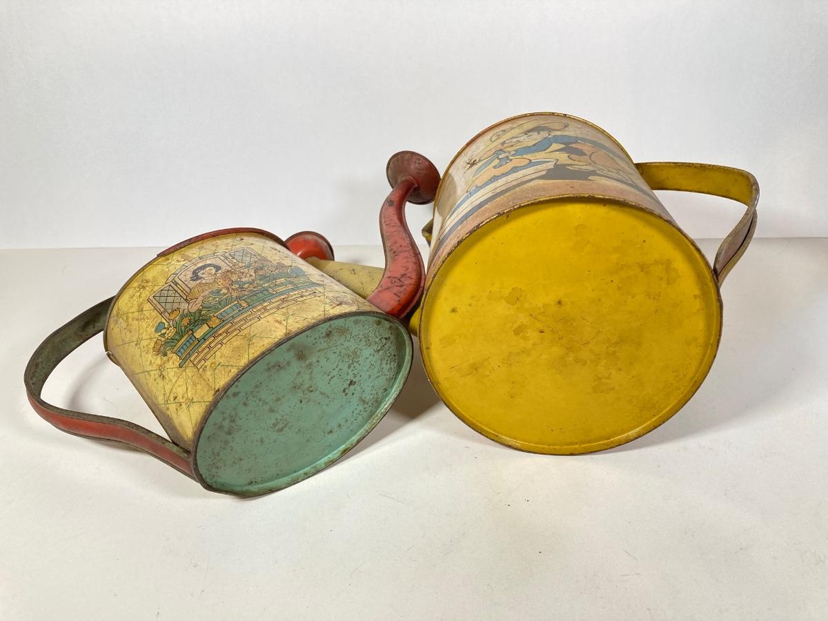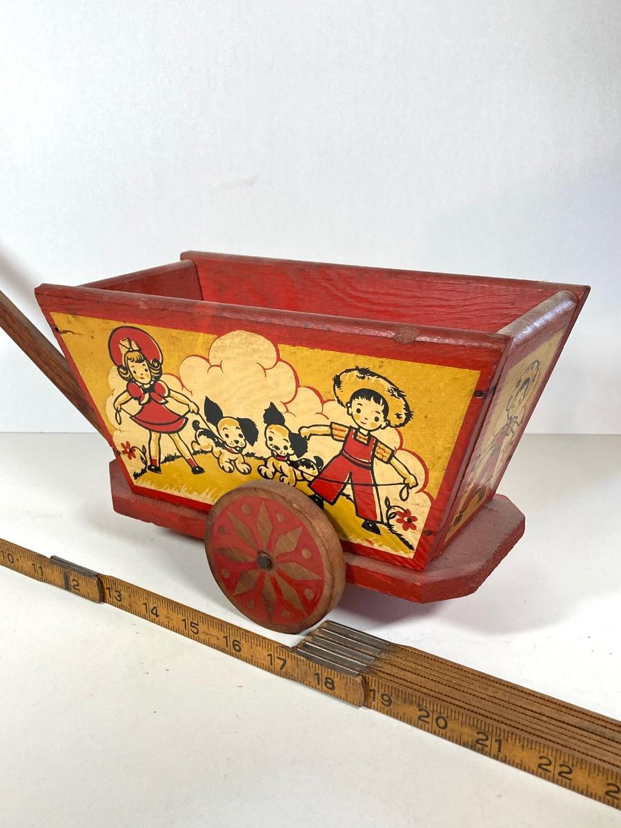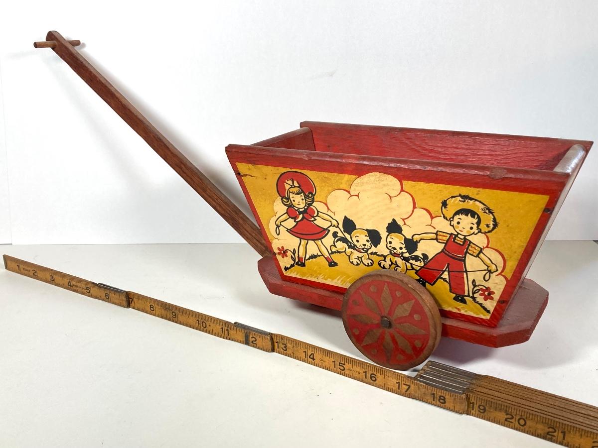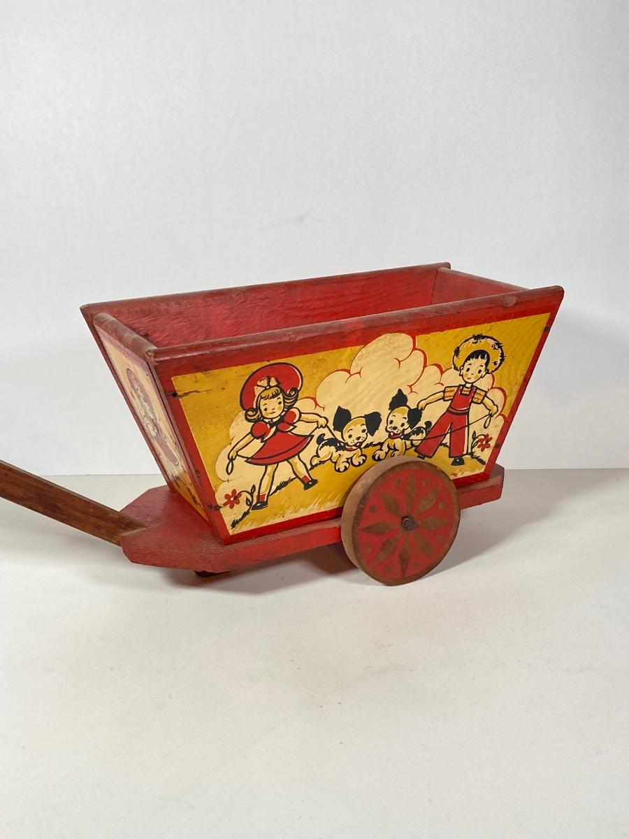 LOT 75: Vintage Children's Toys - Watering Cans, Doll (The Sun Rubber Co / Ruth E Newton), Wooden Cart, Books and More