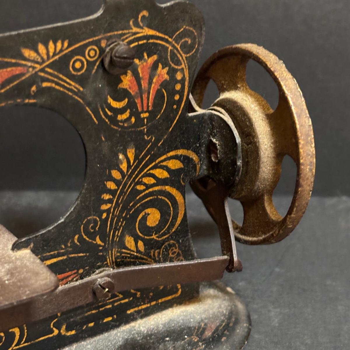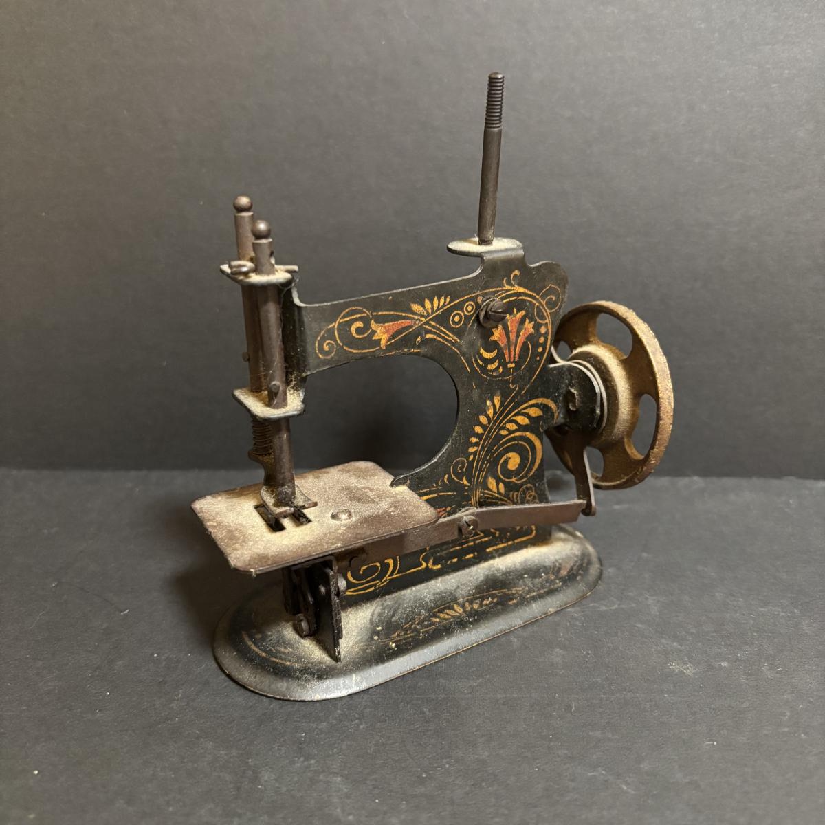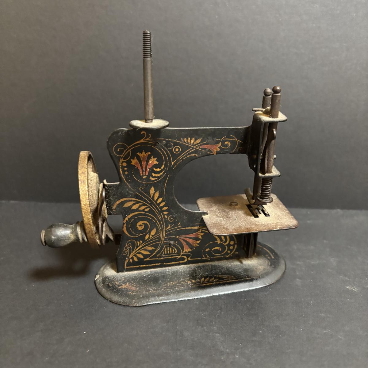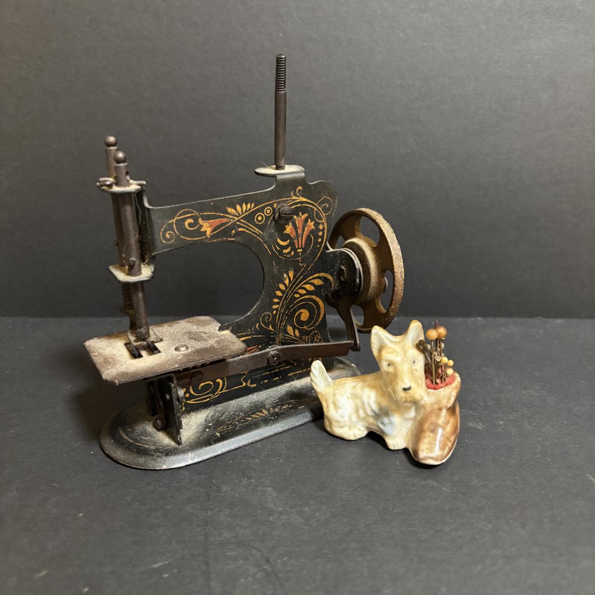 LOT 94: Made in Germany Hand Crank Toy Sewing Machine & Miniature China Dog Pin Cushion