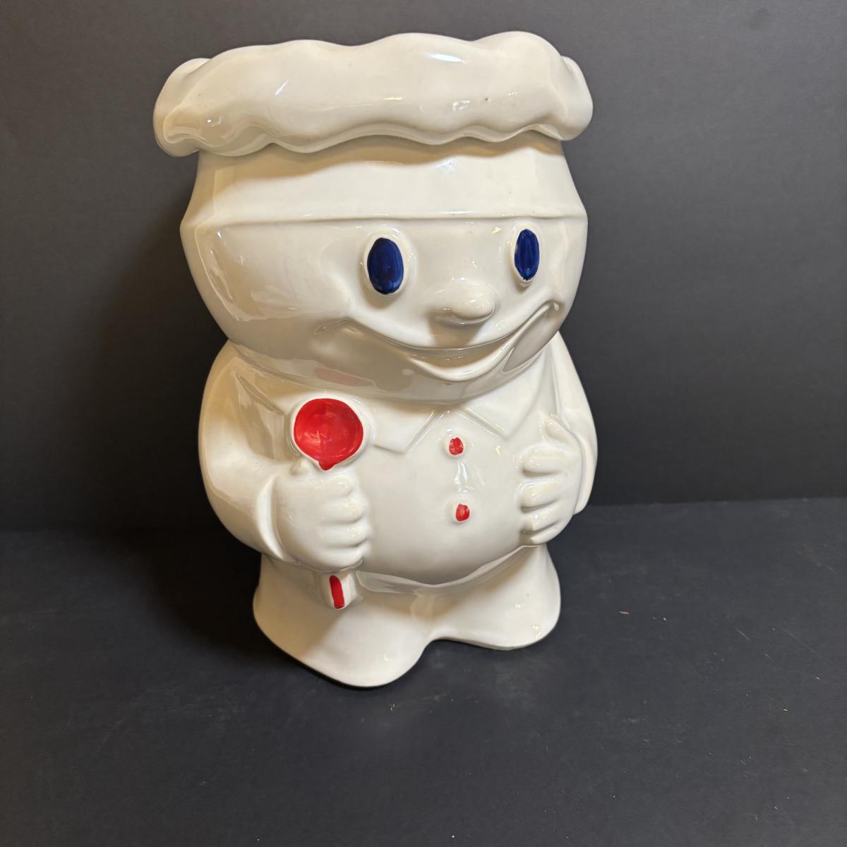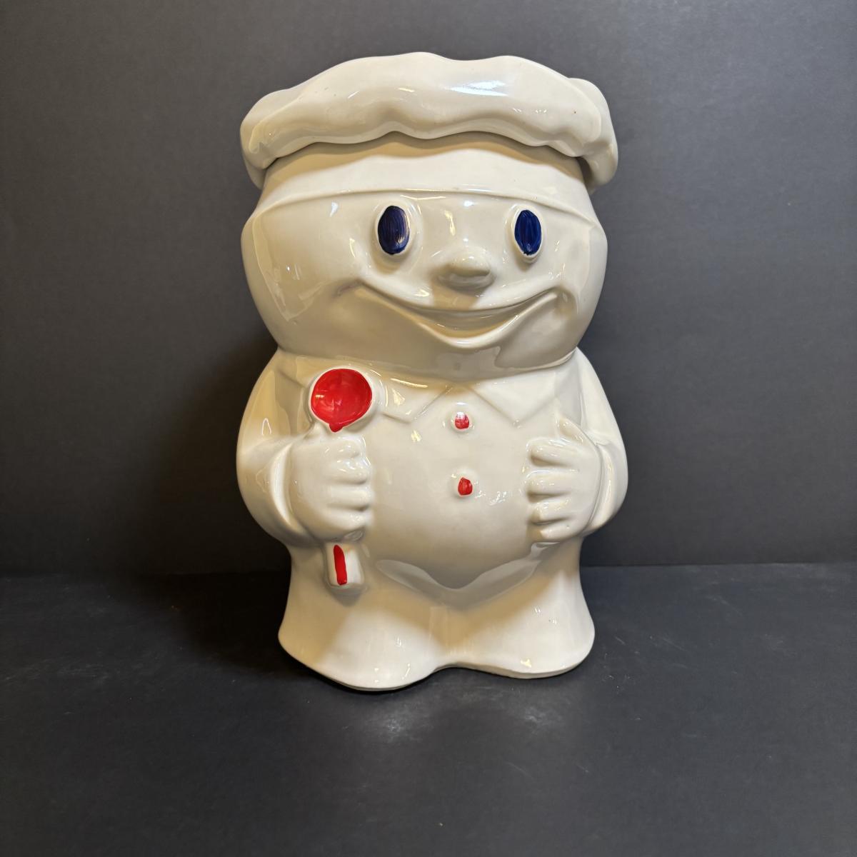 LOT 95: Vintage McCoy Pillsbury Dough Boy "Bobby the Baker" Ceramic Cookie Jar & Norcrest Lollipop Holder