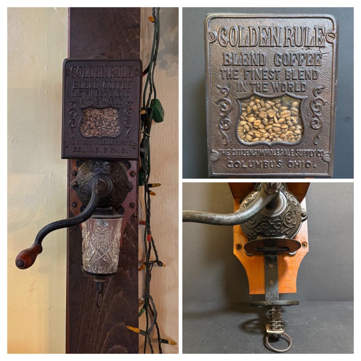 LOT 107: Antique Golden Rule Coffee Grinder Citizen Wholesale Supply Company - Hand Cranked