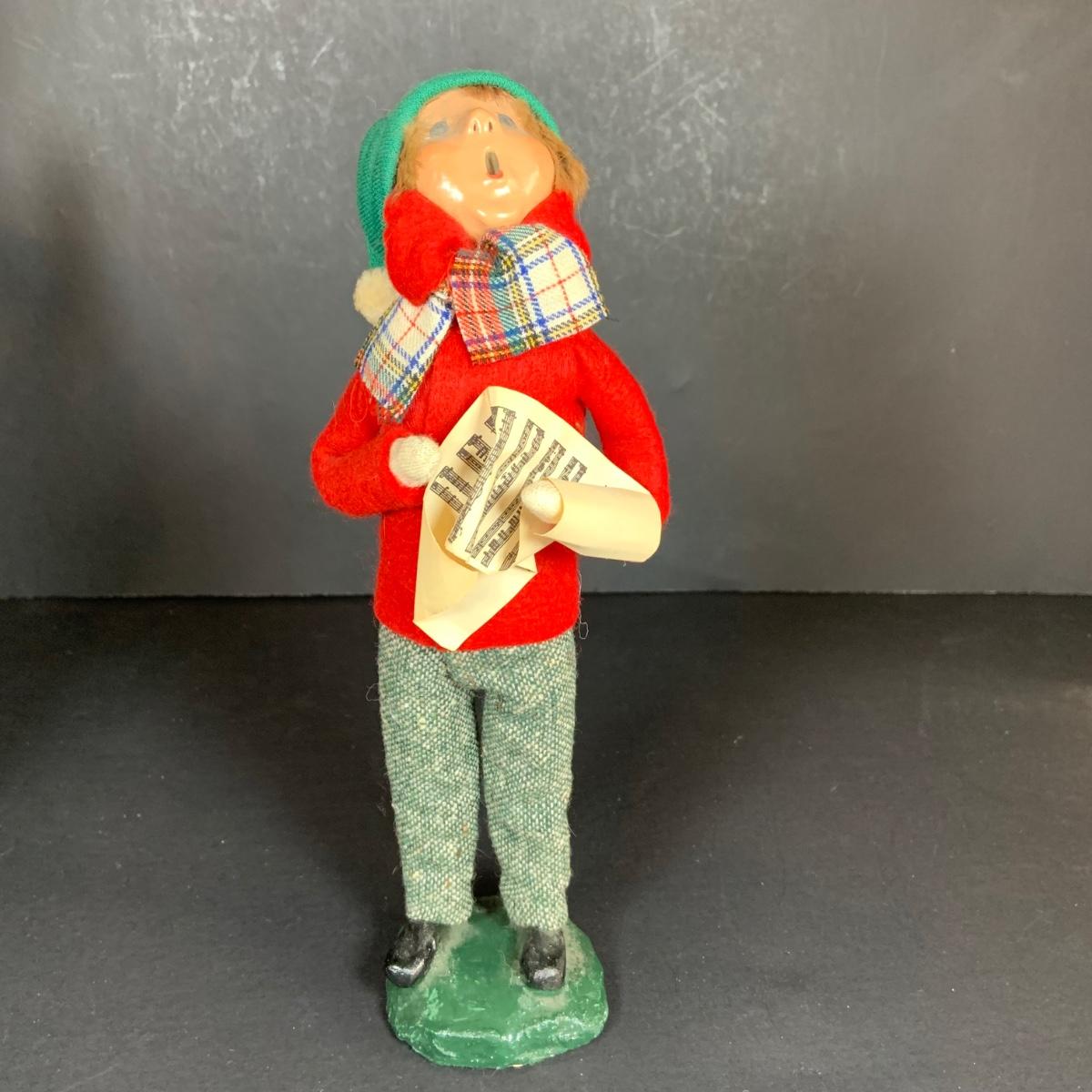 LOT 114: Set of 3 Byers' Choice Carolers - Two (2) Children From 1982 with Signed Bases and a Ginger Bread Seller and Stand from 1996