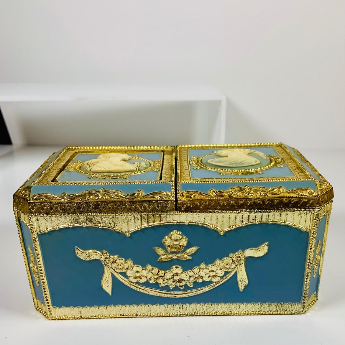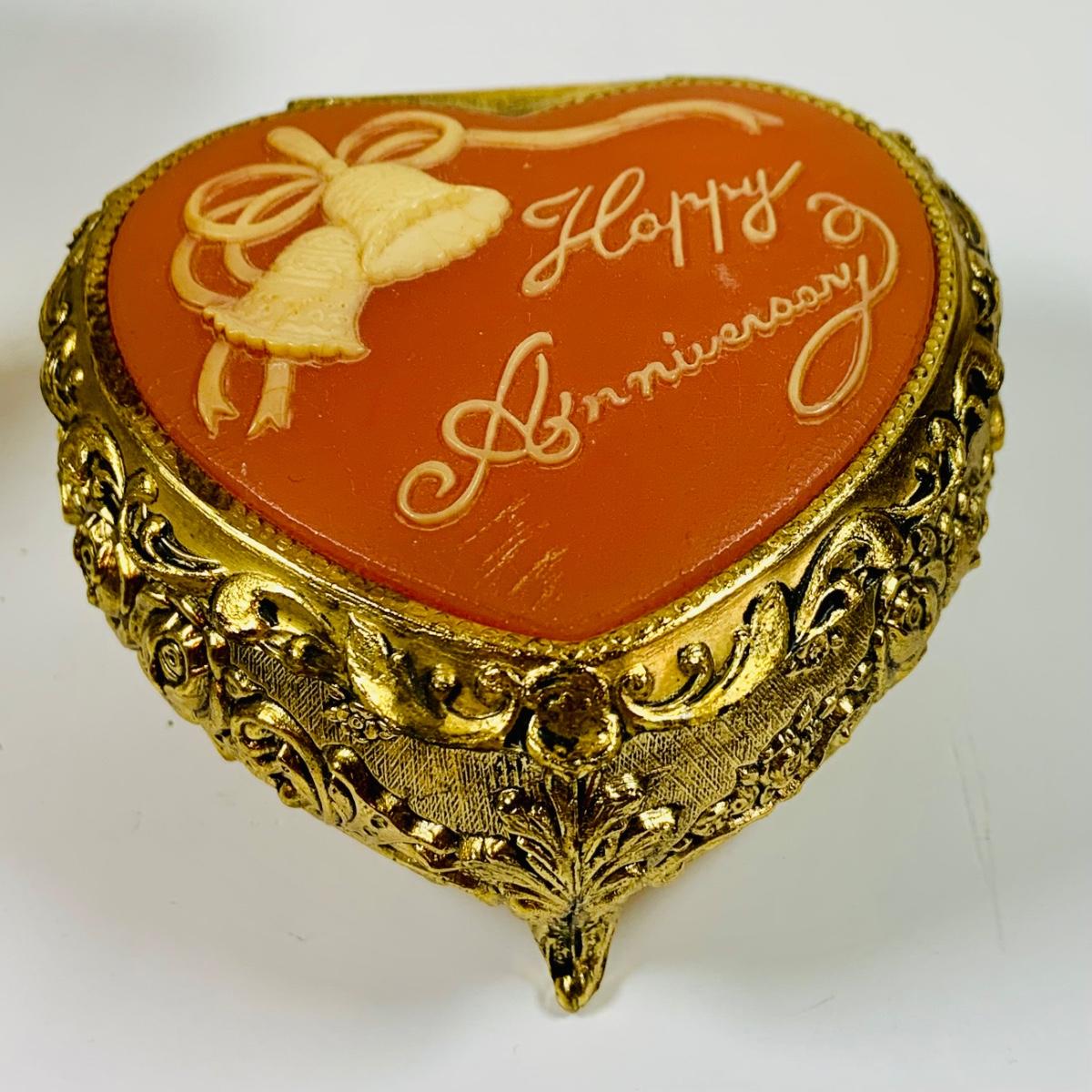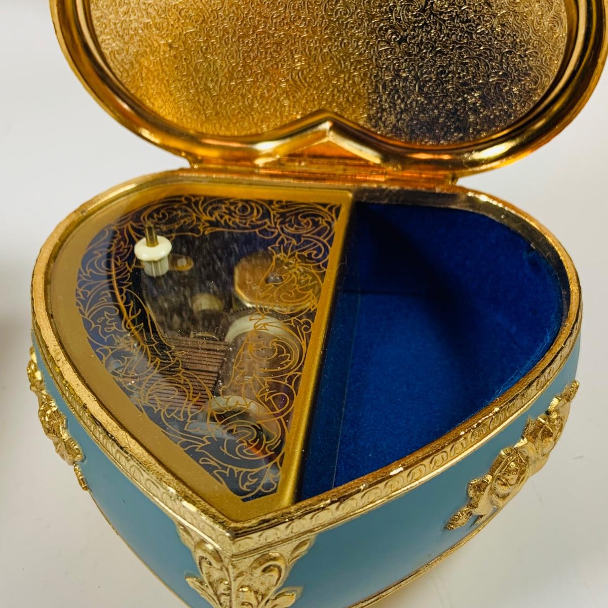 LOT124: Collection of VIntage Victorian Inspired Music Boxes/Trinket Boxes - San Francisco Music Box Co "Lara's Theme" Pop Up Music Spinning Figure Music Box and Two (2) Heart Shaped Cameo Boxes