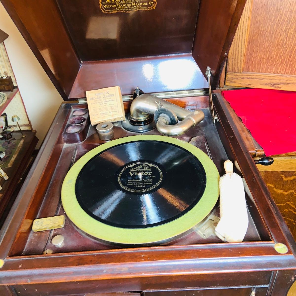 LOT 127: Victor Talking Machine - Victrola Model VV - XA- 356123 with Needle Cup, Crank, Stylus and Lots of 78 Vinyl Reords