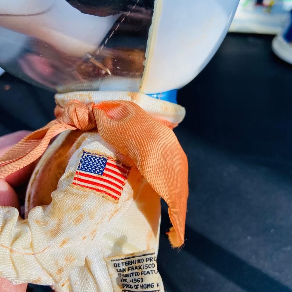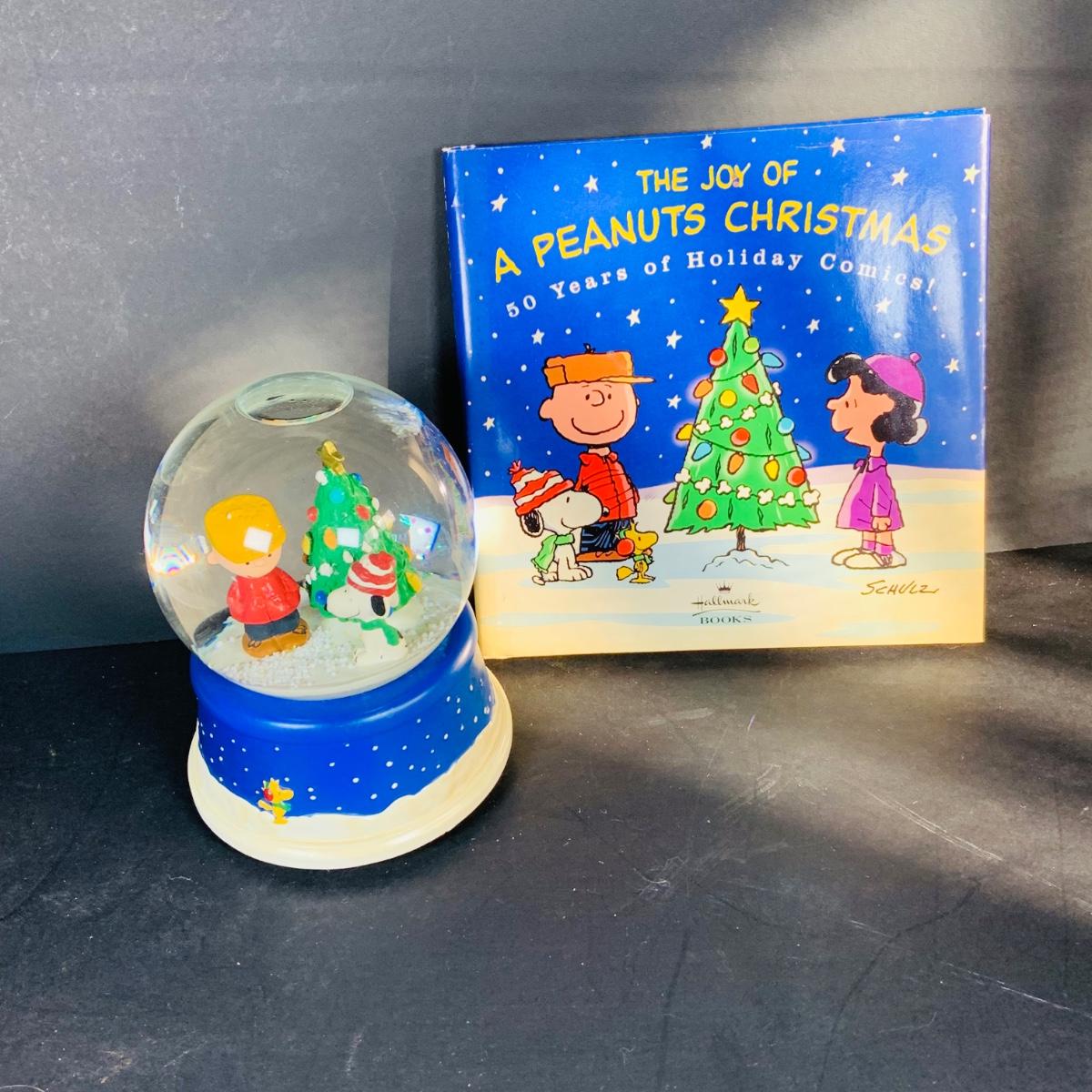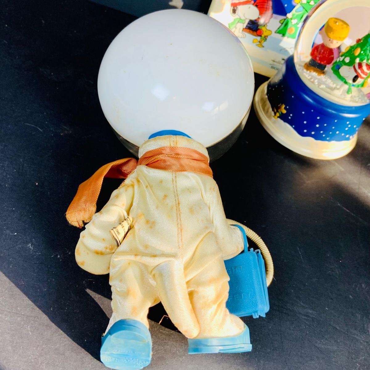 LOT 134: Vintage Peanuts Snoopy Astronaut from 1969 and 50th Anniversary Peanut Holiday Book and Snow Globe