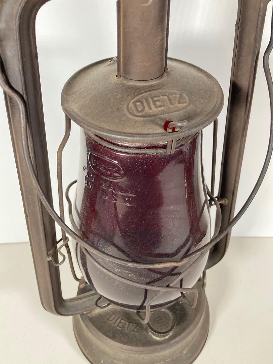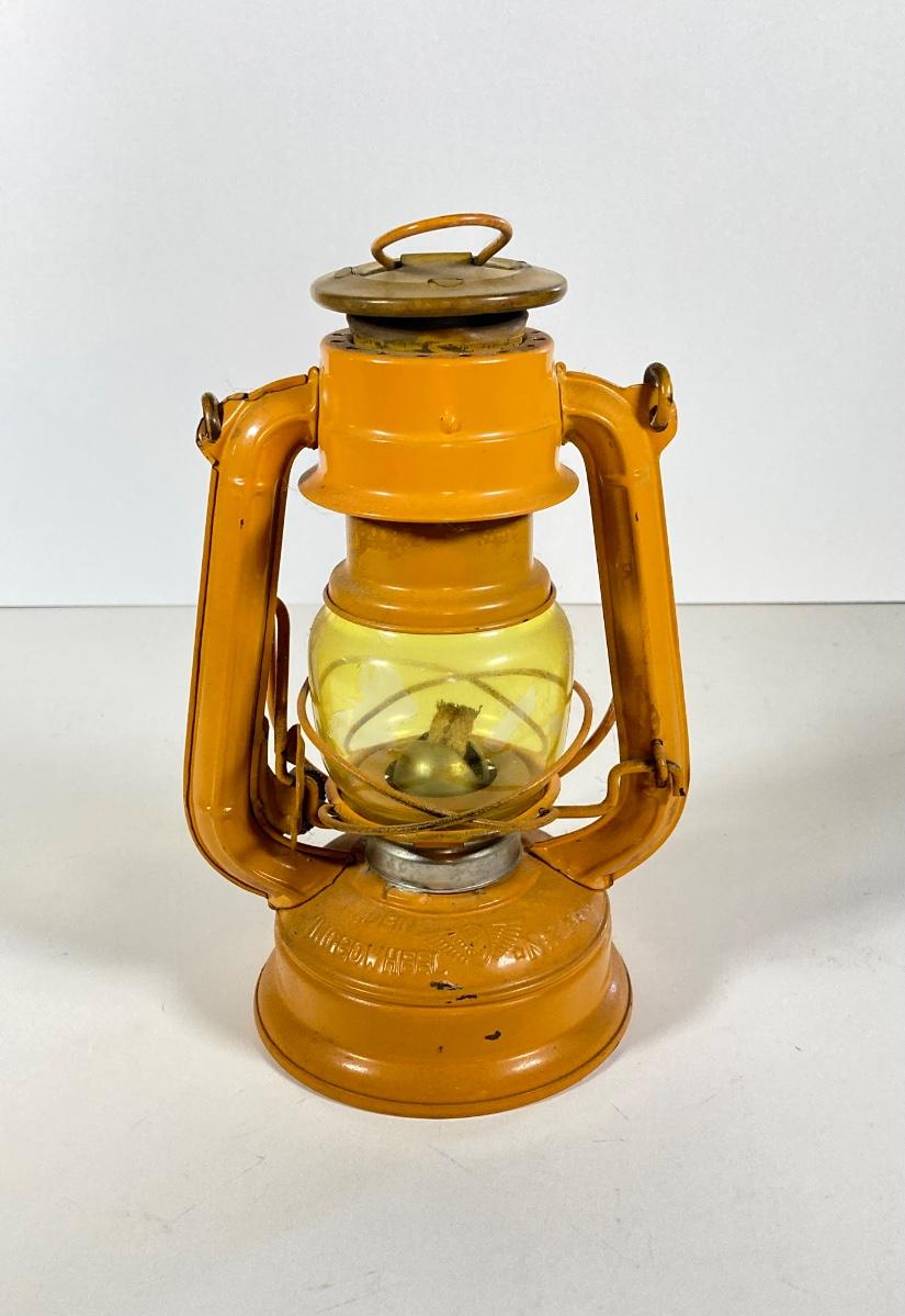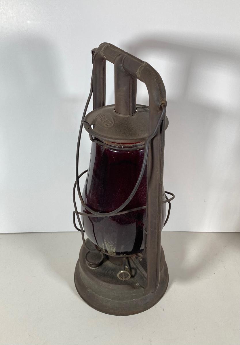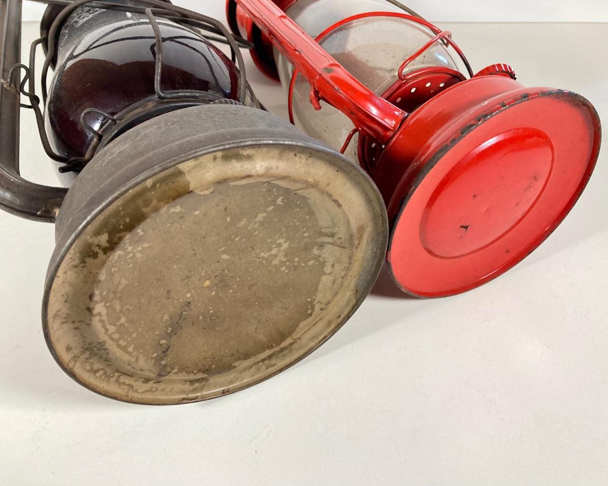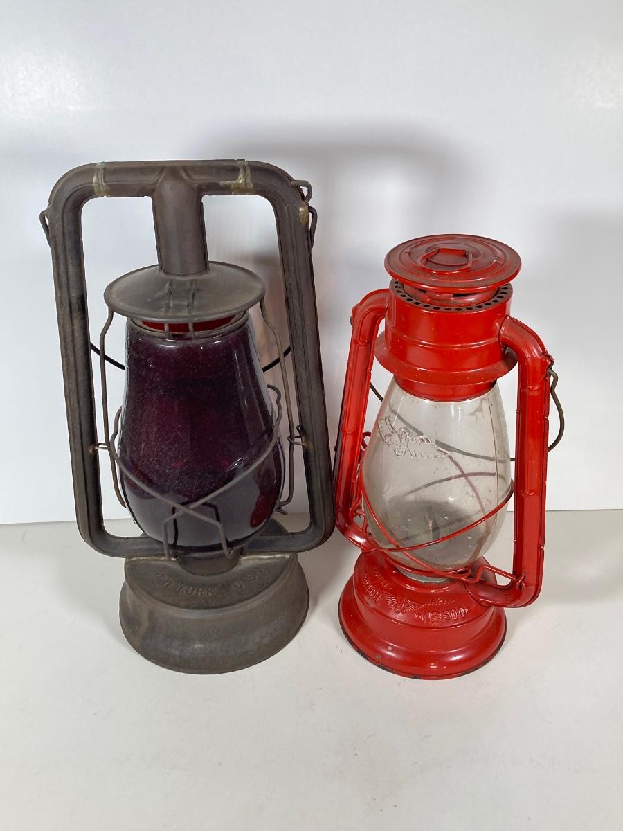 LOT 138: Three Oil Lanterns - Dietz (Gray) and Winged Wheel Brand (Red and Yellow)