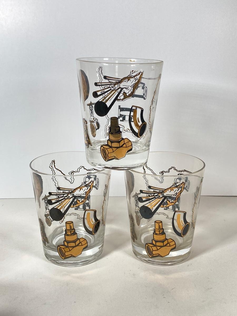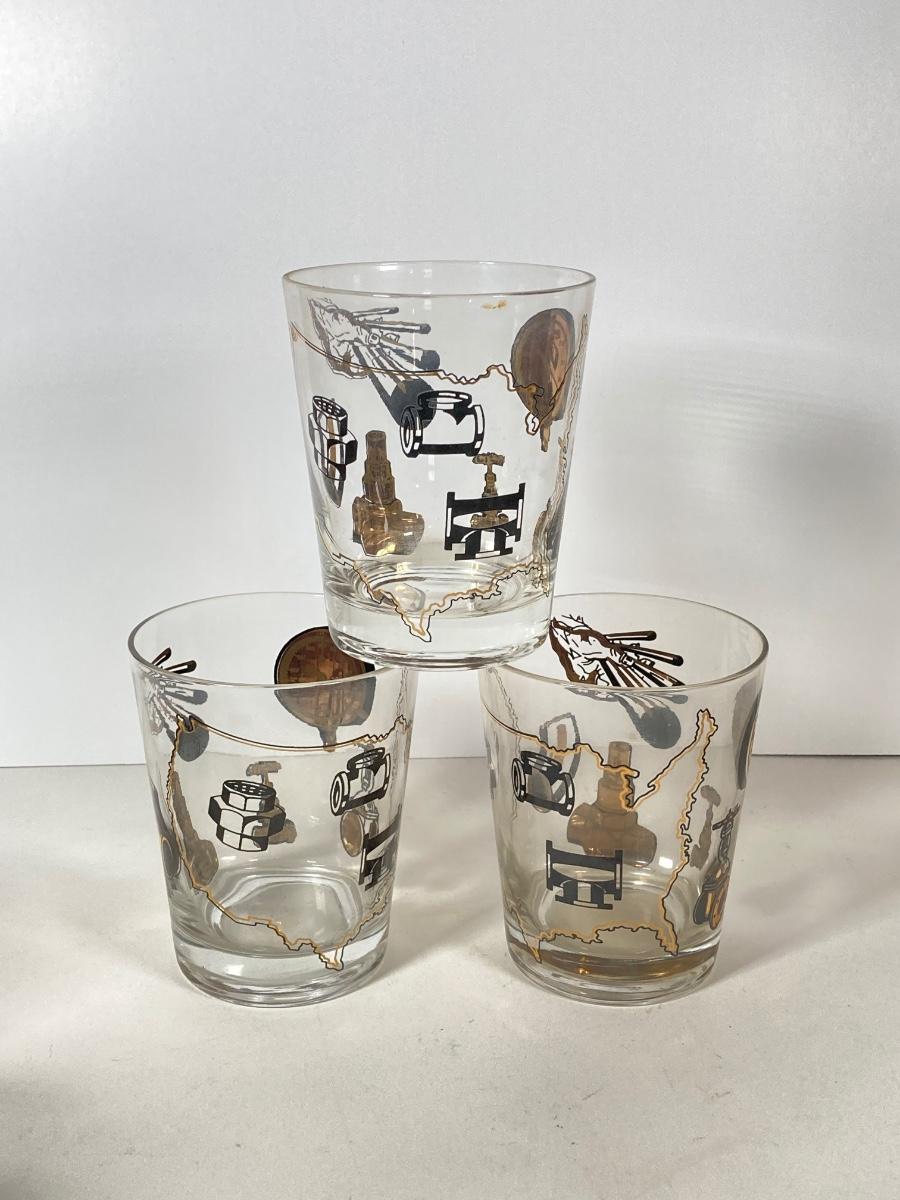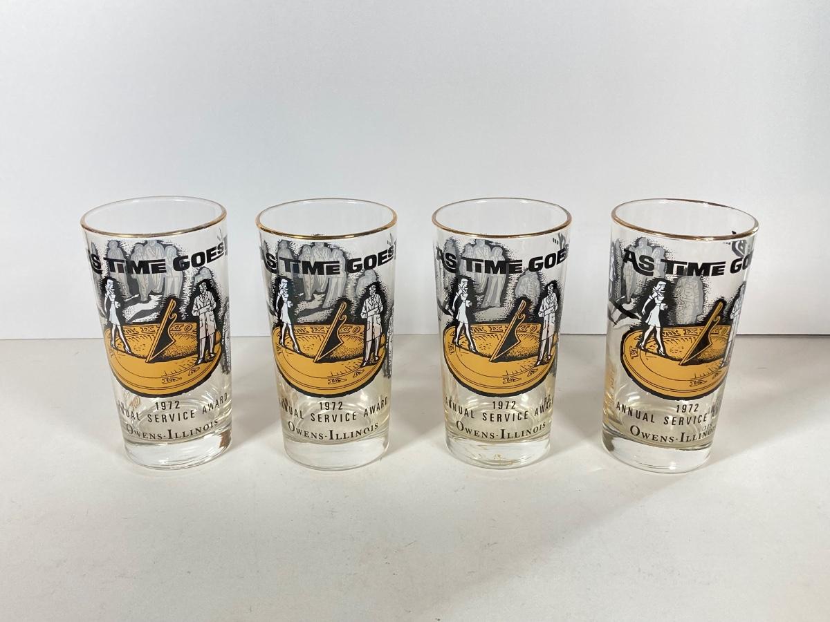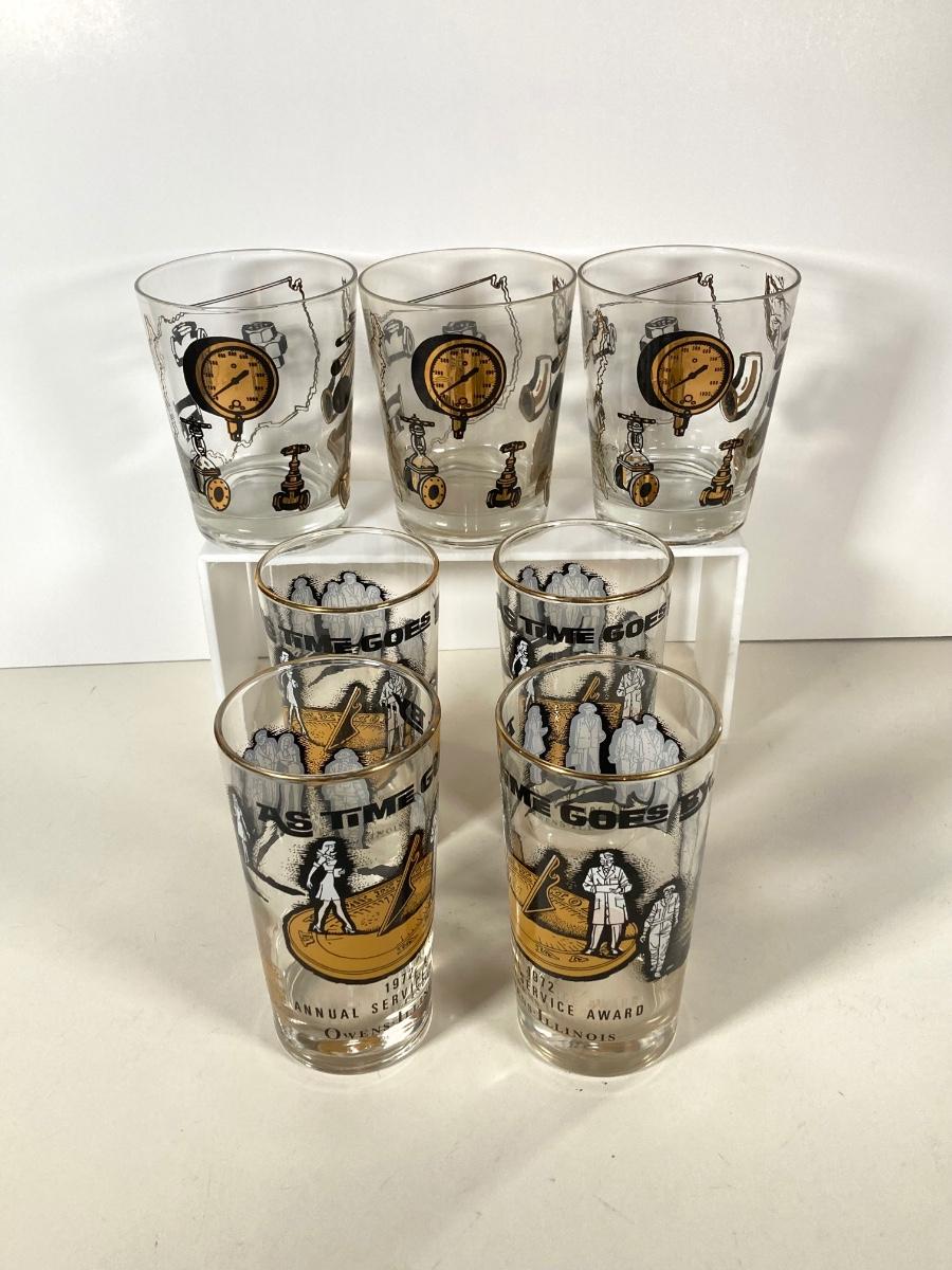 LOT 145: Seven MCM Black and Gold Drinking Glasses - 1972 "As Time Goes By" Annual Service Awards Owen-Illinois and More