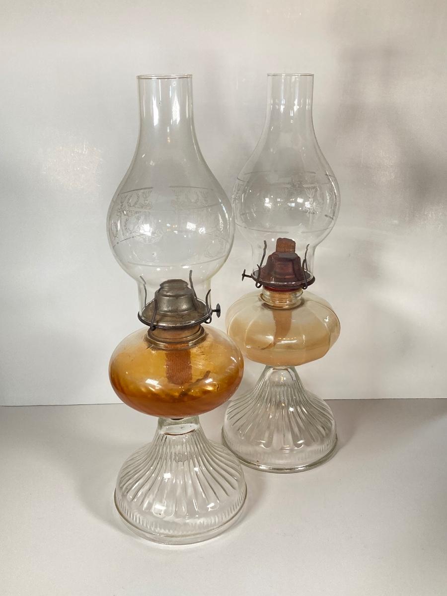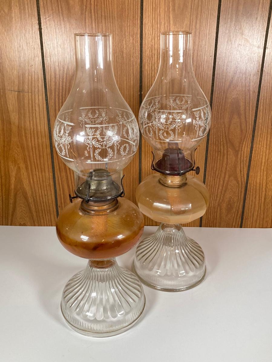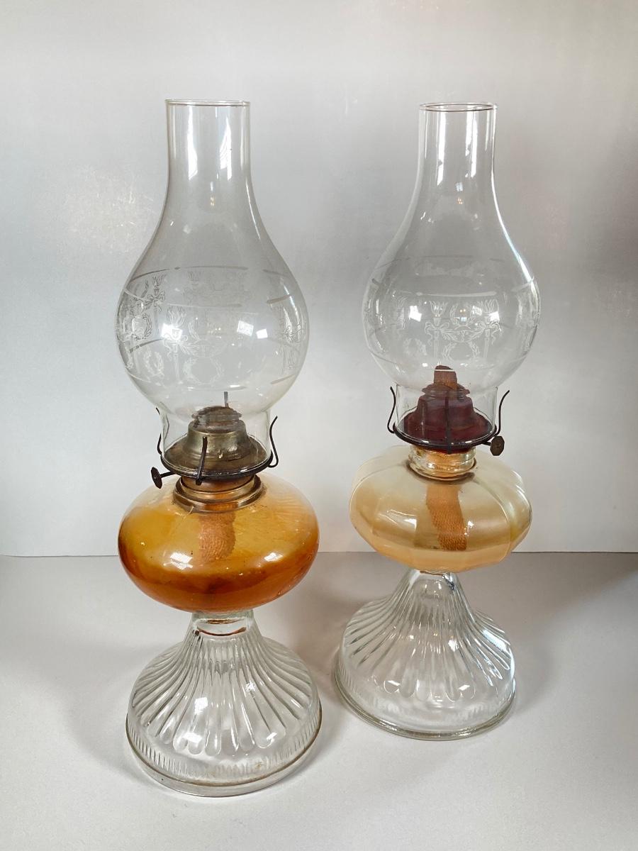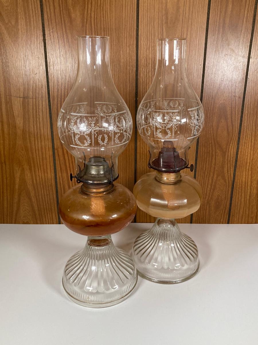 LOT 151: Pair of Vintage Tall Glass Oil Lamps