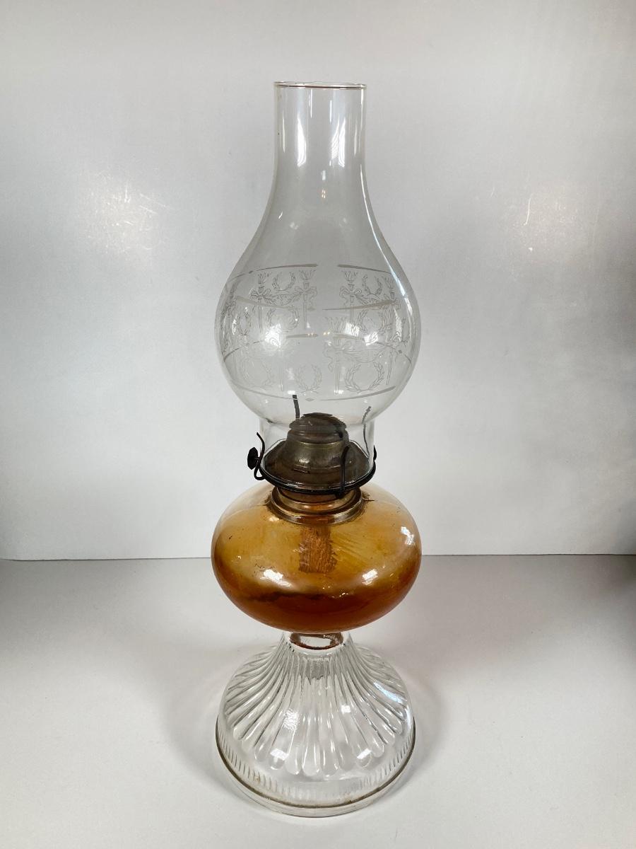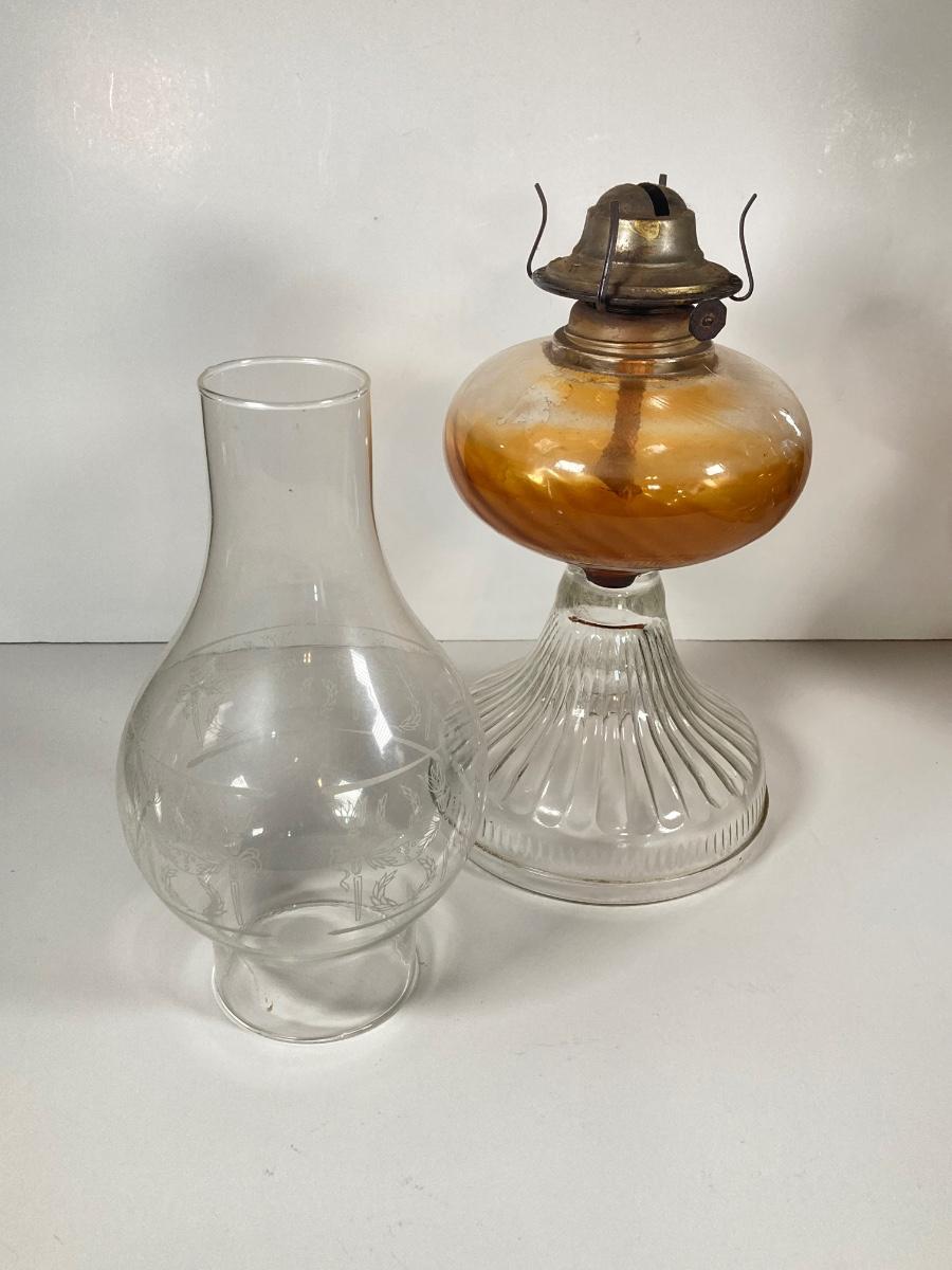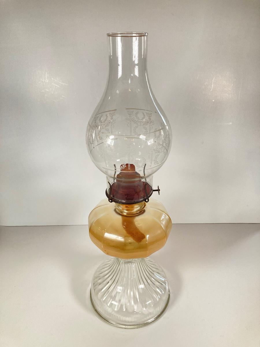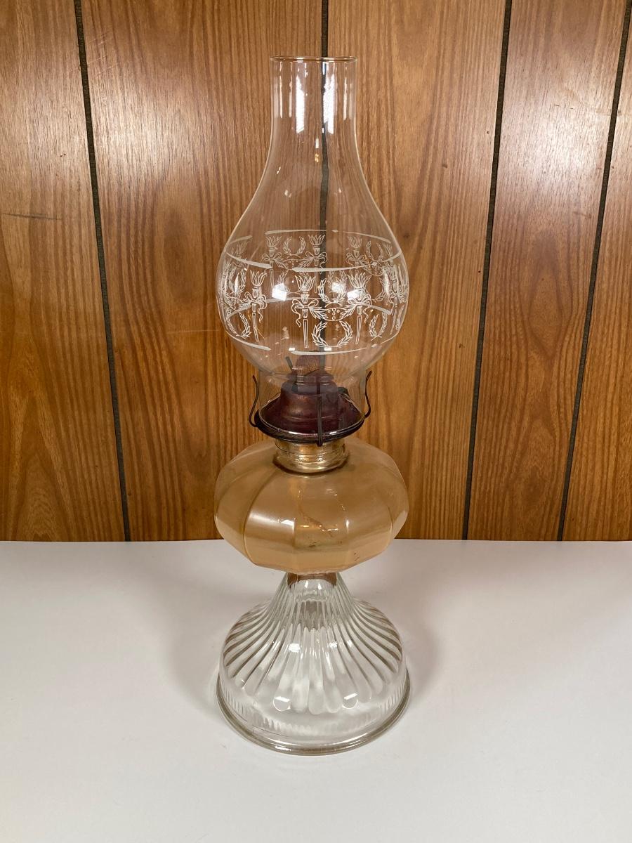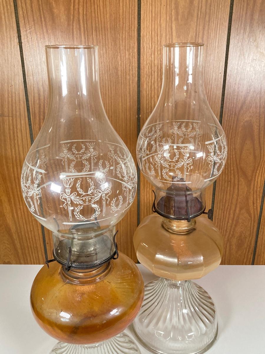 LOT 151: Pair of Vintage Tall Glass Oil Lamps