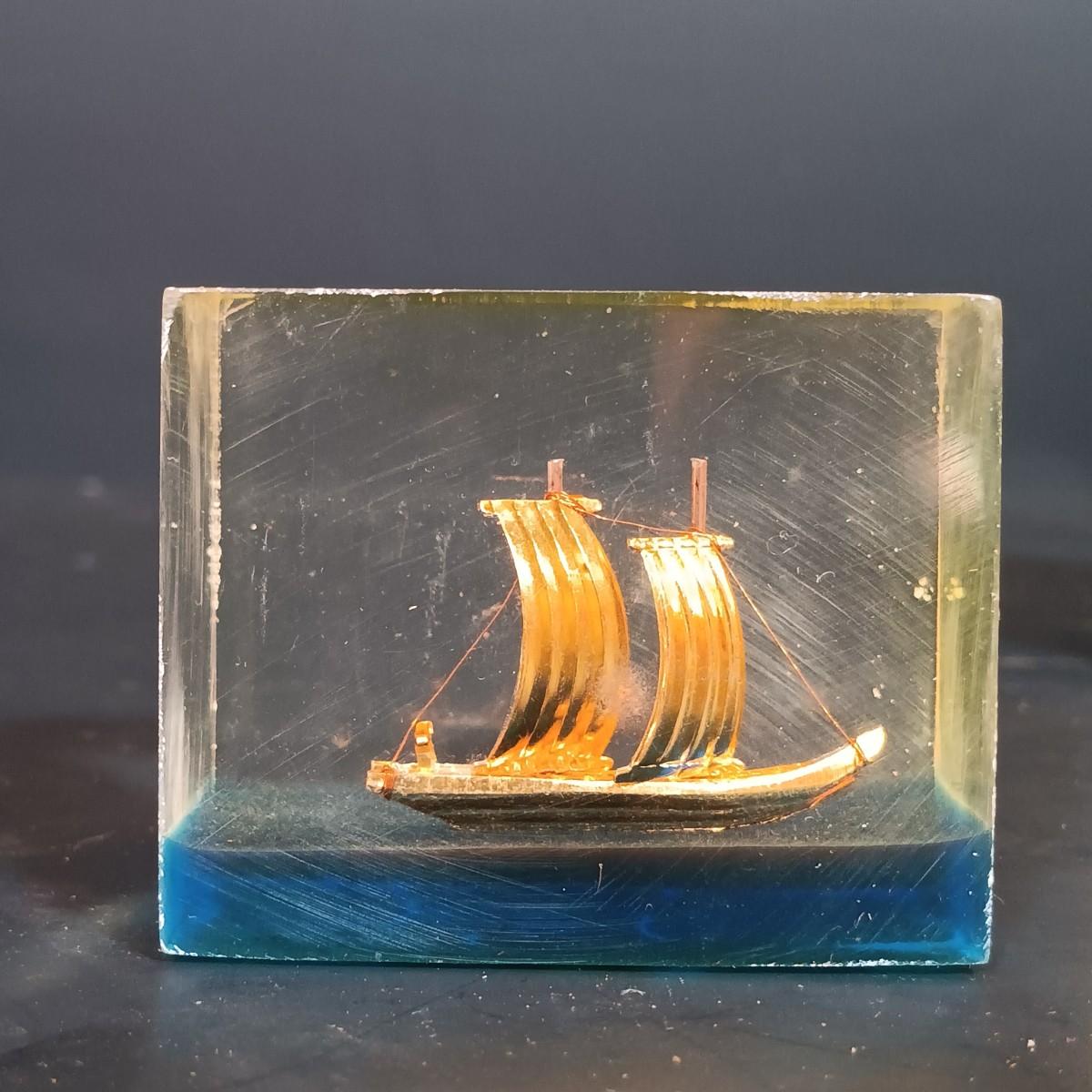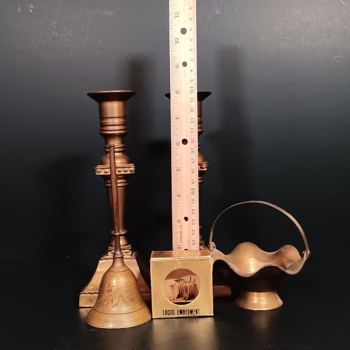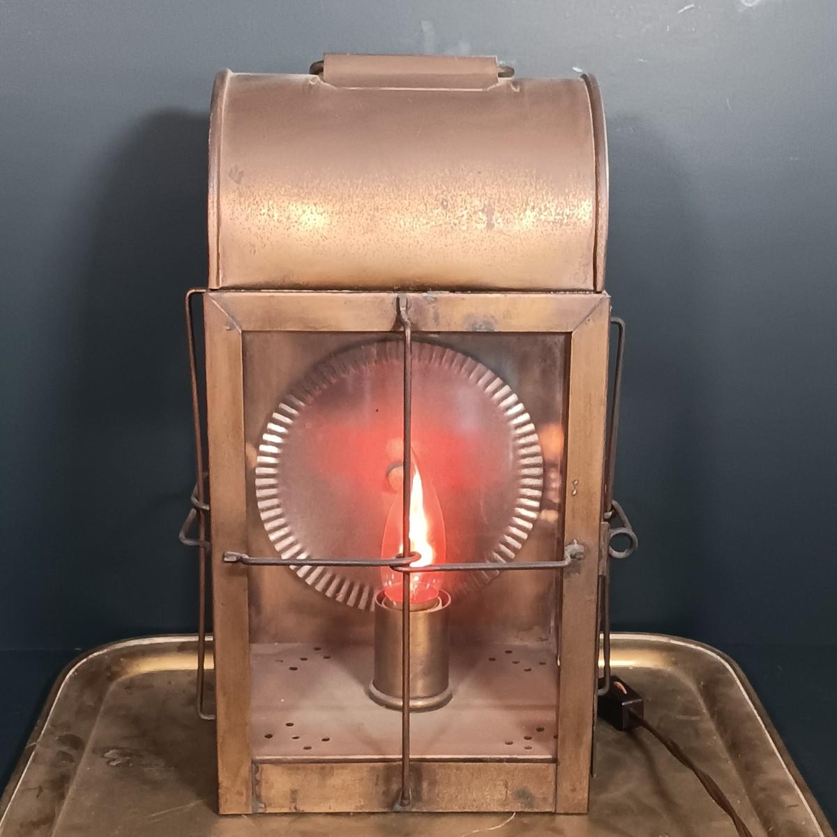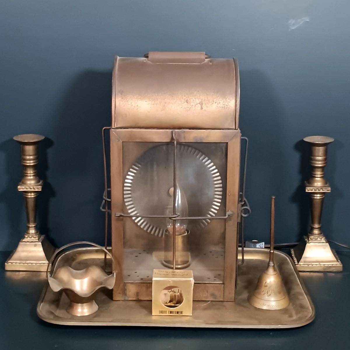 LOT 176: Electrified Brass Ship's Lantern with a Collection of Brass Decor & Lucite Paperweight