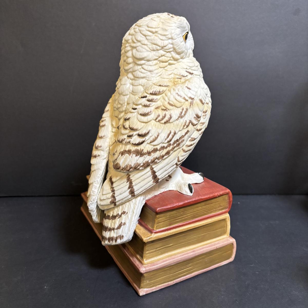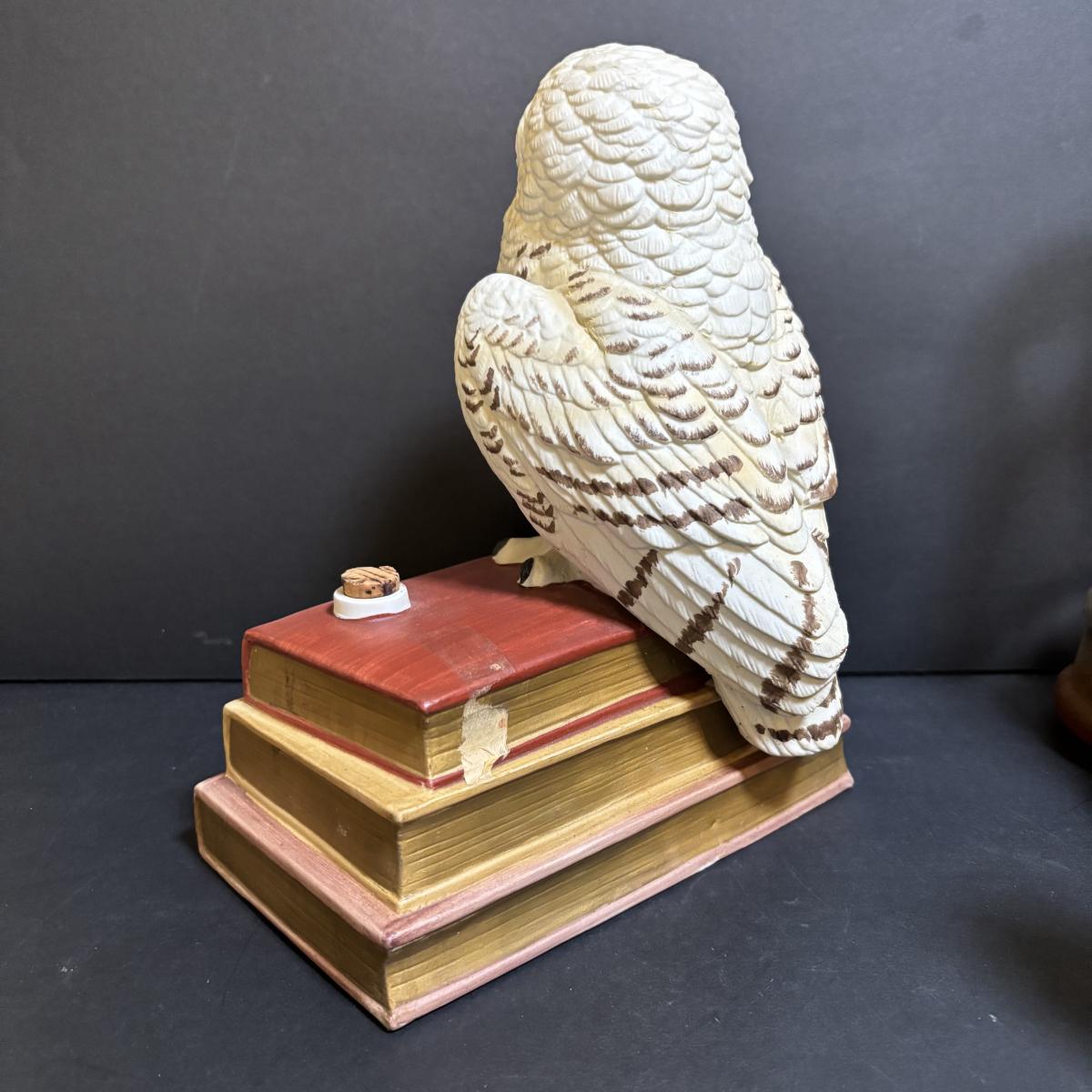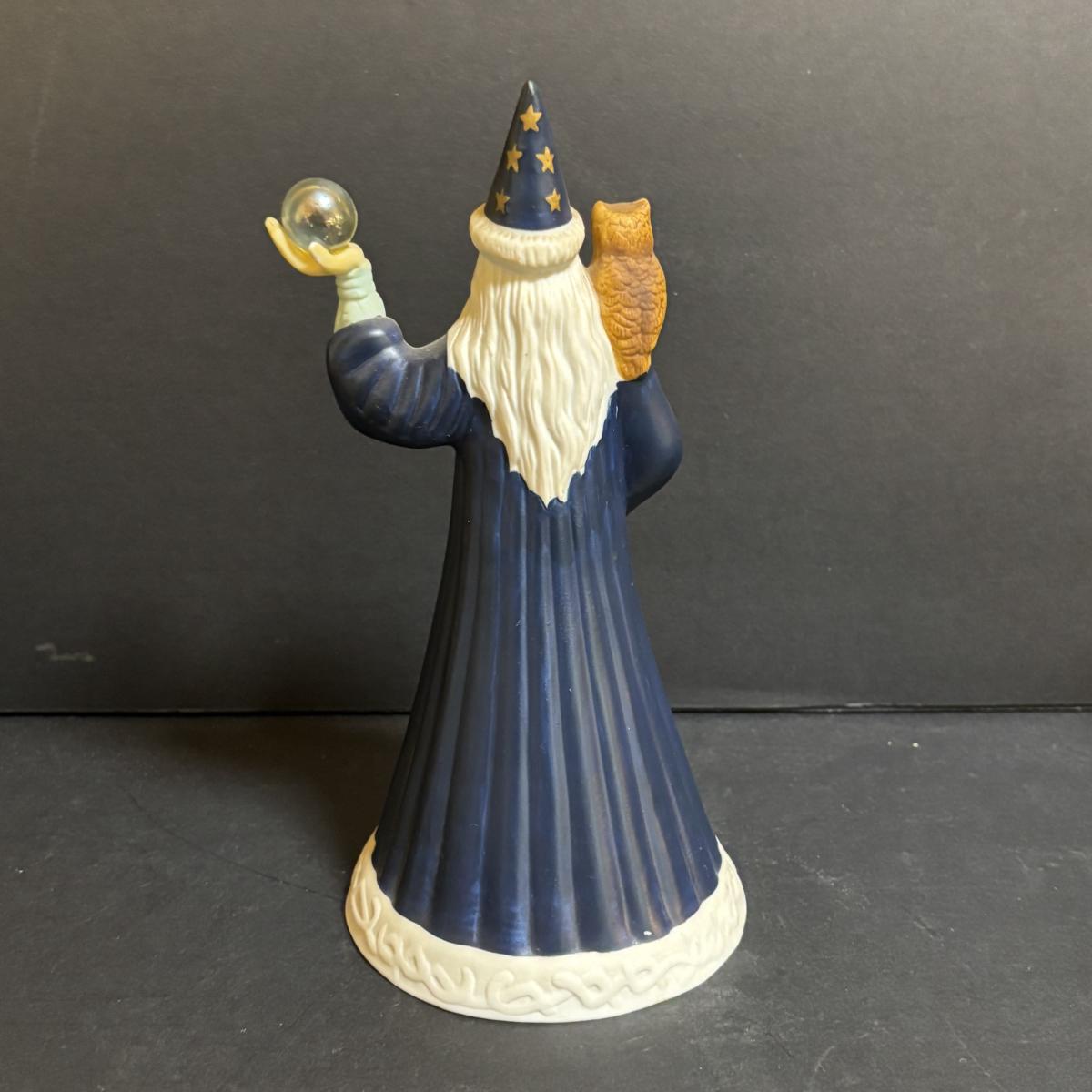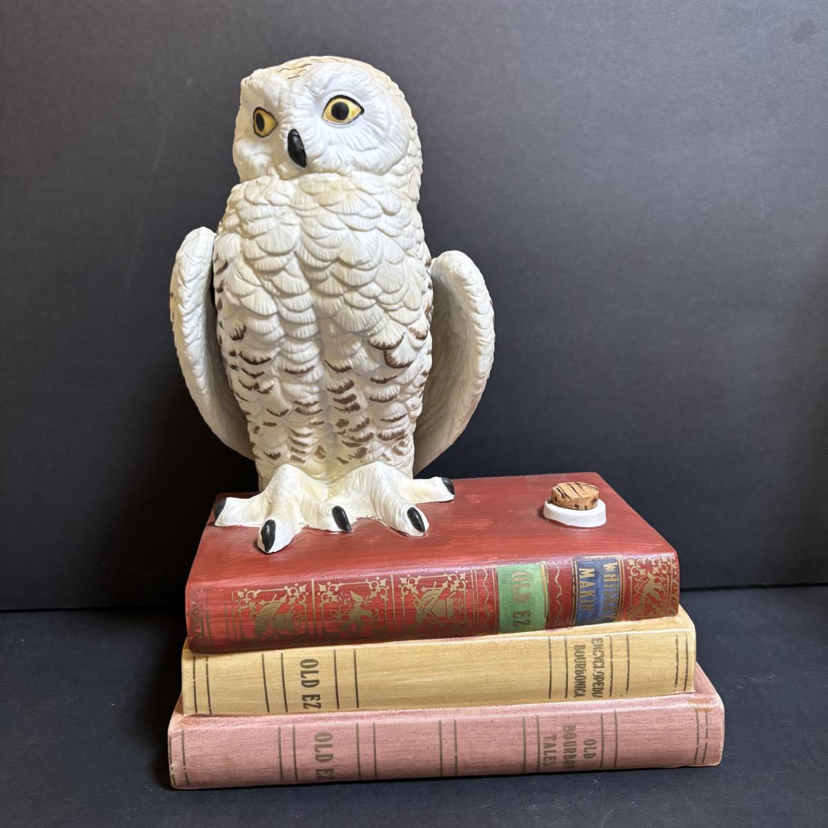 LOT 198: Vintage Wizard/Merlin San Francisco Music Box, Goebel Owls, Snow Owl Decanter, 3 Oil Lamps, Wooden Carved Owl & More