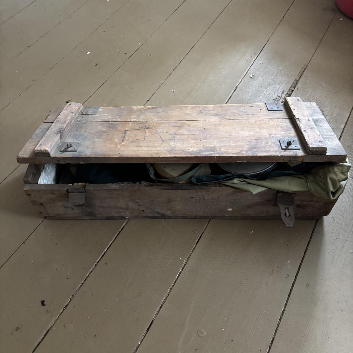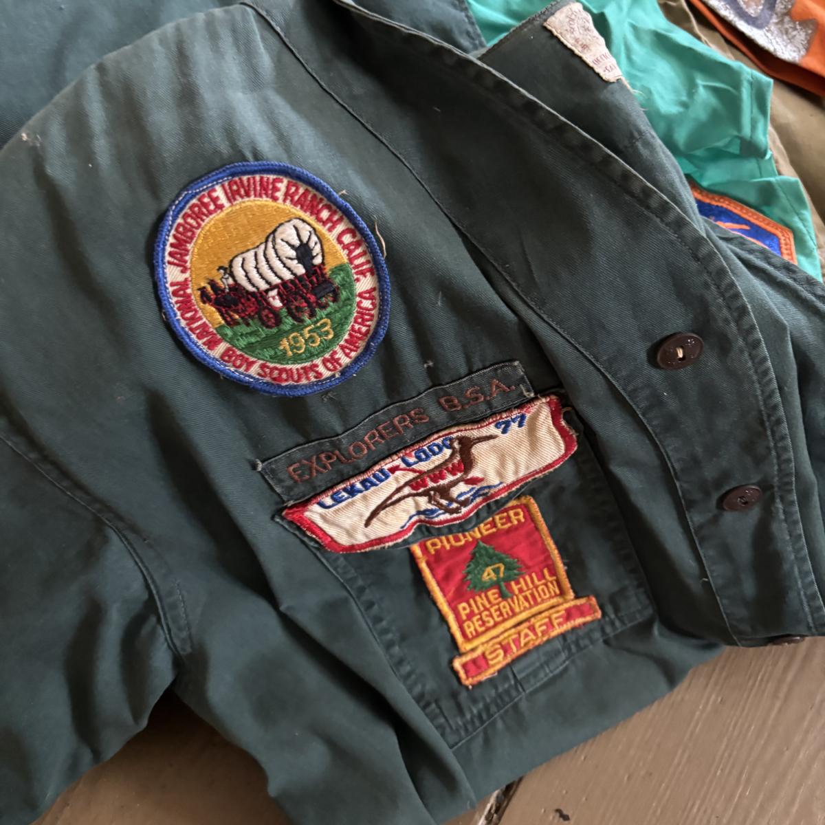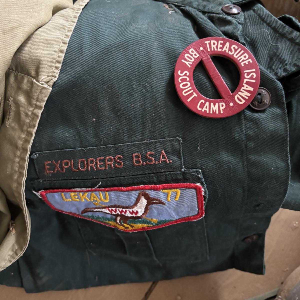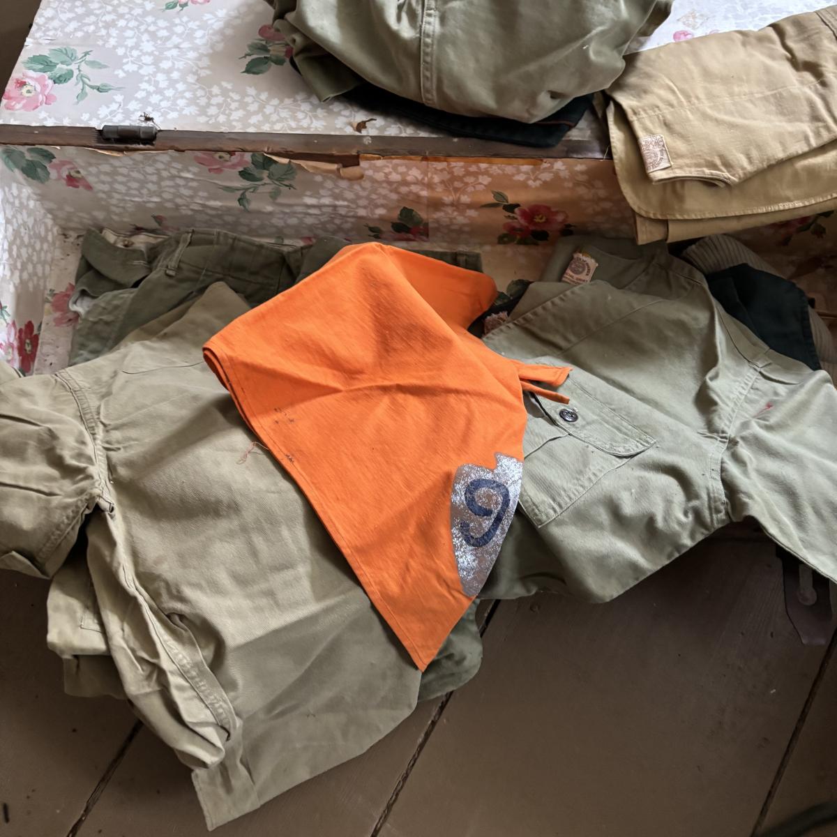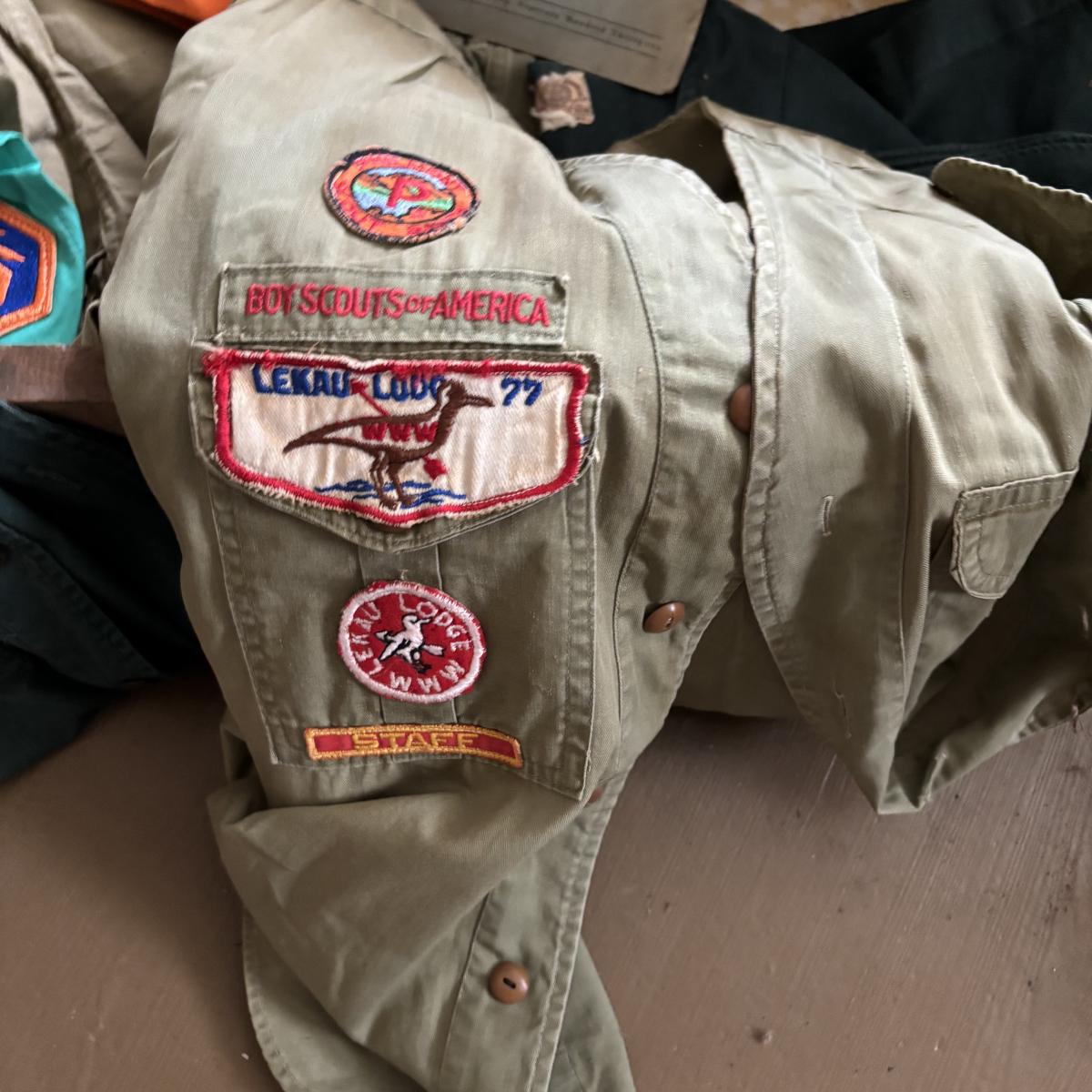 LOT 802: Boy Scout of America Collection: Uniforms, Canteens & Wooden Footlocker