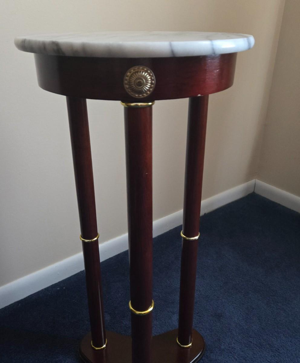 LOT 2L: Round Marble Top Plant Stand/Side Table