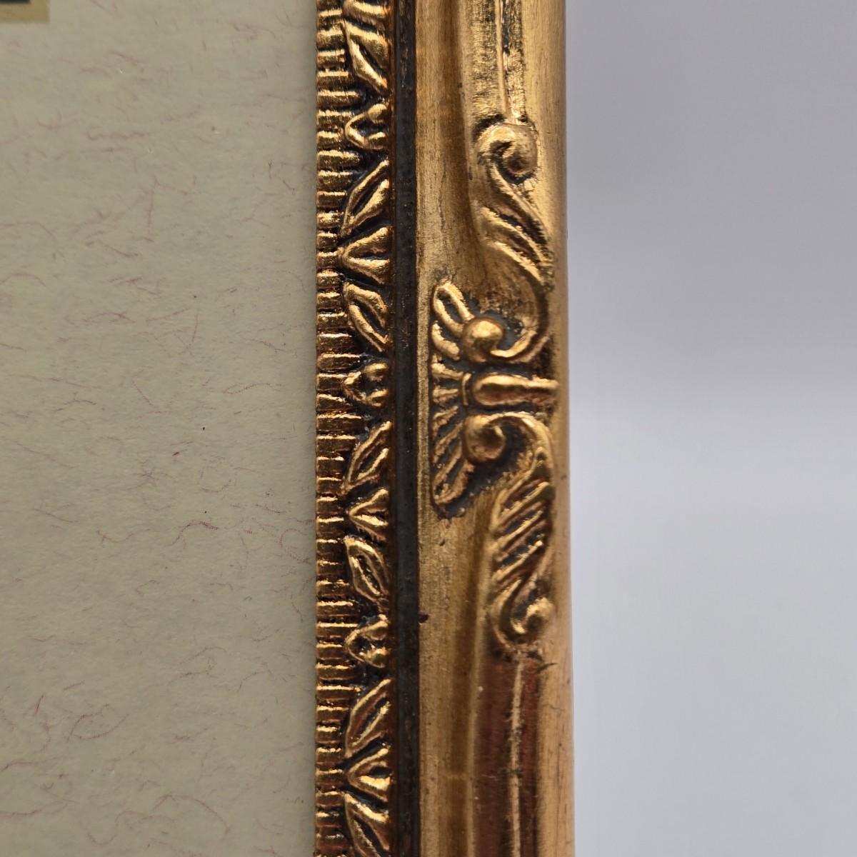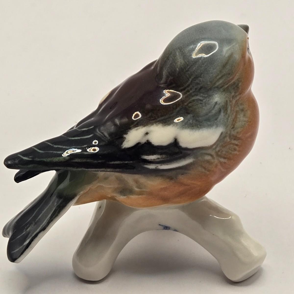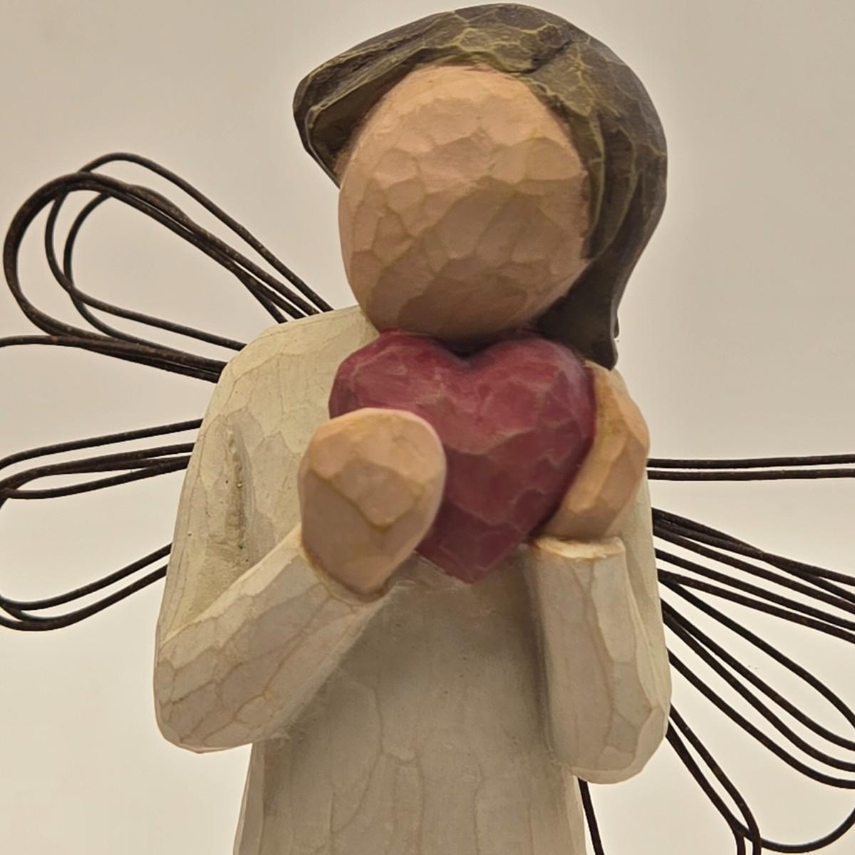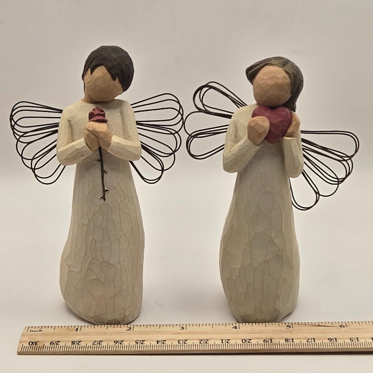 LOT 17L: Shades of Blue & White Bowl; Appears to be Hand Made, Boy Playing Flute Figurine, Small Schmid Brothers Angel, Two Willow Tree Angel Figures, Gold Leaf Picture Frame, & Goebel Bird Figure