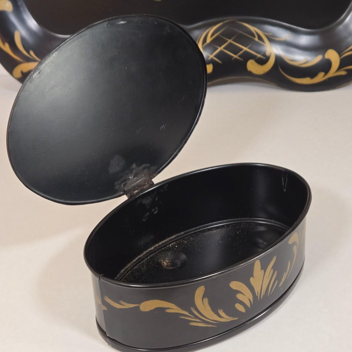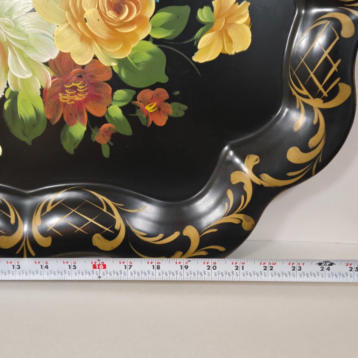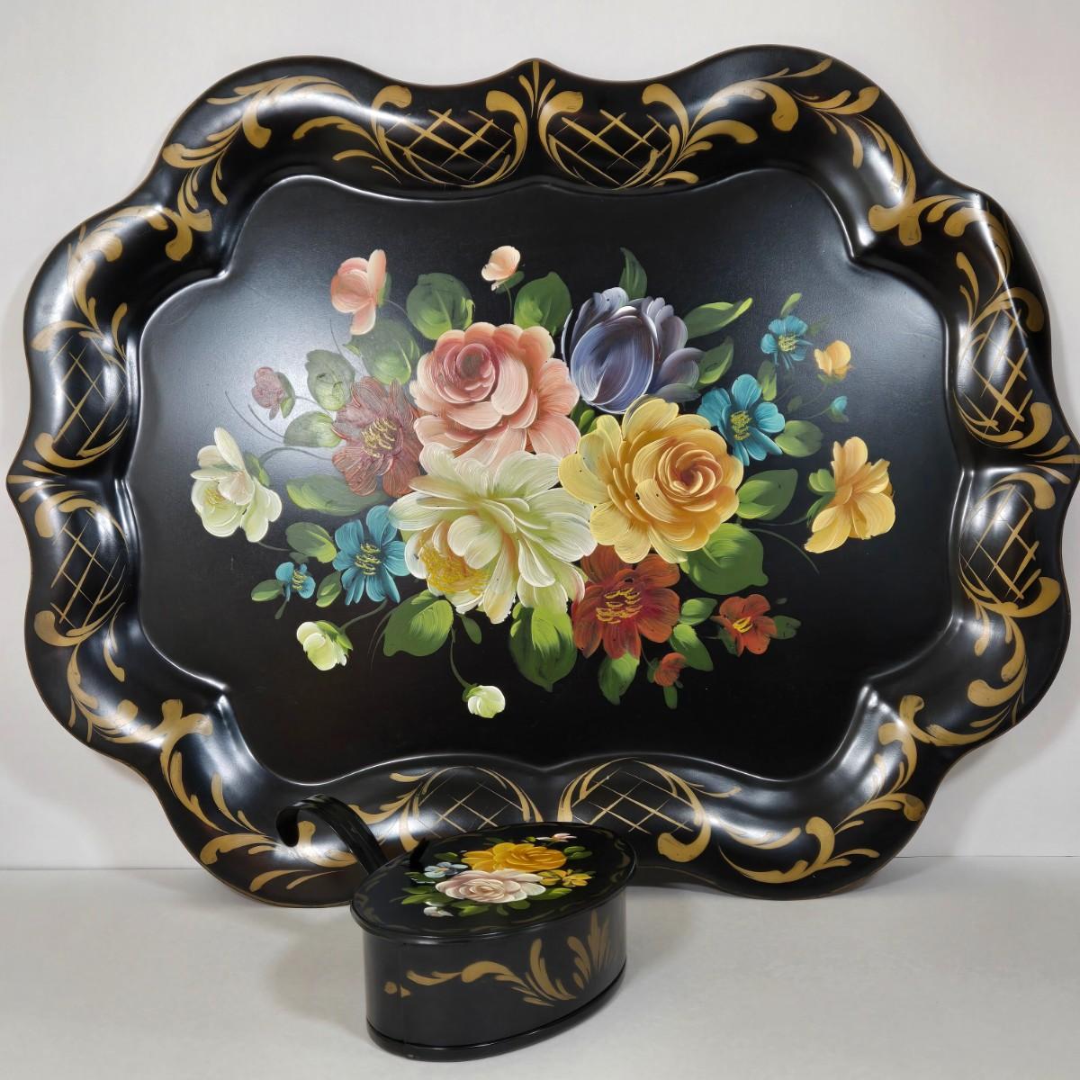 LOT 20L: Vintage Large Hand Painted Toleware Tray & Toleware "Silent Butler"