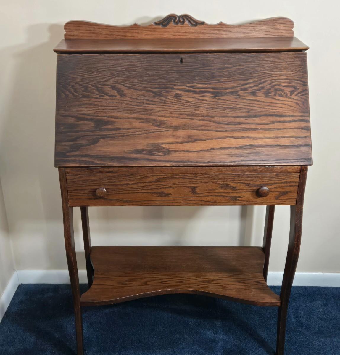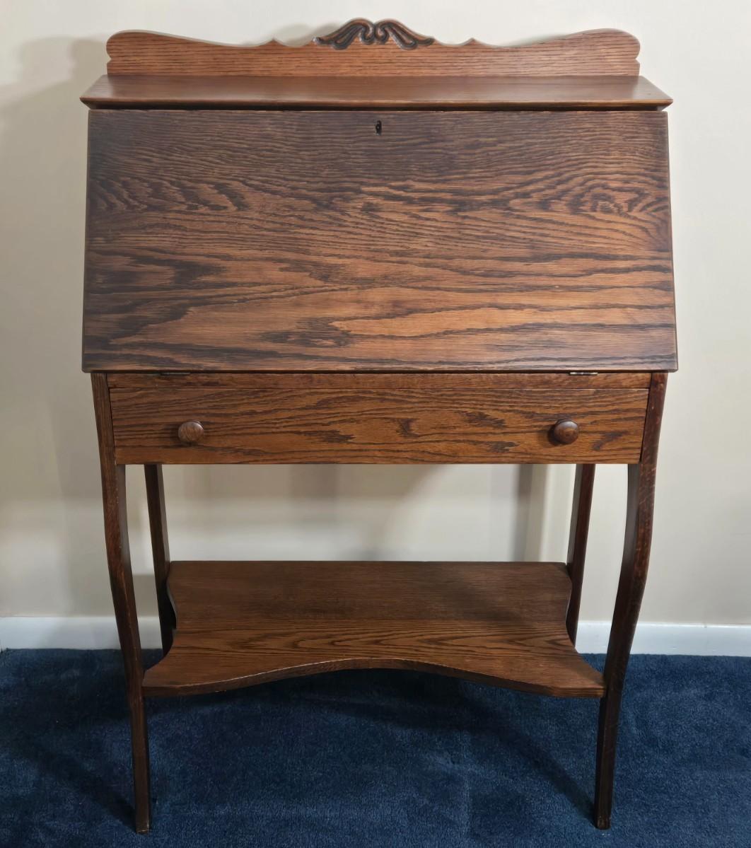 LOT 25L: Small Antique Solid Wood Secretary Desk