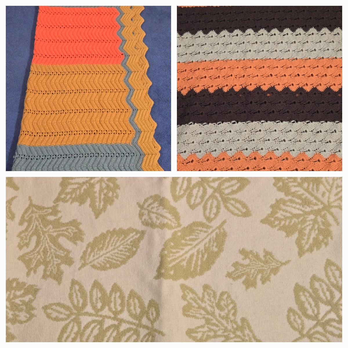 LOT 32L: Two Hand Crocheted Afghan Blankets & Reversible Leaf Blanket