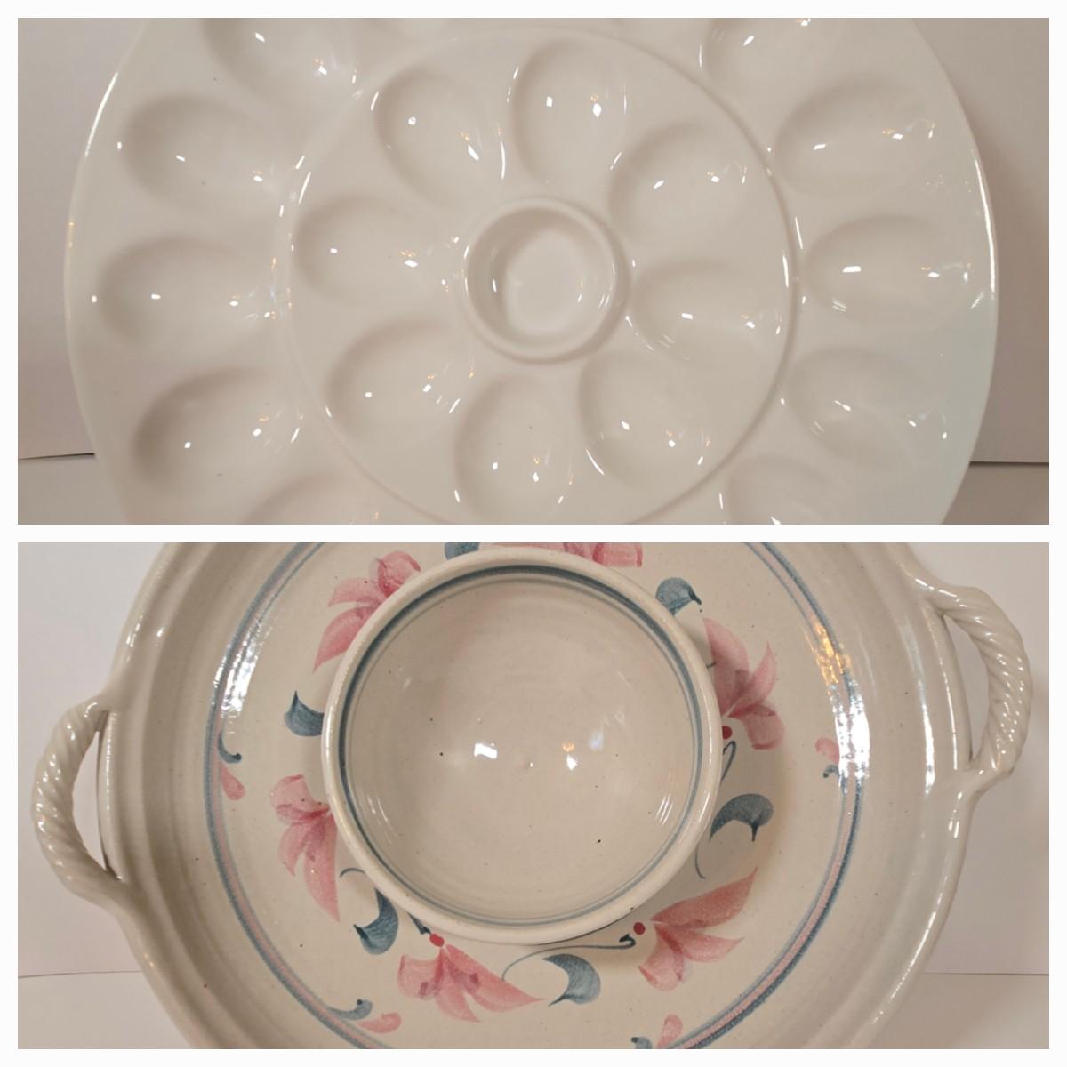 LOT 35D: Deviled Egg Plate, & Two Handled Chip/Veggies/Fruit and Dip Platter