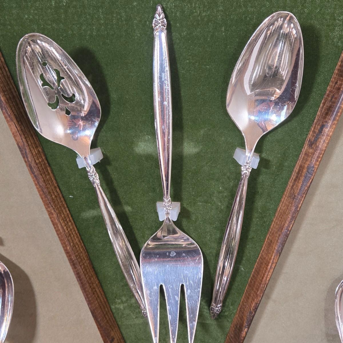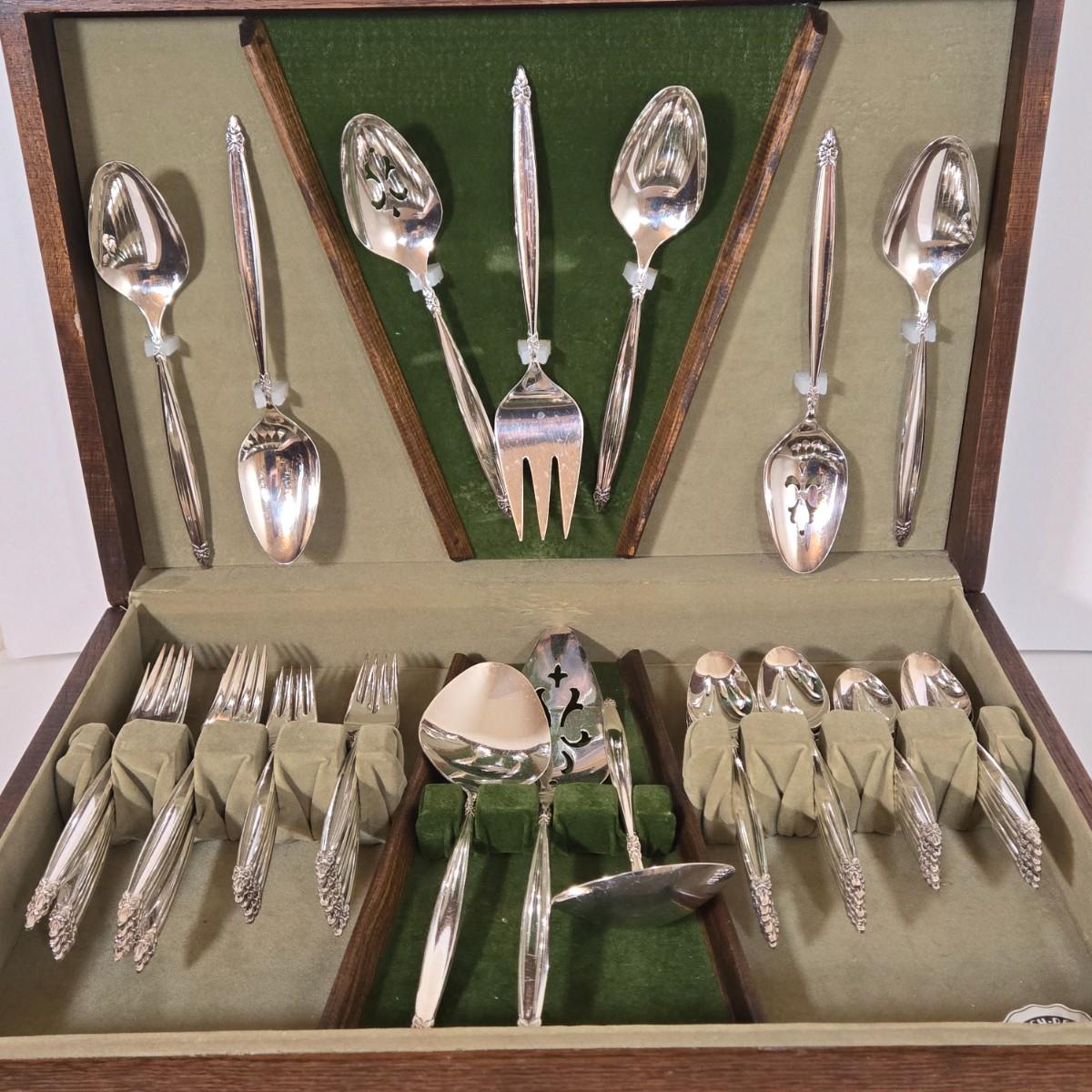 LOT 37D: 1847 Rogers Bros. Silverplate Flatware in Wooden Box