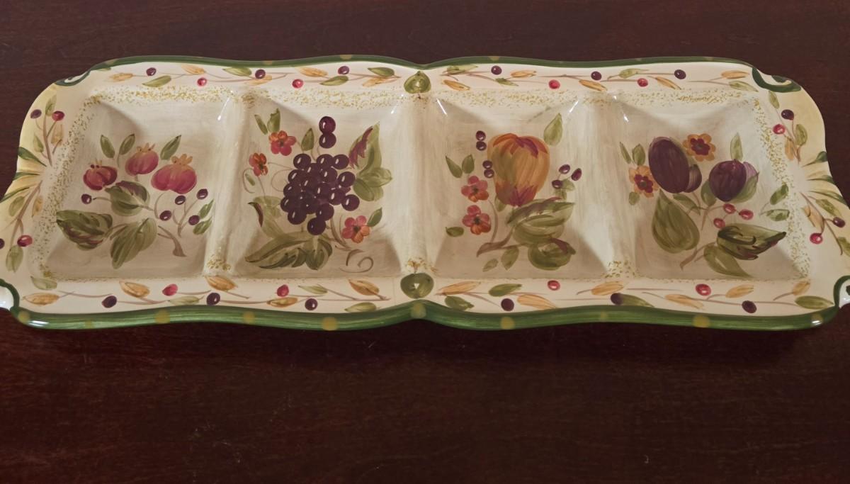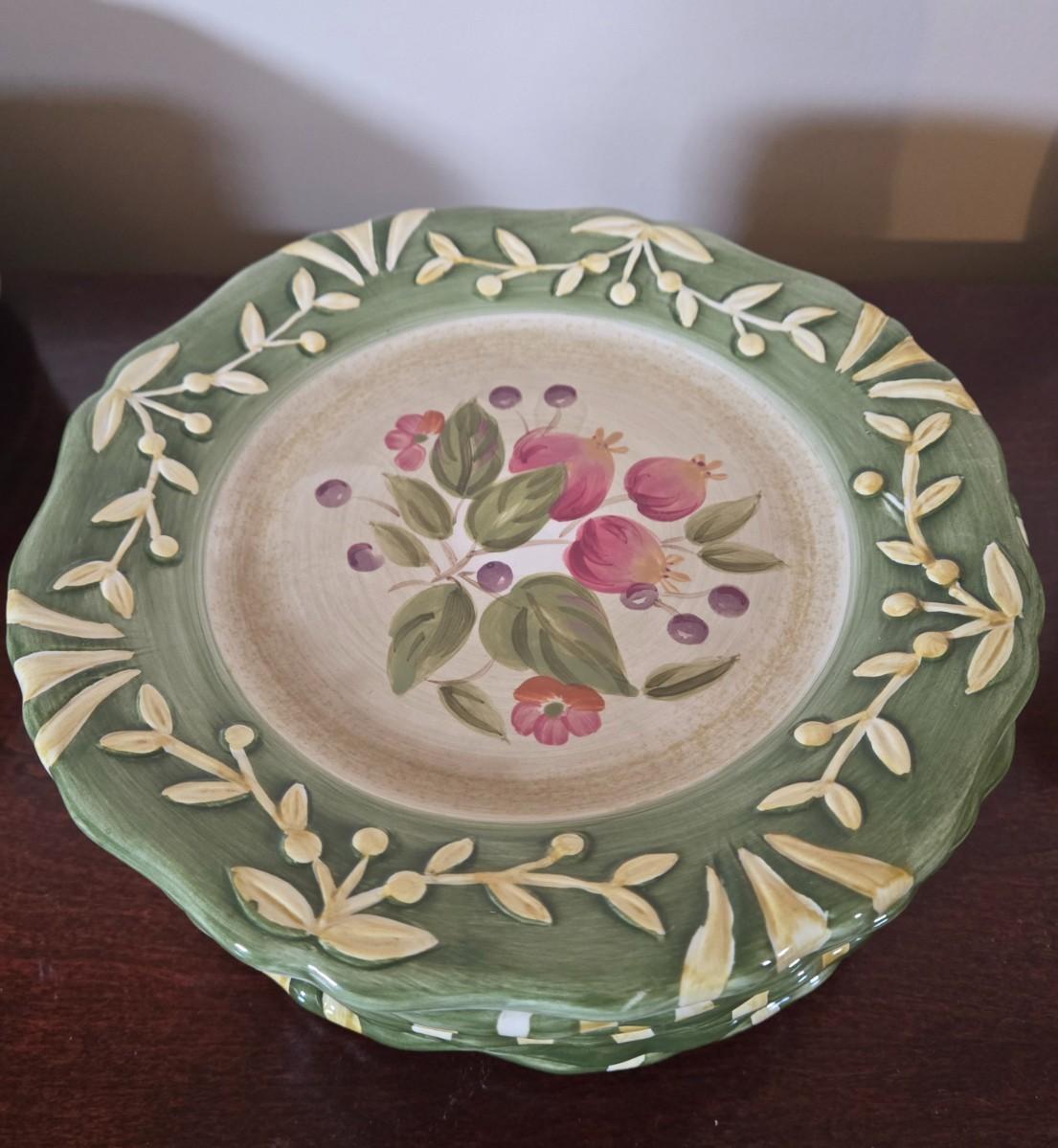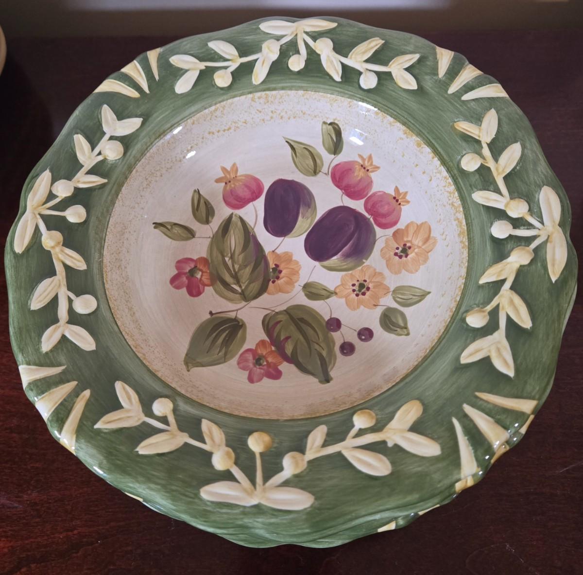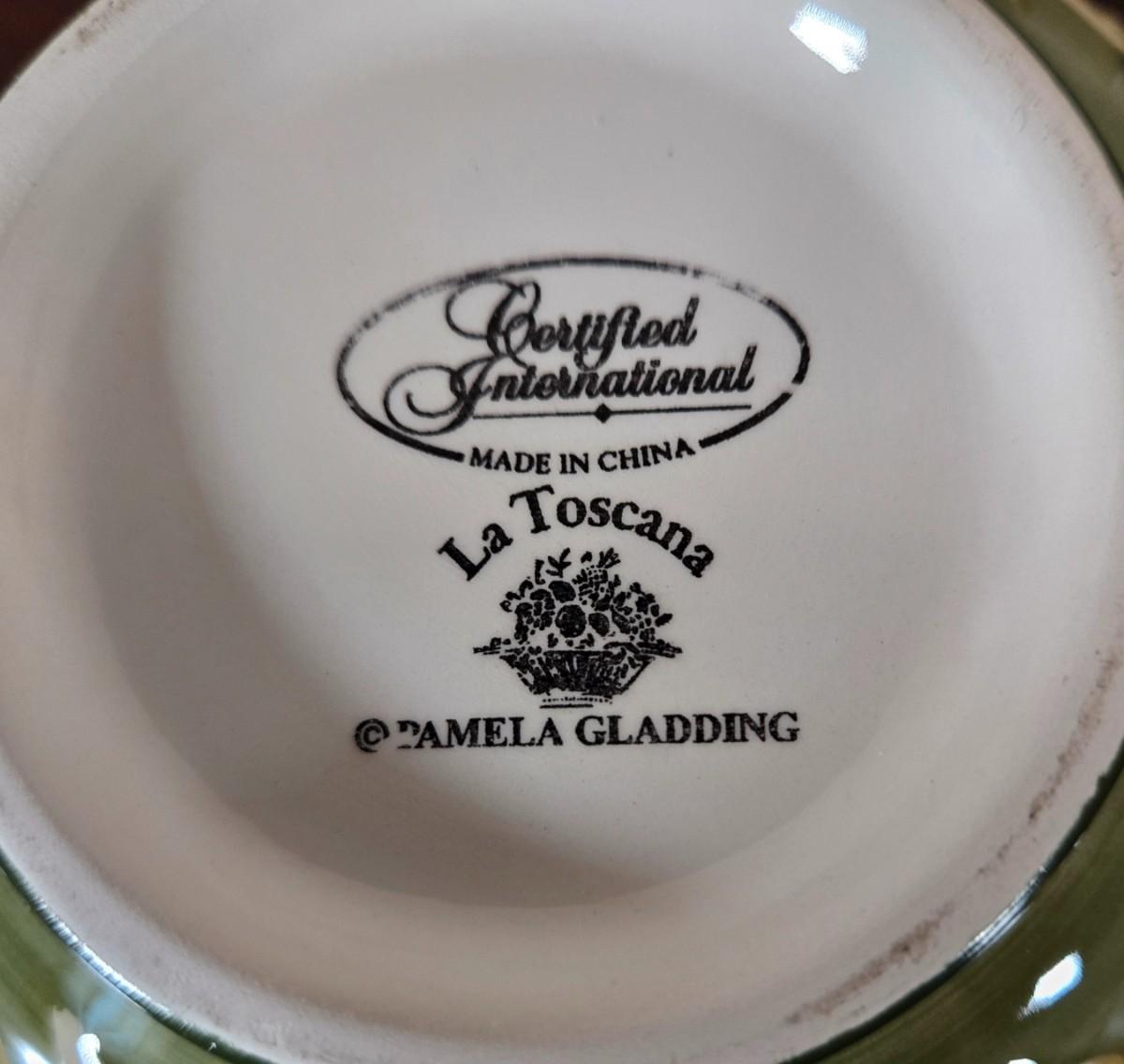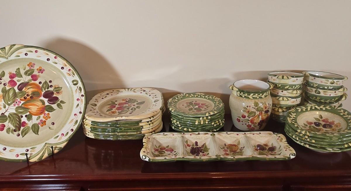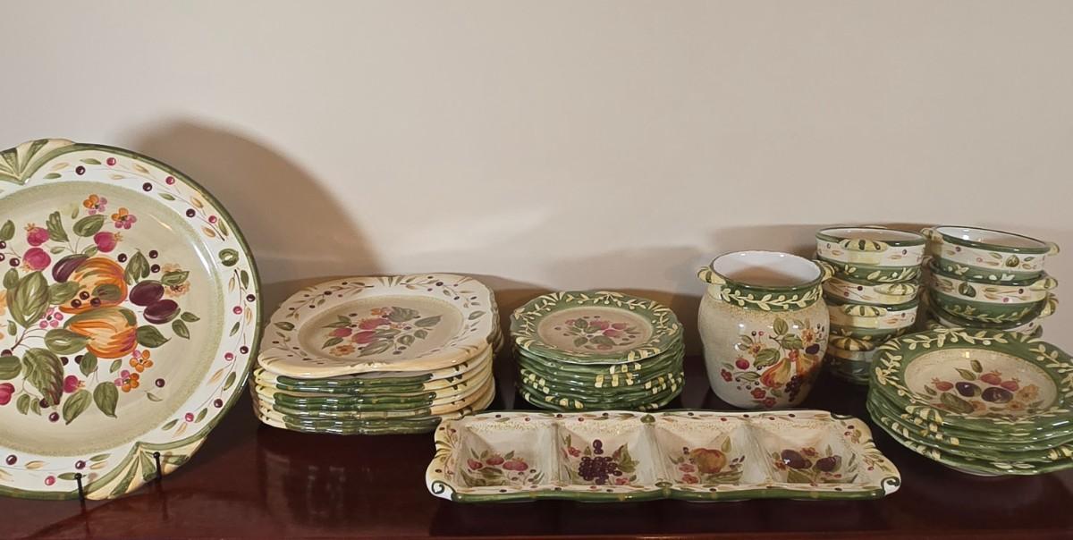 LOT 40L: La Toscana Serving Platter, Incomplete Set for 8 Dinner Plates, Salad Plates, Soup Bowls, Dessert Bowls, Olive Tray, & Canister