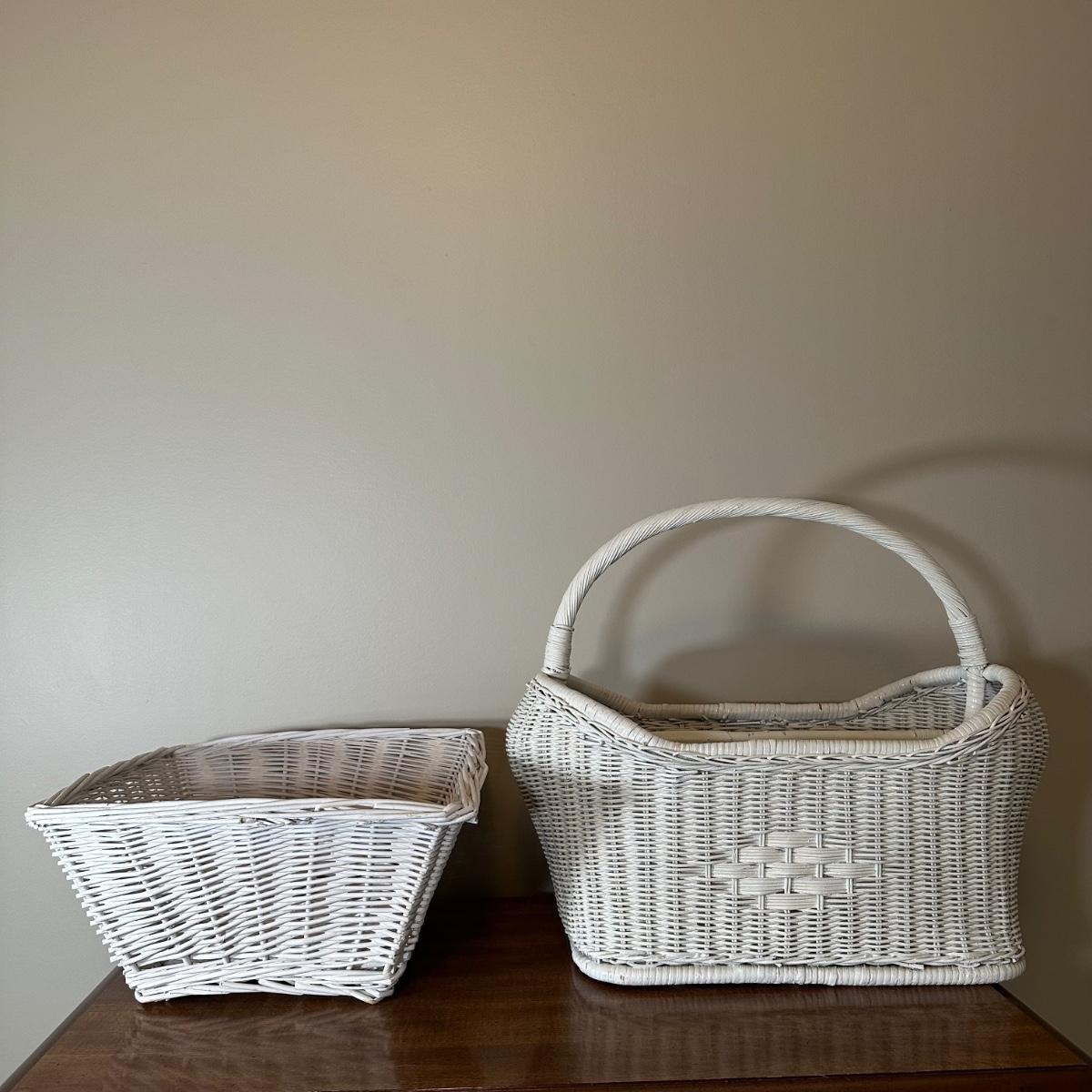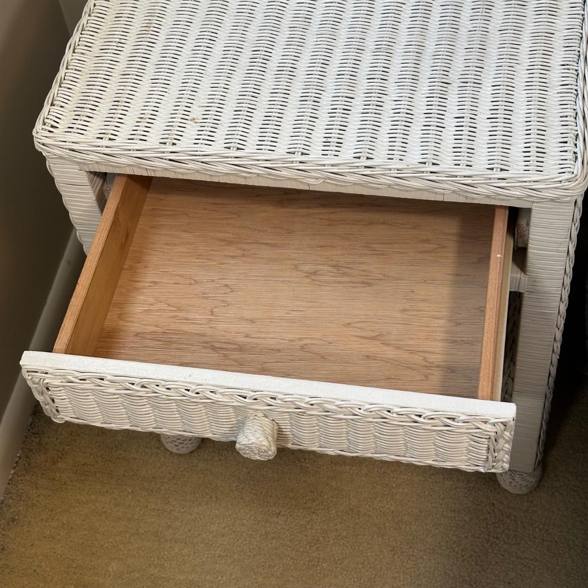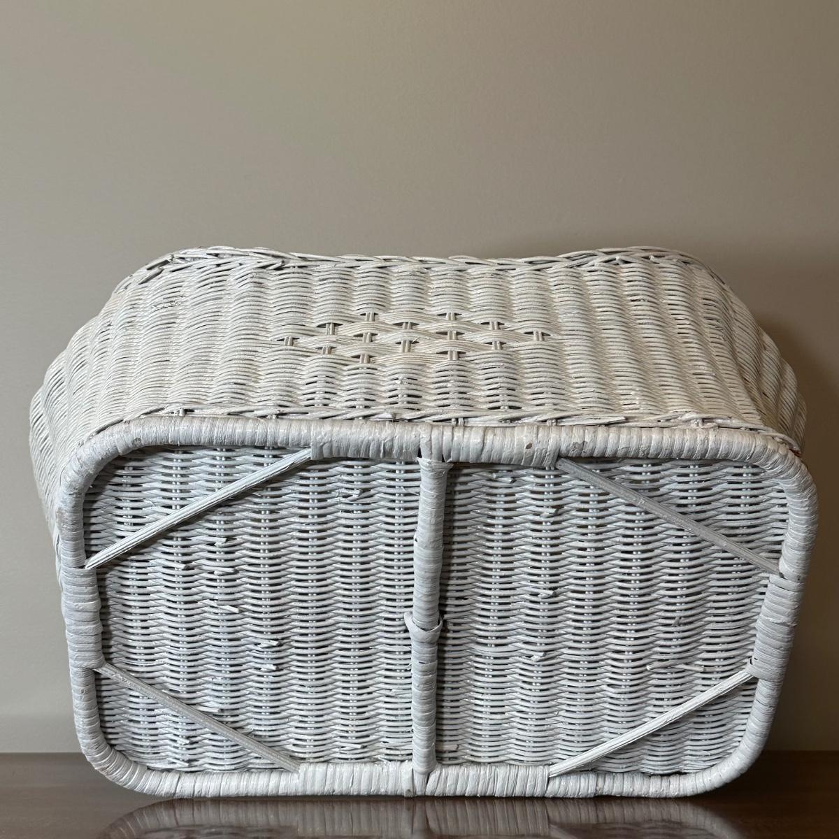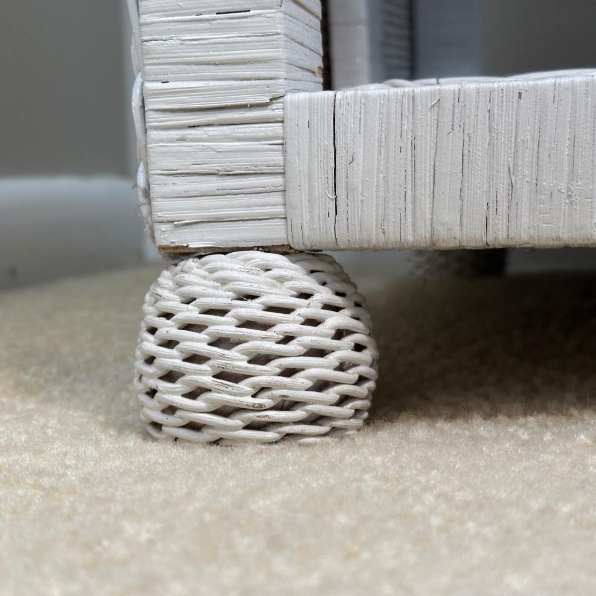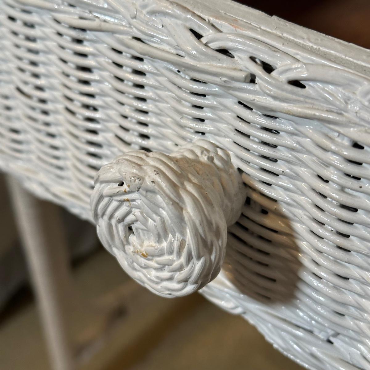 LOT 46B: White Wicker Vanity, Bench, Side Table & Basket Collection
