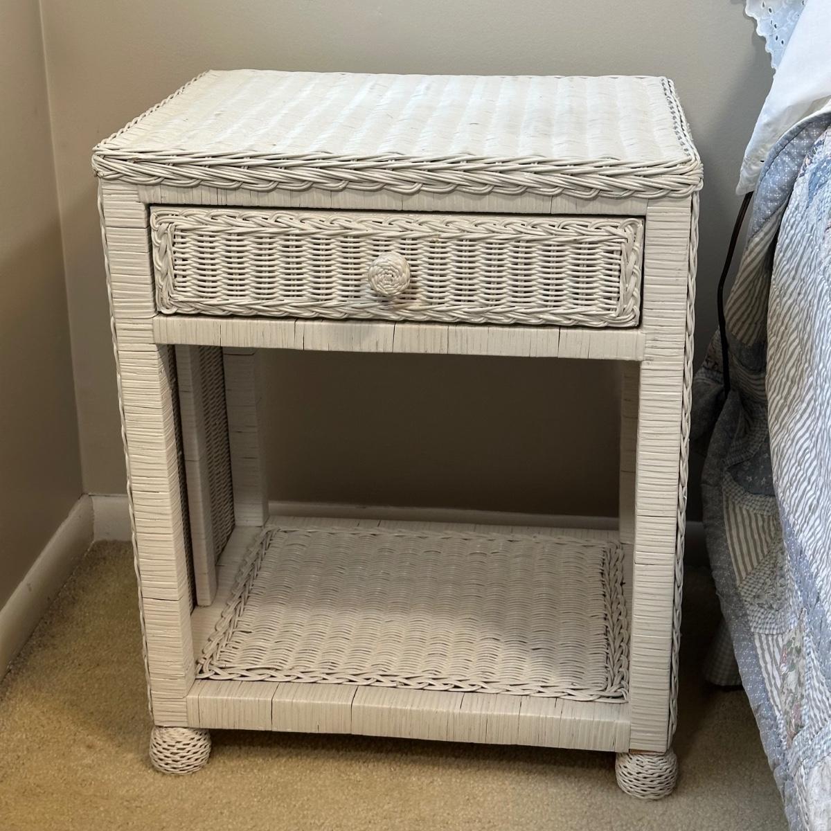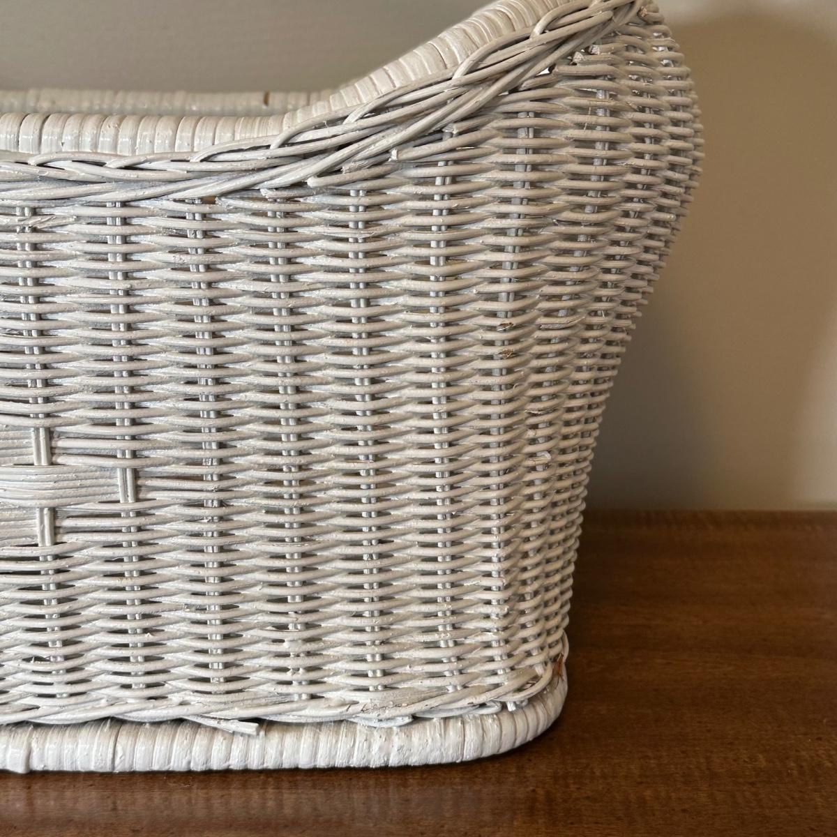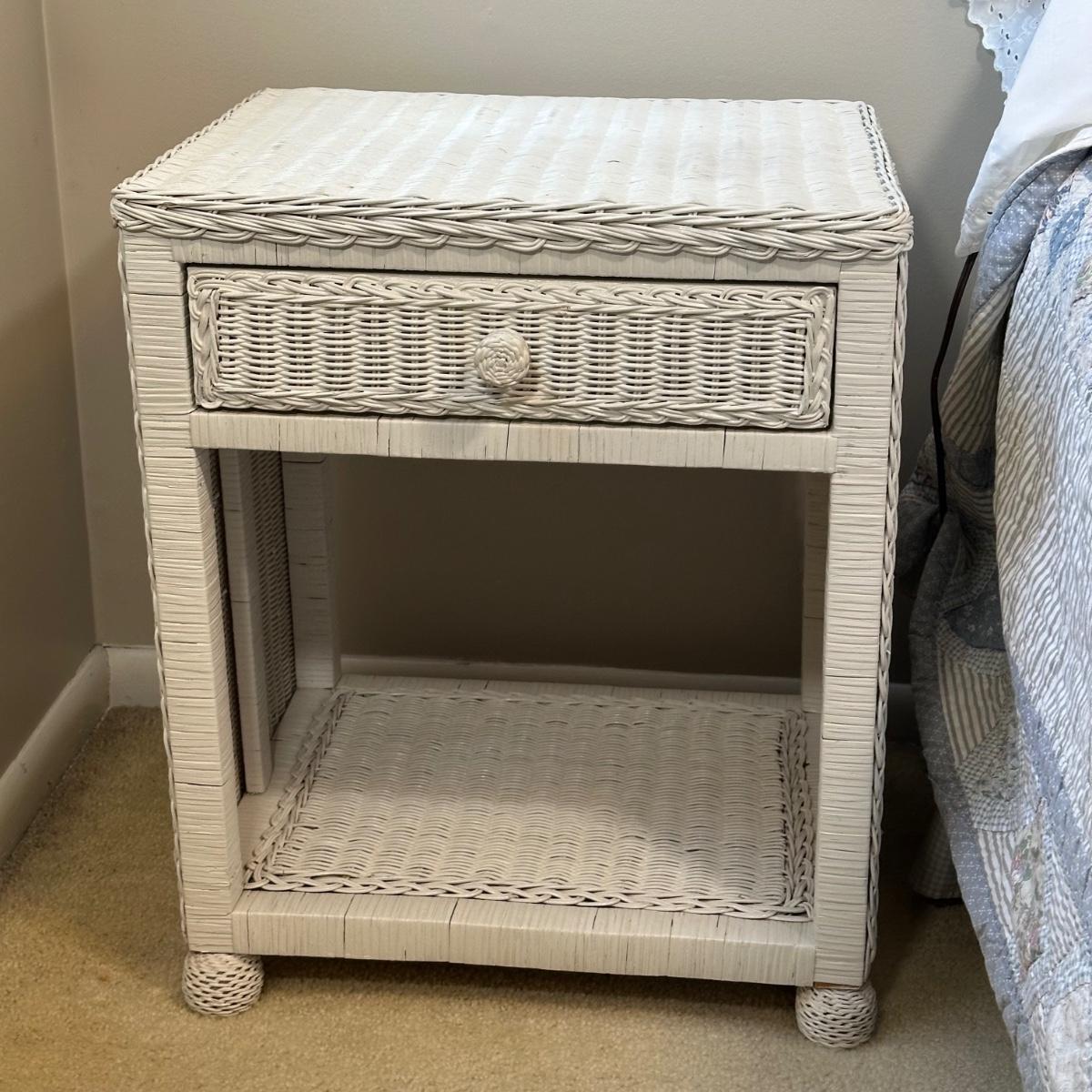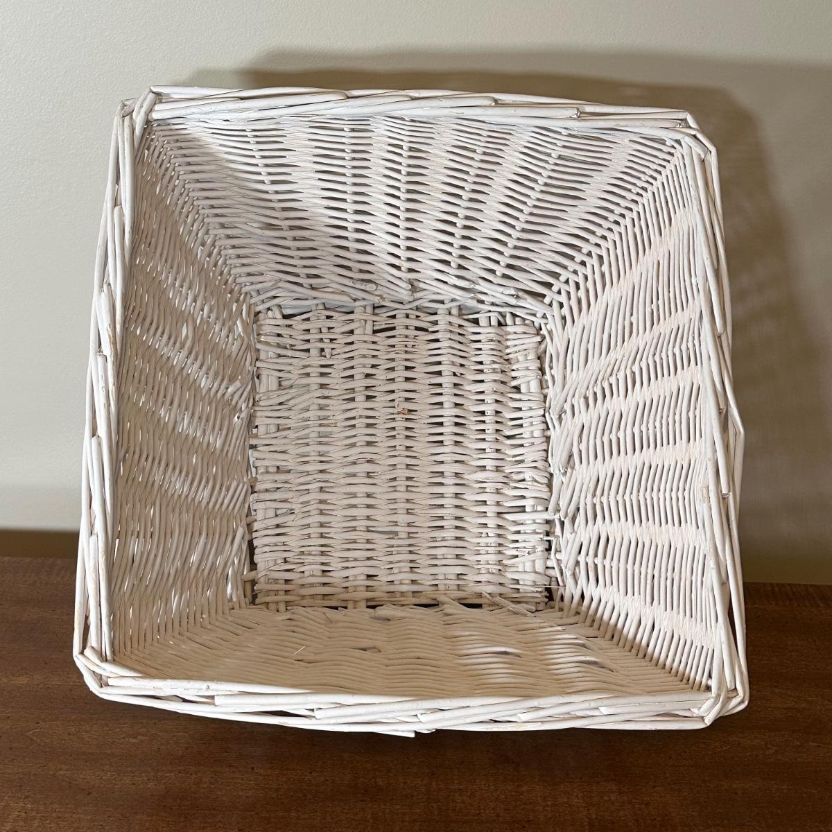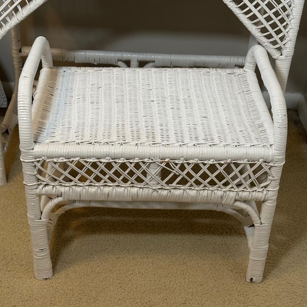 LOT 46B: White Wicker Vanity, Bench, Side Table & Basket Collection