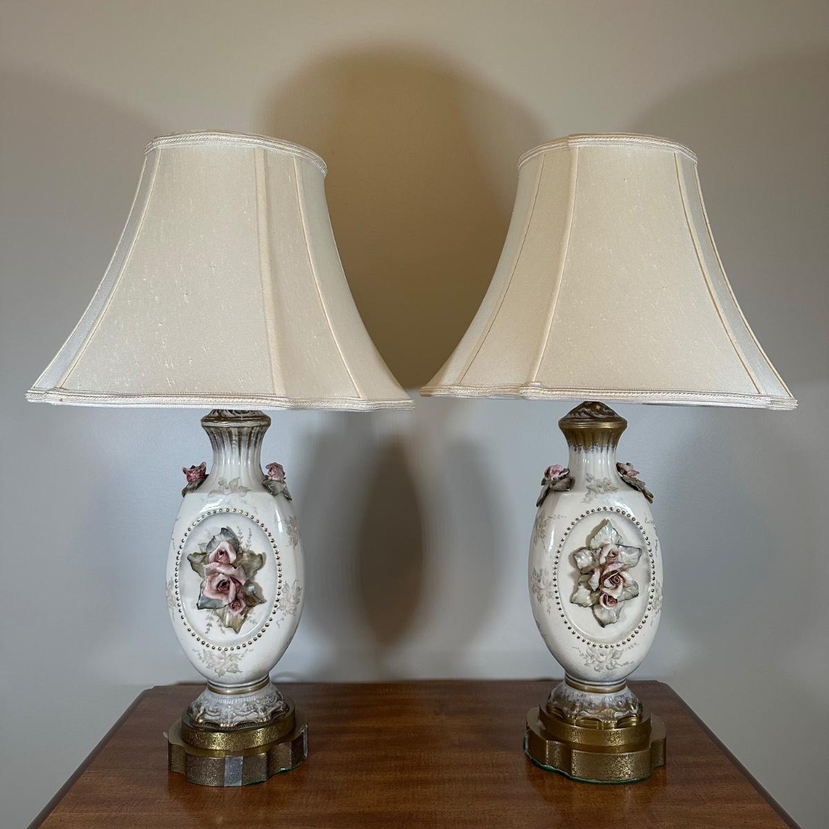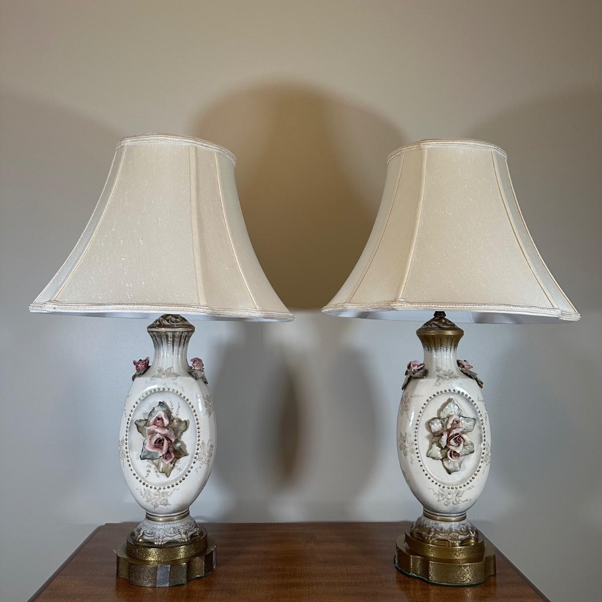 LOT 48B: Two Vintage Capodimonte Style Porcelain Table Lamps