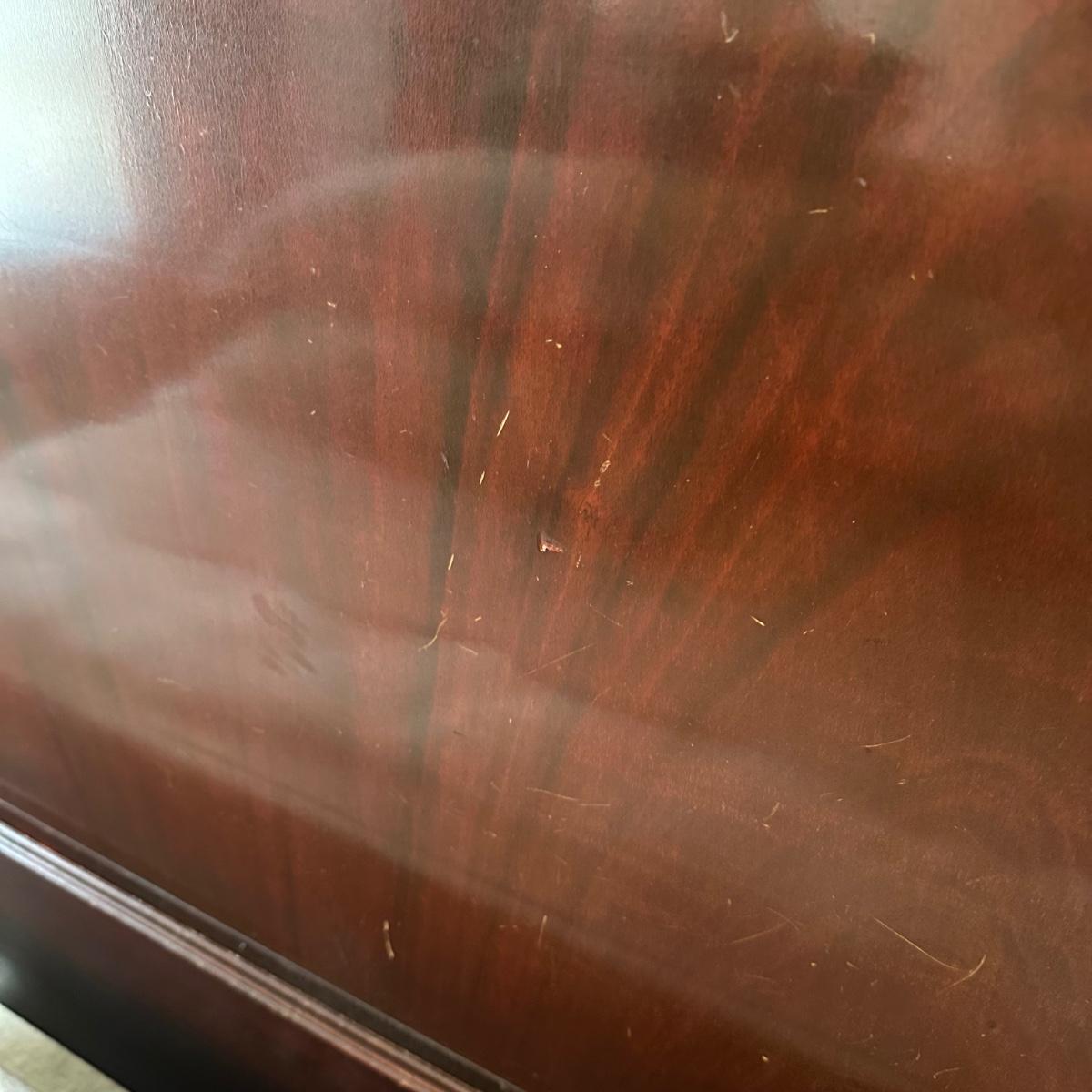 Headboard is 58x47” and bed frame is 77x52” - Please see all pictures as they are the best representation of the items. The pictures show condition, measurements if taken, and what is included in the lot. Due to the large amount that we photograph and the time frame, we are not always able to take measurements. All items unless noted, are pre-owned and have been used. If you purchased furniture, you must bring help. We do not allow one person to carry large furniture out on their own. Bring help, tools and a truck for the safety of our client’s homes, and your personal safety. Any damages that result to the property including walls, and floors due to moving of the furniture will be charged to the buyer. Company policy. Thank you.