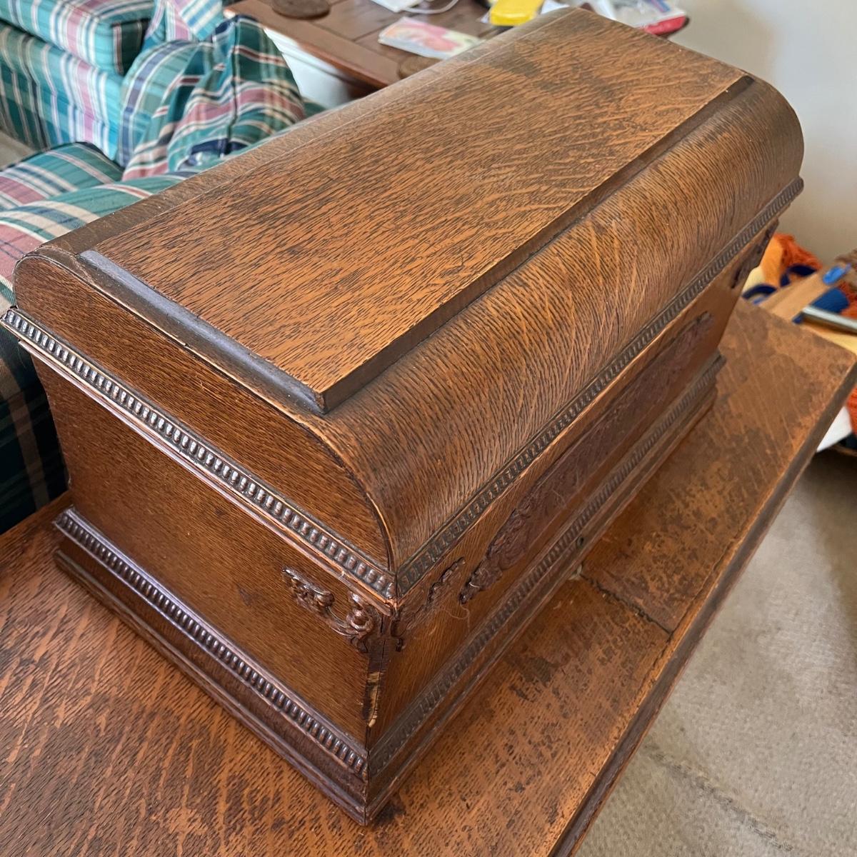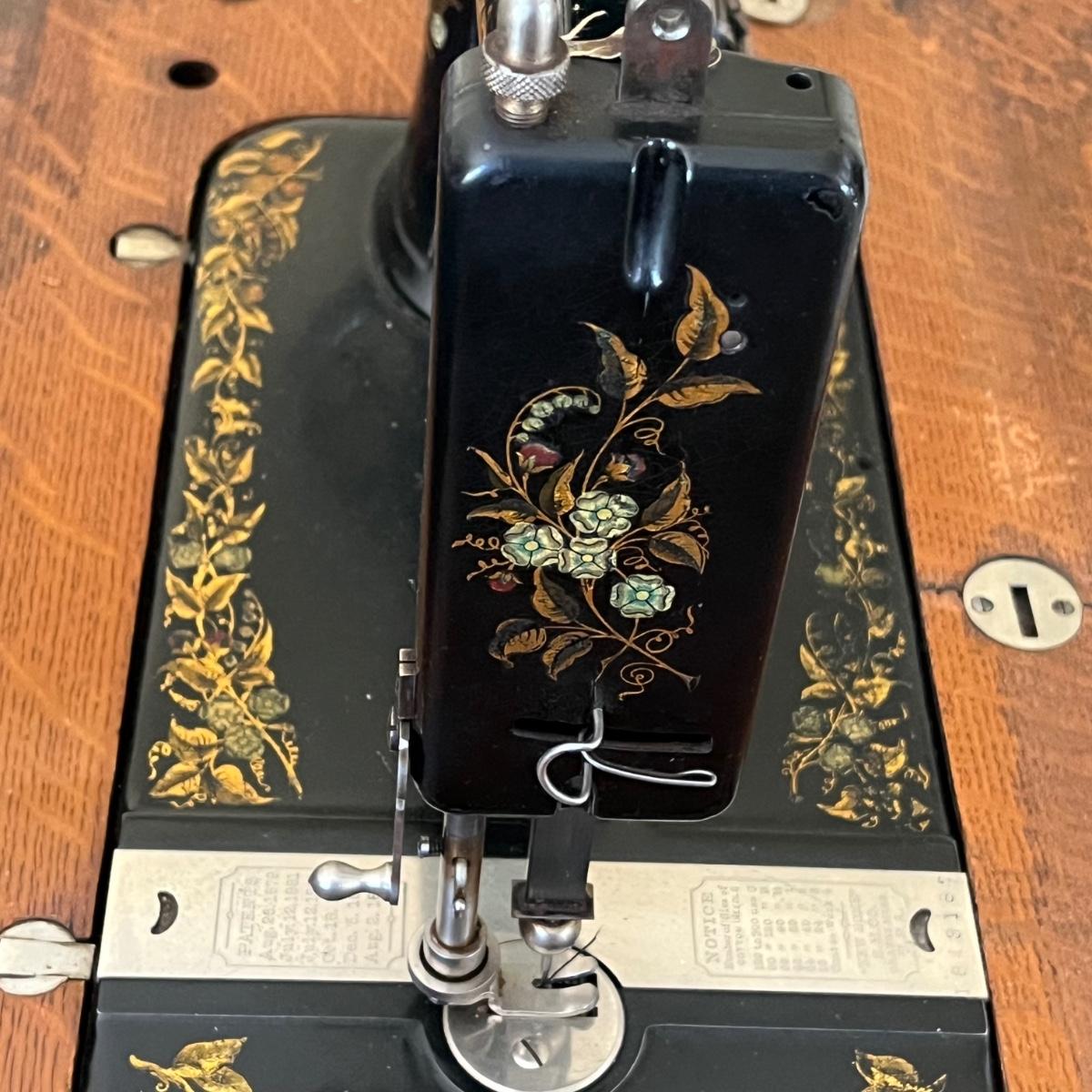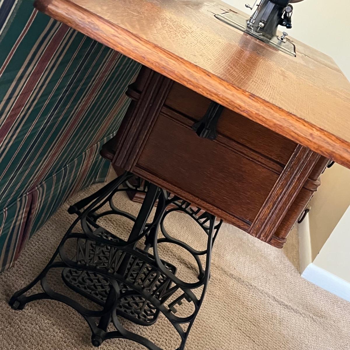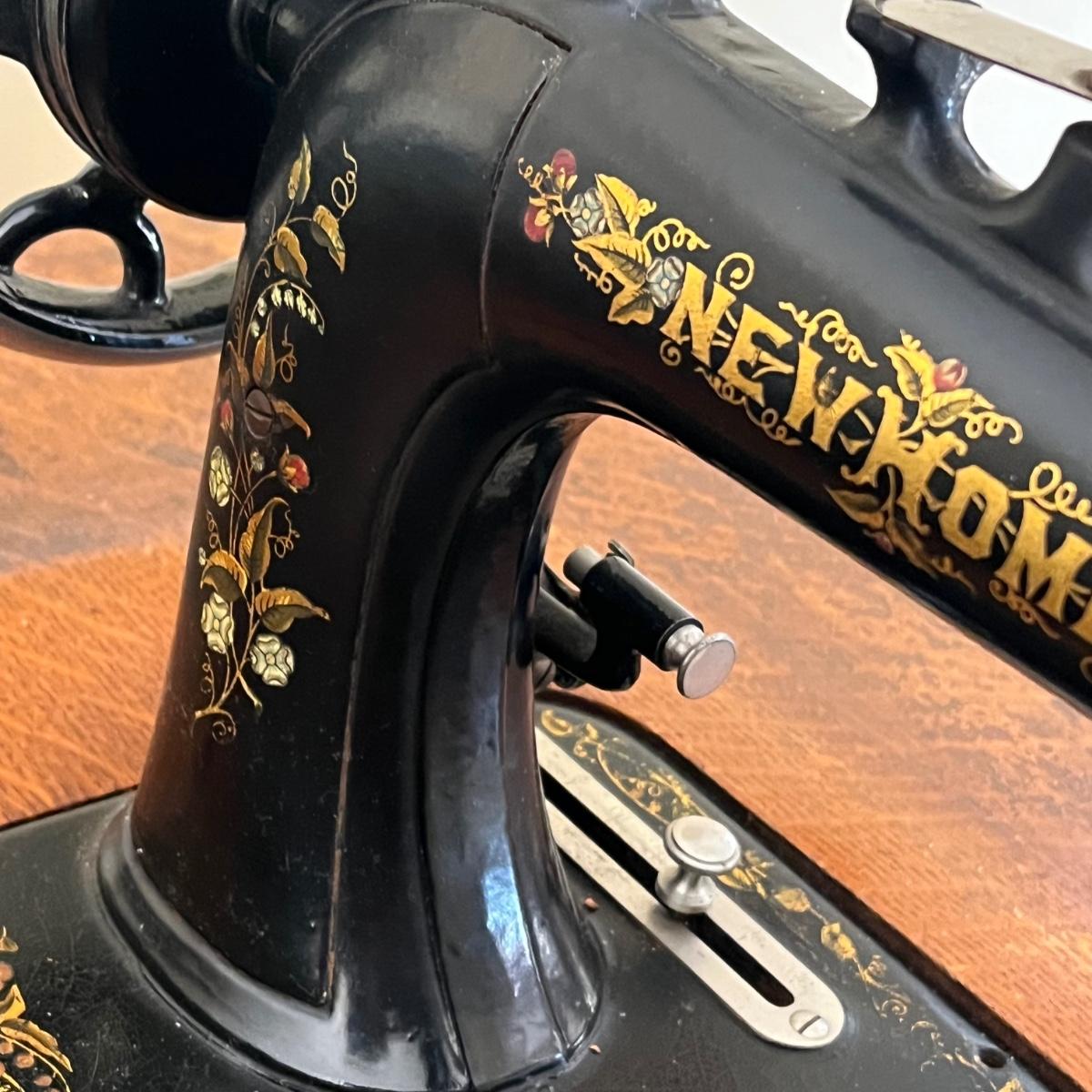 LOT 72F: Antique New Home Sewing Machine w/ Table and Cover