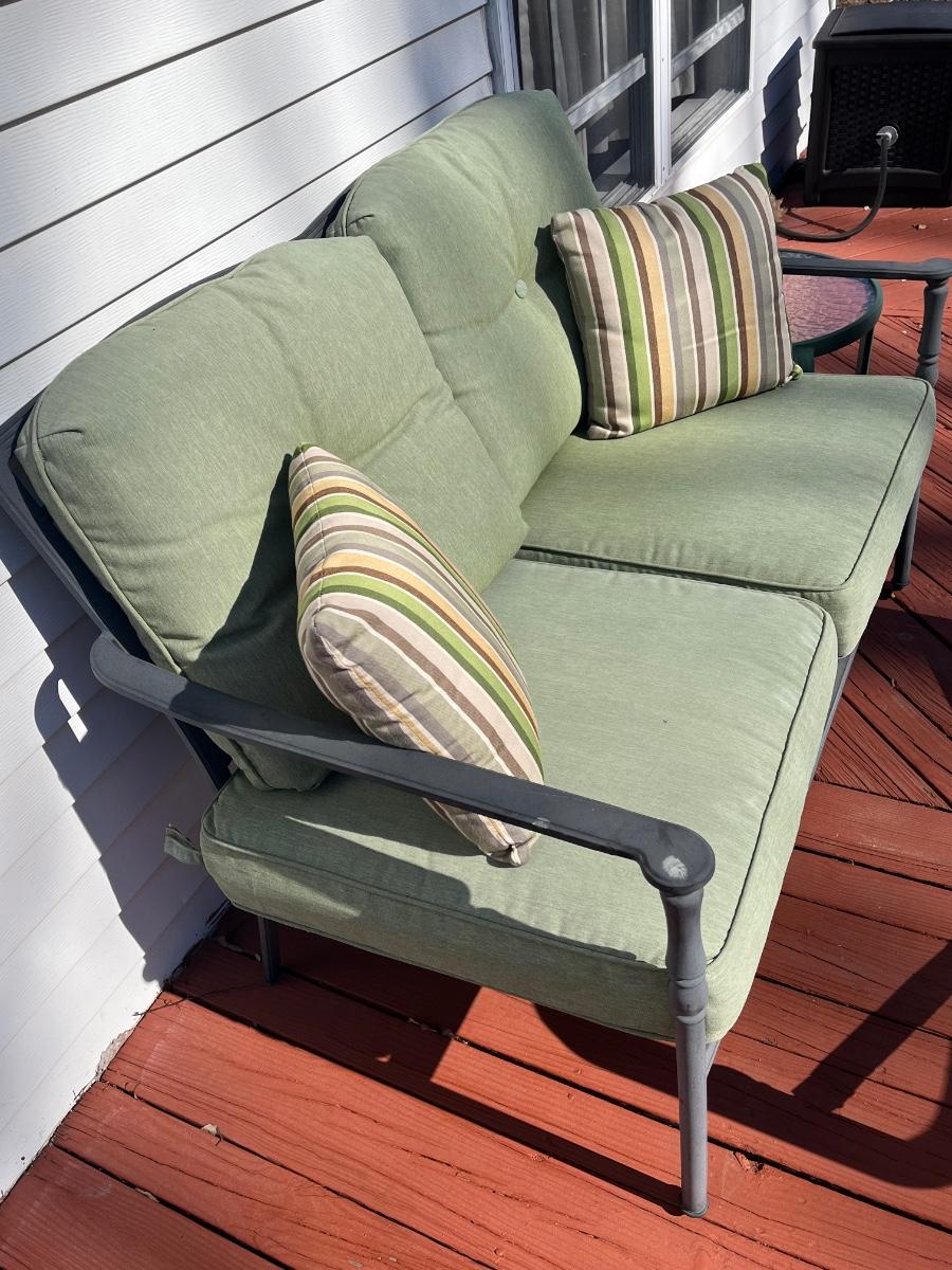 LOT 74P: Patio Furniture - Loveseat, Chairs w/ Cushions, Coffee Table, Accent Tables
