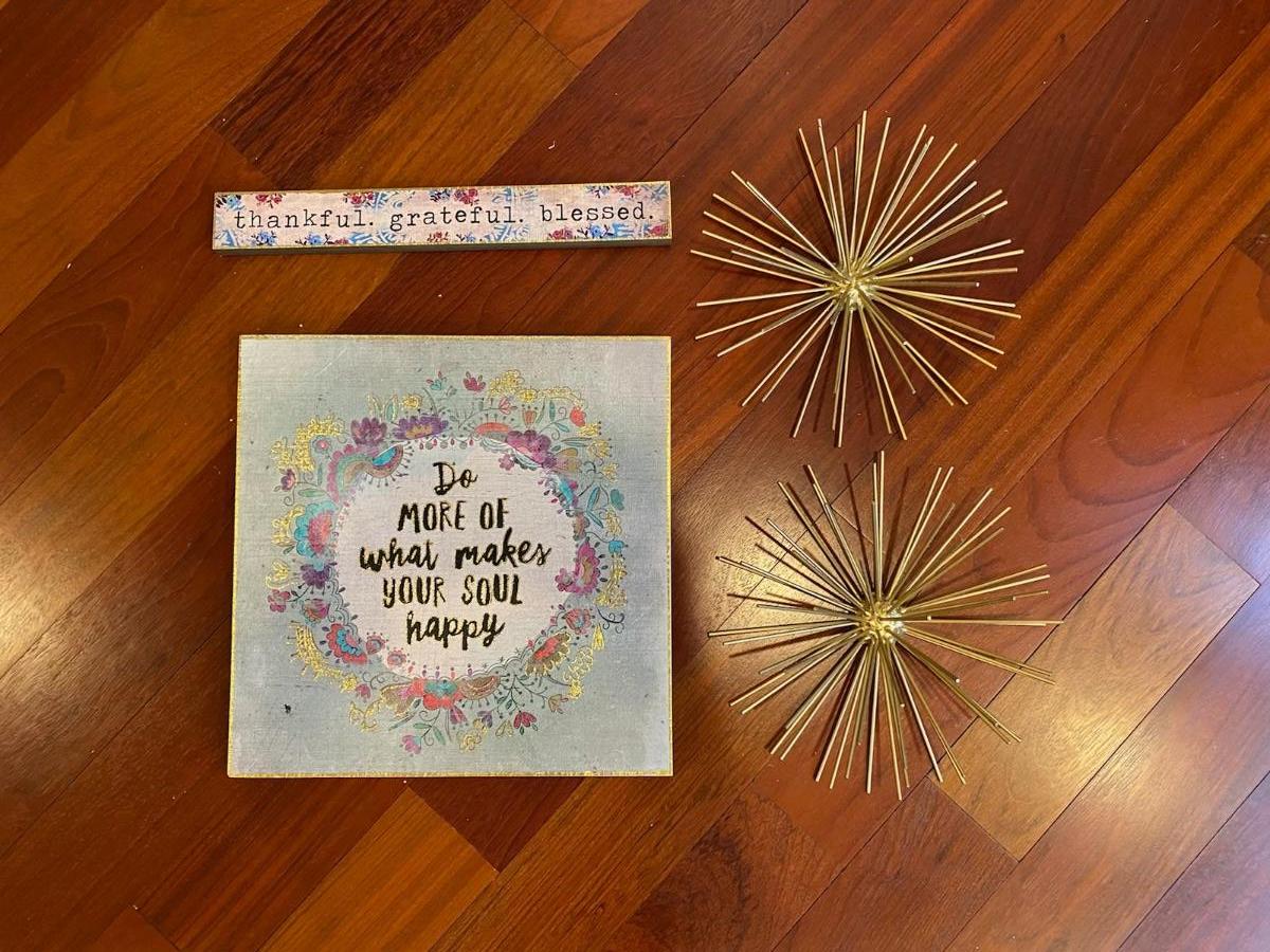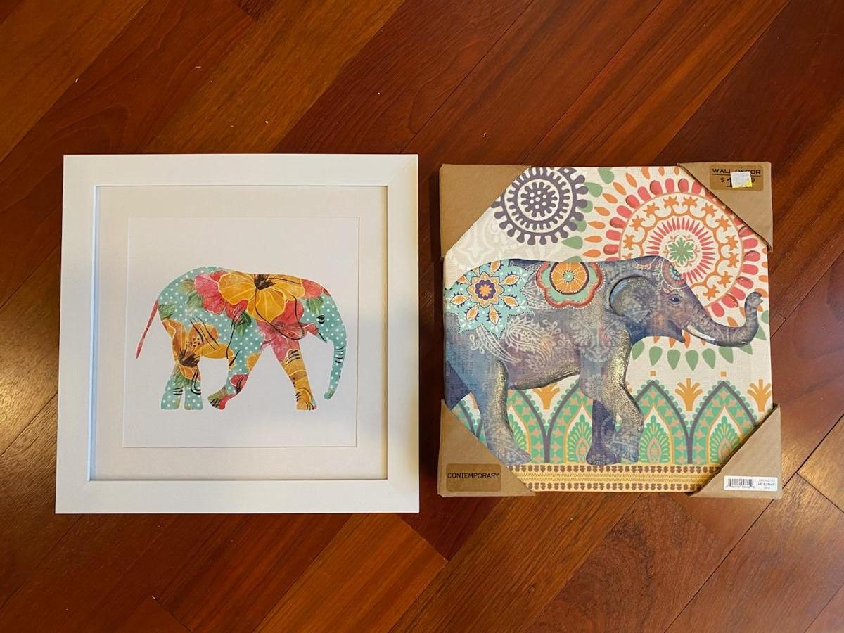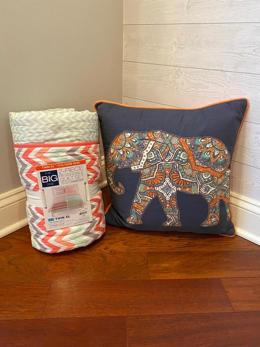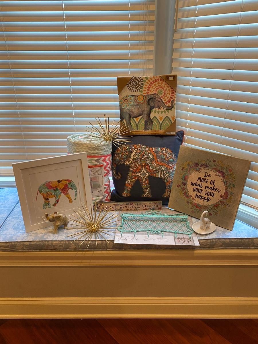 Twin bedspread new in original packaging, elephant wall art, jewelry hanger, gold wall decor, elephant ring holder and elephant framed print.