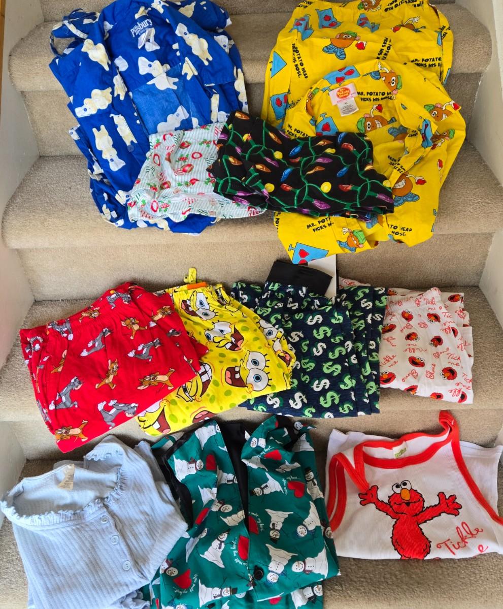 LOT 5B: Fun PJs, Some New with Tags: Elmo, SpongeBob, Pillsbury Dough Boy & More