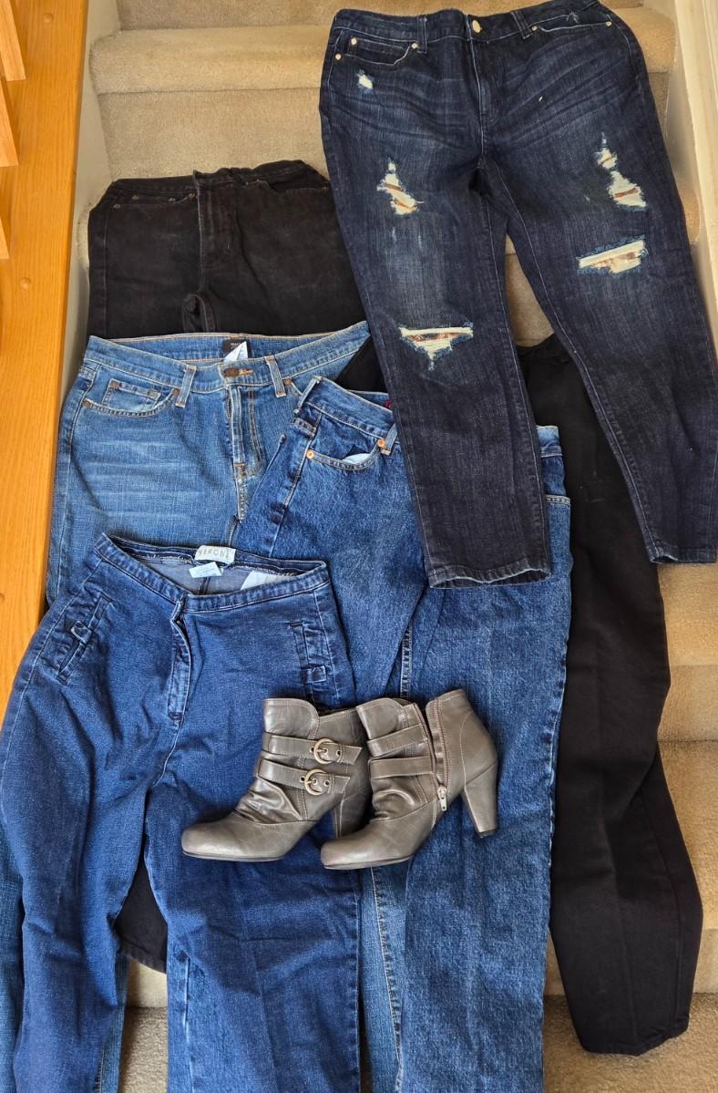 LOT 8B: Assorted Ladies' Jeans Including Jennifer Lopez, & Pair of Boots