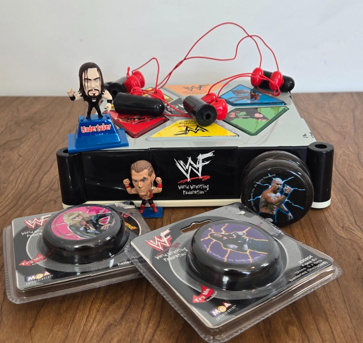 LOT 19B: Let's Get Ready to Rumble.... WWF On the Ropes Electronic Talking Game, Yo-Yos, & 2 Small Figures