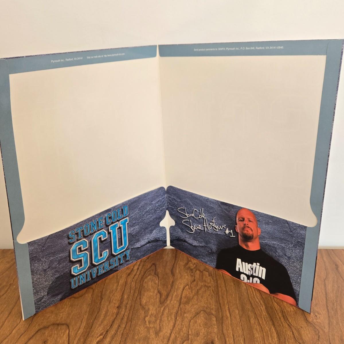 LOT 20B: WWF Folders, Lanyard, Figures, Poster, Flame Belt, & WCW Magazine