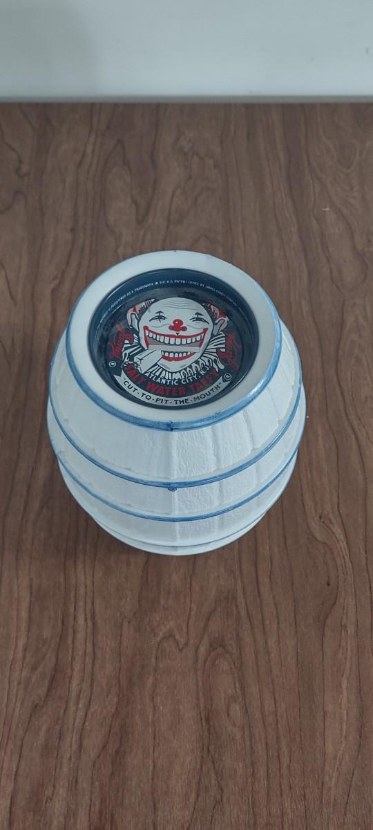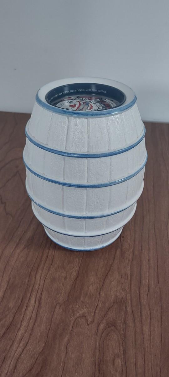 Vintage James Candy Co. Paper Mache Candy Barrel Coin Bank