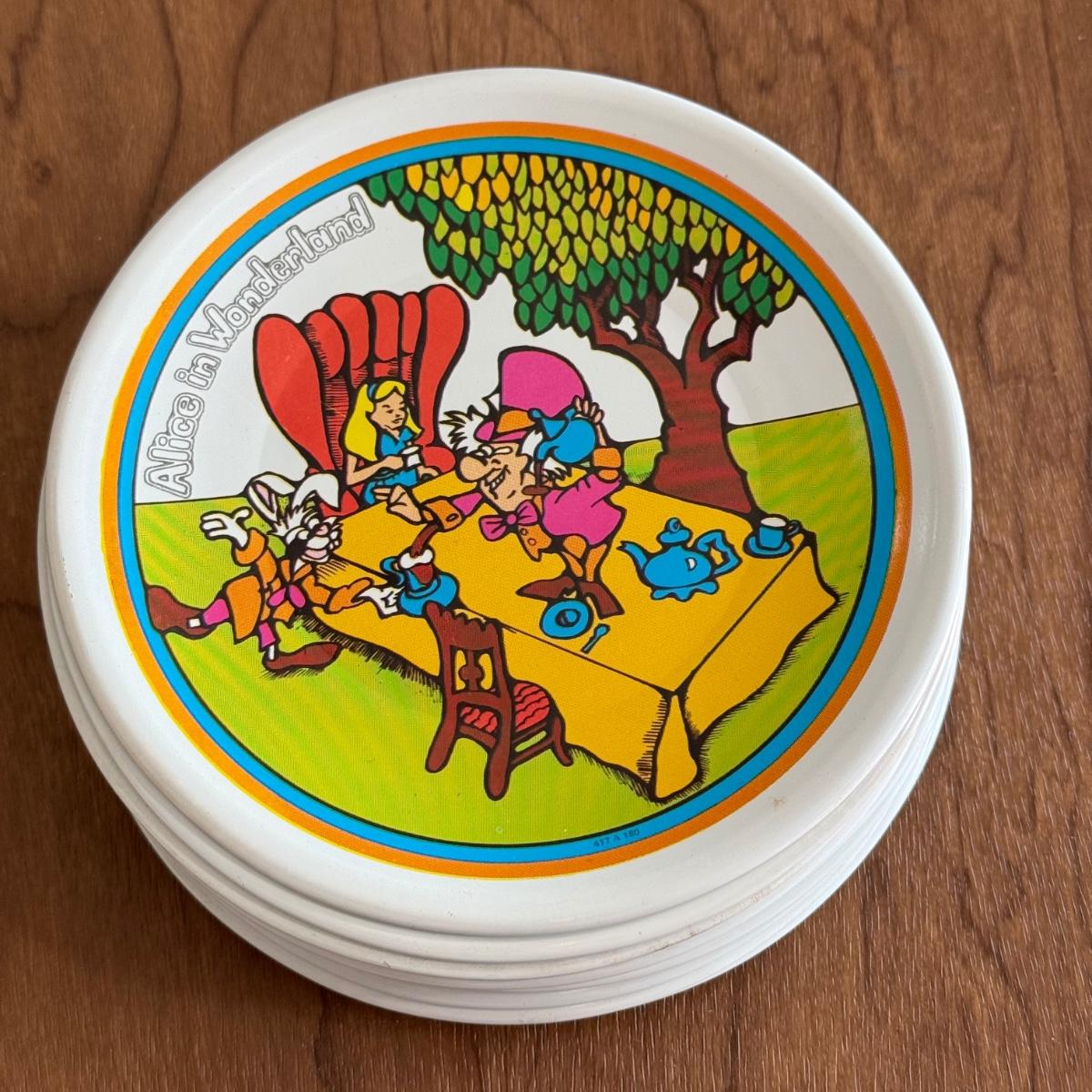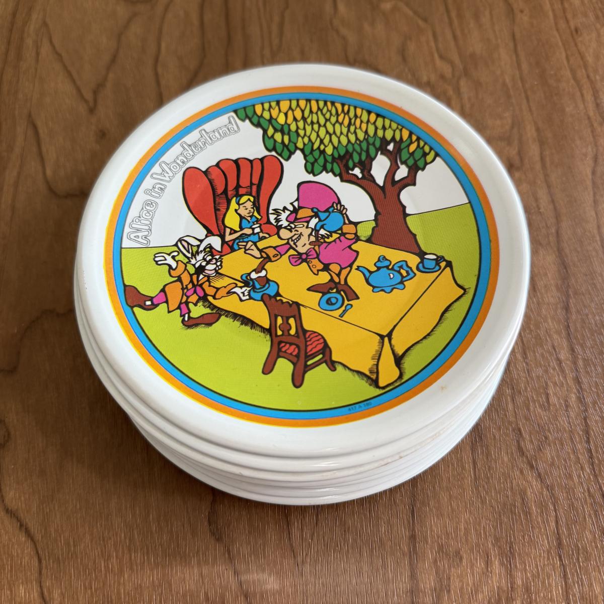 LOT 32B: Vintage Childs Litho Tin Alice in Wonderland Saucers