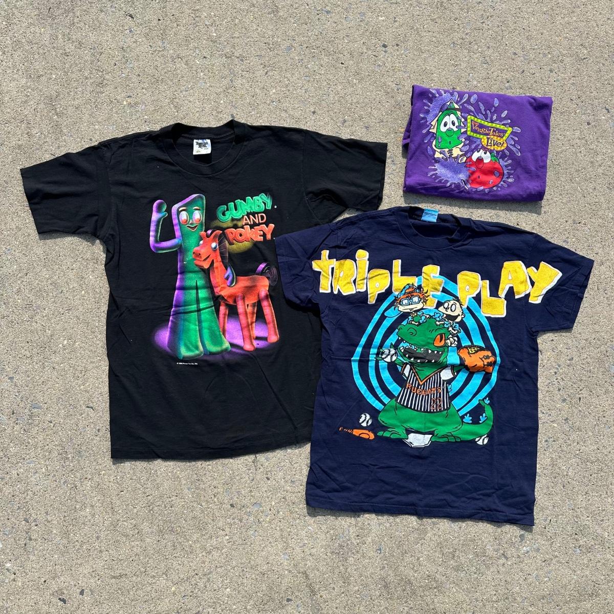 LOT 41B: Vintage Cartoon Character T Shirts - Rugrats, Gumby & Veggie Tales