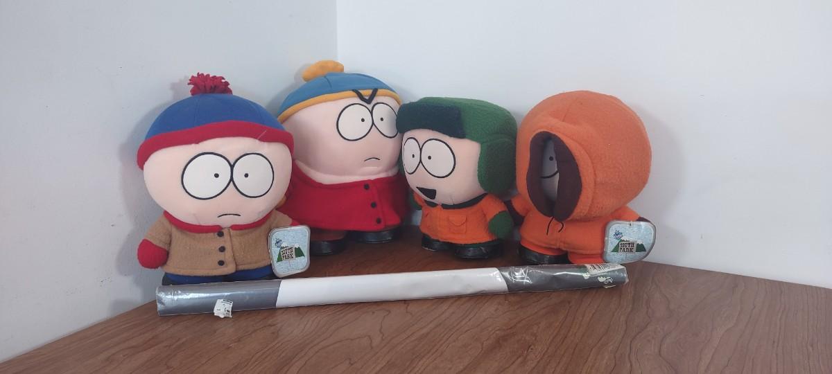 LOT 83B: South Park Character Plush Dolls and Kenny on Toilet NIP Poster