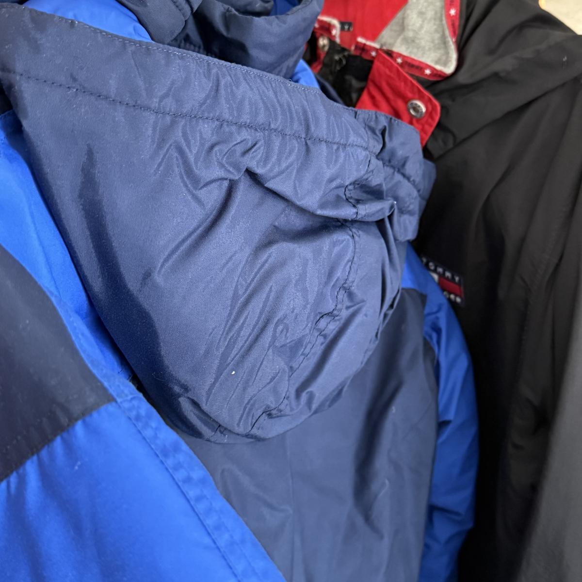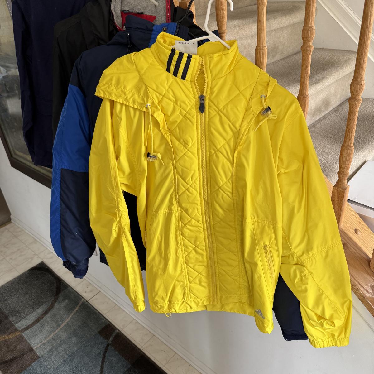 LOT 132L: Collection of Jackets: Pride Products Money Print, NWT Fleet Street (Small), Yellow Adidas (M), Columbia (18/20), Tommy Hilfiger (XL) & Guess Jeans (M)